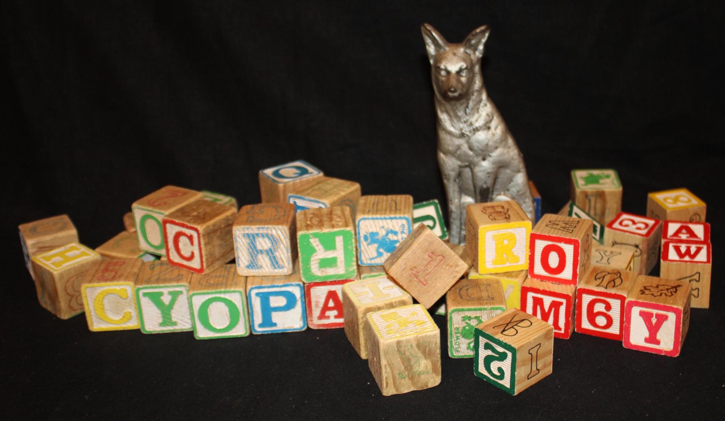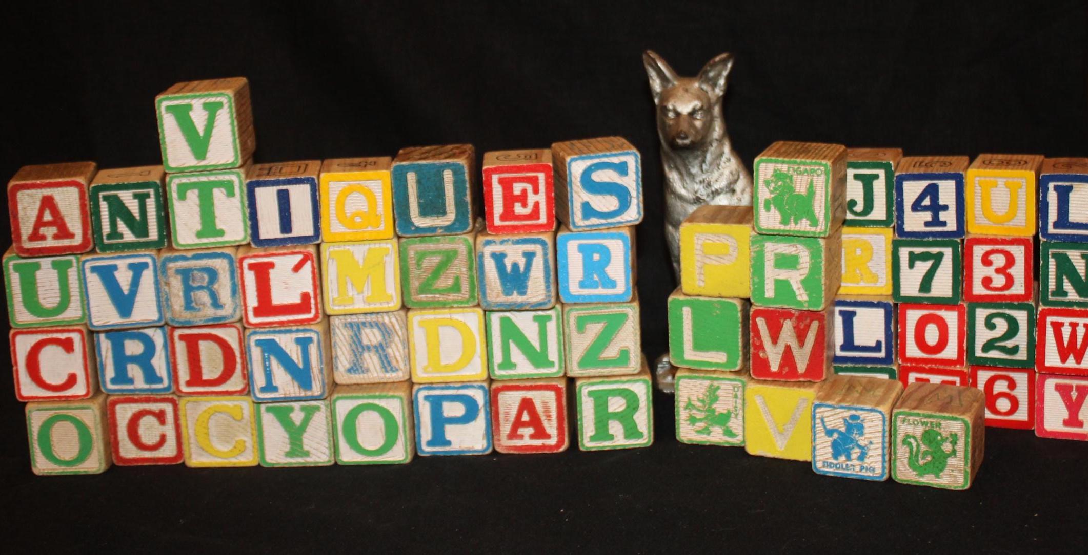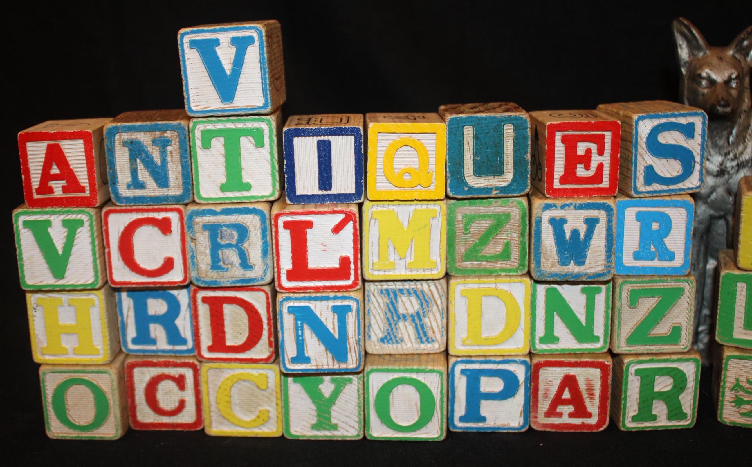 Vintage Wooden Alphabet Blocks, Primary Colors, Farmhouse Decor