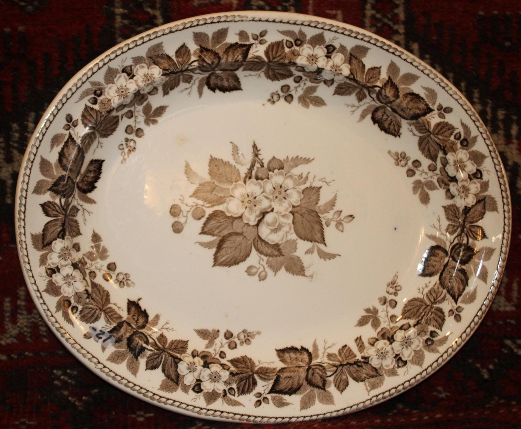 Gorgeous 19th Century Wedgwood Apple Blossom BrownTransferware Platter- Ironstone/Country Decor