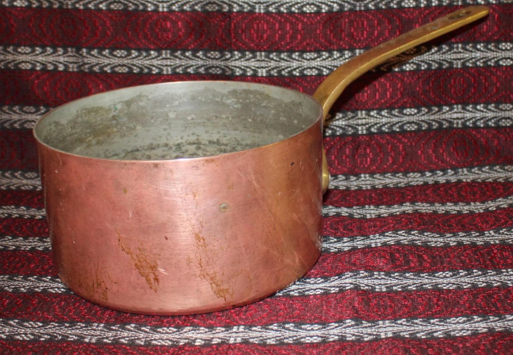 Gorgeous HEAVY Copper Sauce Pan with Bronze Handle- Signed LaMalle N.Y. City made in France- French Country/Farmhouse/Kitchen
