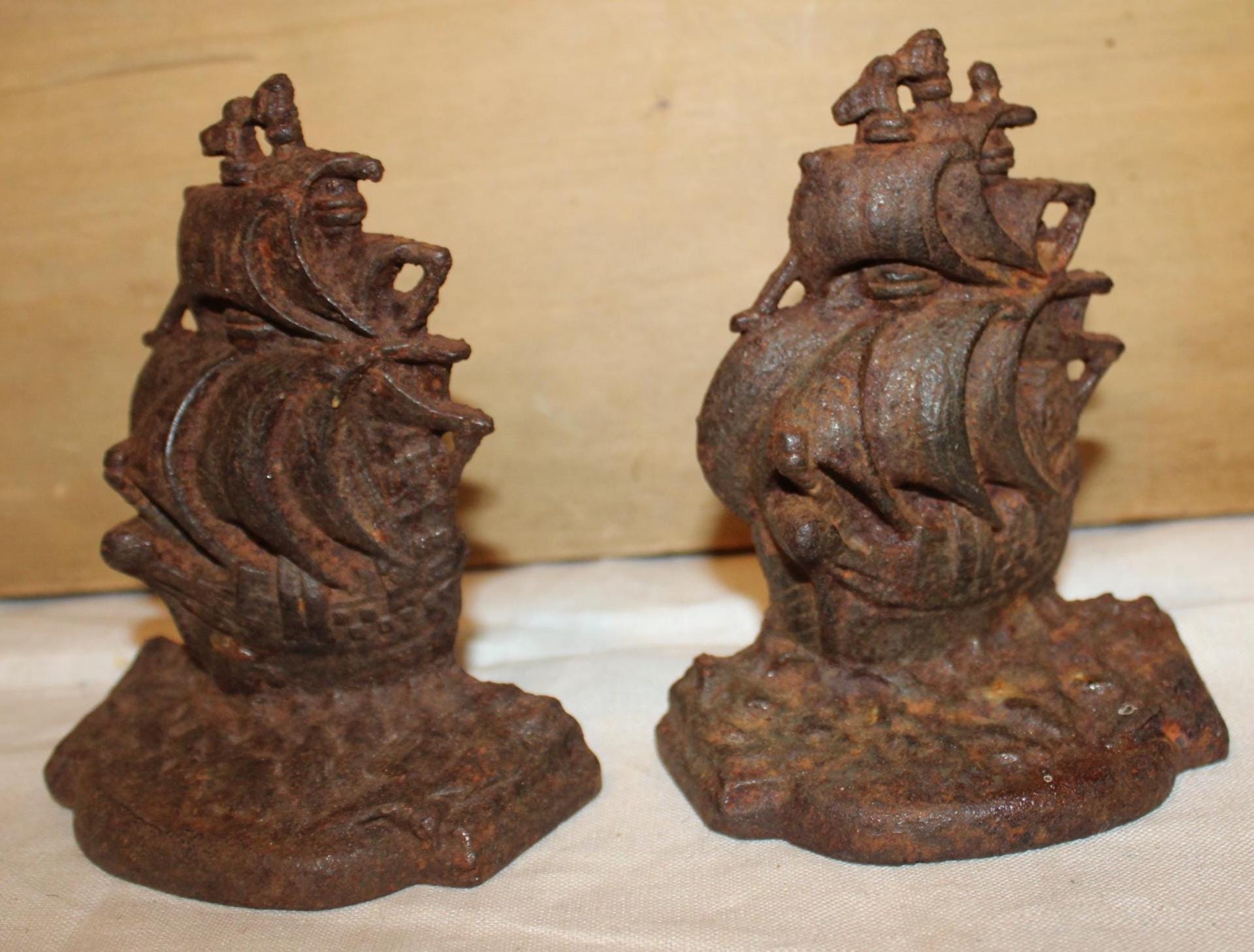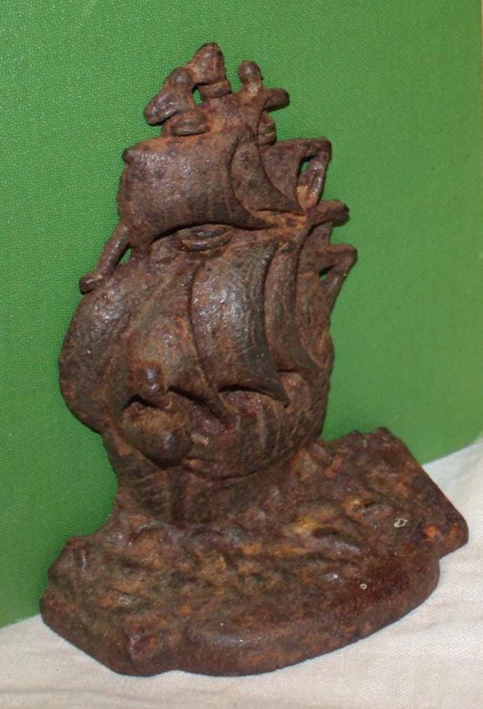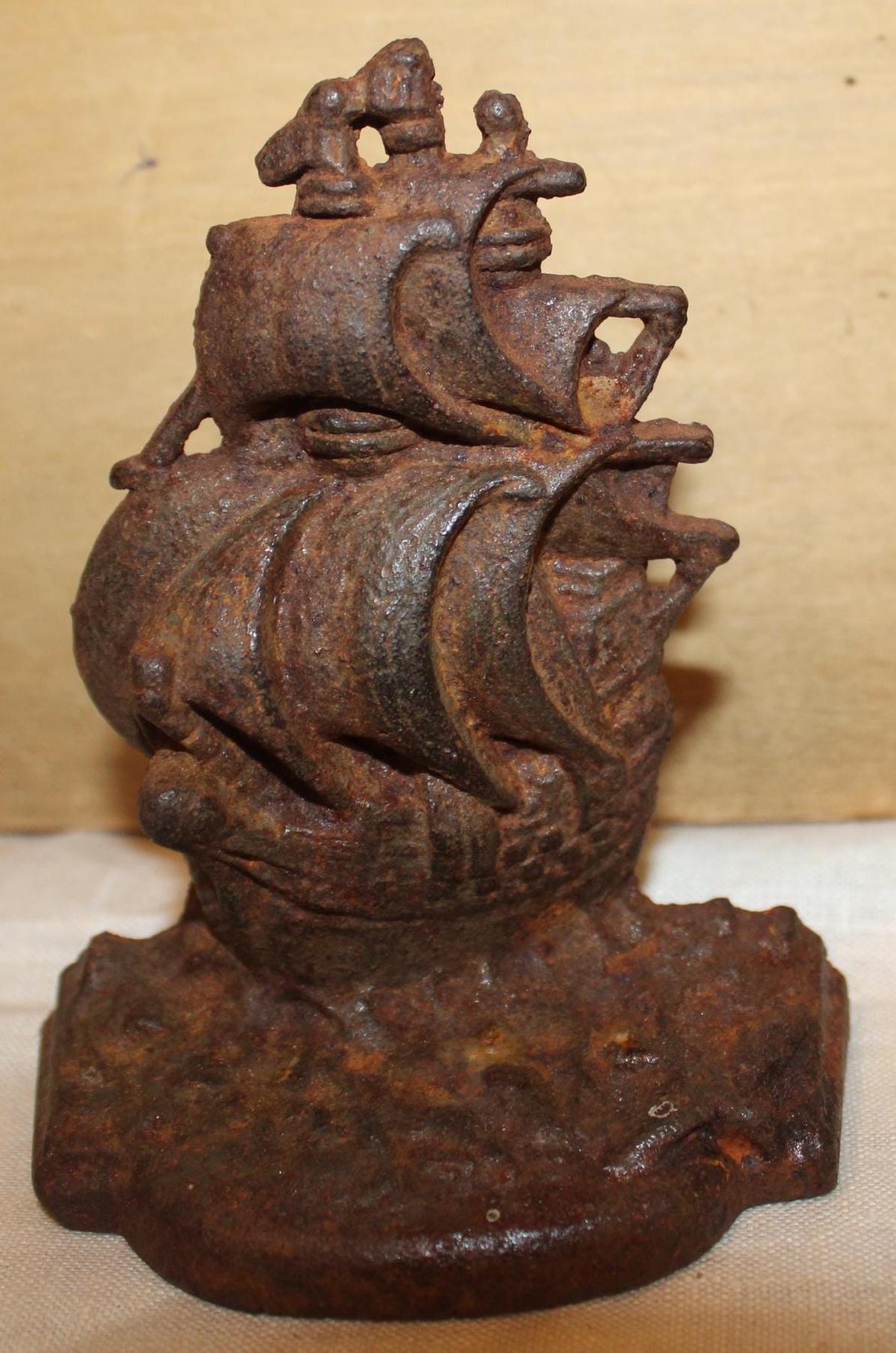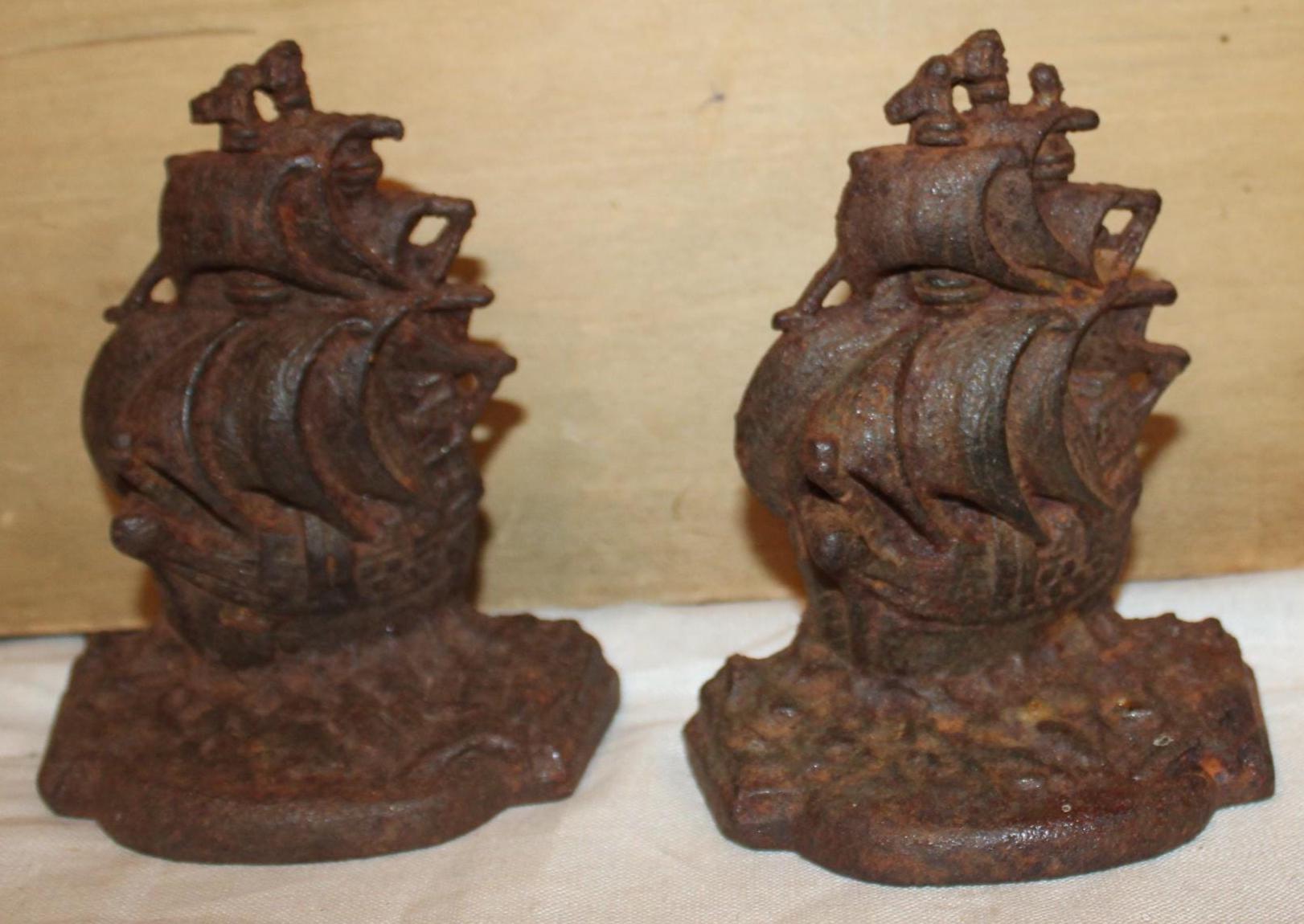 Antique Cast Iron Ship Bookends – Nautical Library Decor, Pair