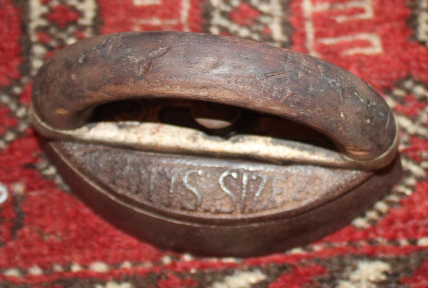 This Size 3 Mrs. Potts Cold Handle Sad Iron has so many uses! You can use it as a press to iron your clothes......or it will make a fabulous doorstop....or it can be used in cooking as a panini (glorified grilled cheese) press (or bacon)!! It weighs 5.5lbs and measures 6" long x 3.5" wide x 5.25" tall. It has a wonderful aged patina- the wooden handle detaches from the base. Please message us if you have any questions- Thanks for looking!