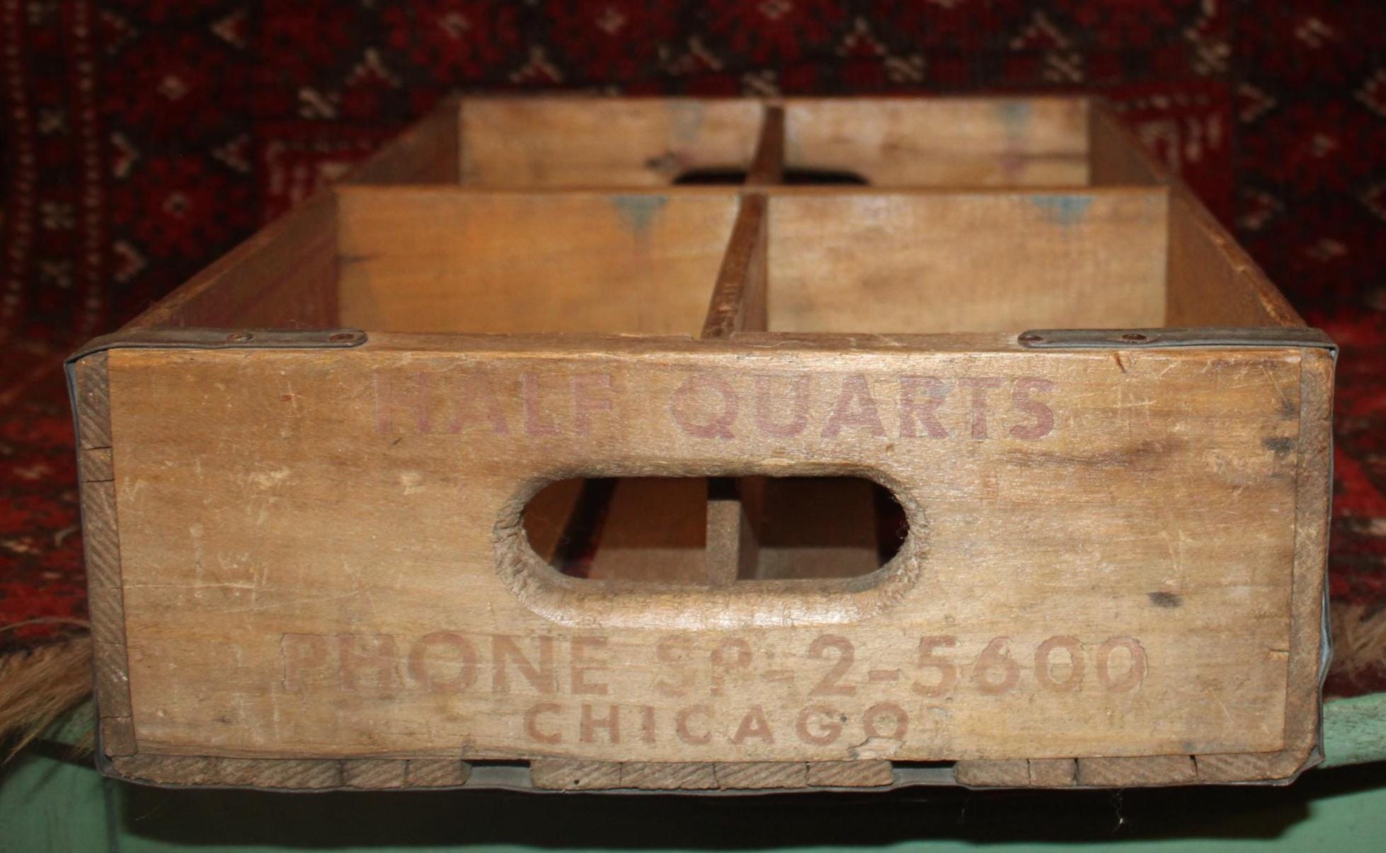 This Vintage Northwestern Beverage Chicago IL Beer Advertising Crate would add a pop of color to your decor! It is approximately 18.5" x 12" x 4.75" and would look wonderful stacked with other wooden crates- perfect for storing anything (great to use as a serving tray- see our last photo). It has 4 sections (8"x 5.5" squares) and is reinforced with the original metal. This crate is in good antique condition- it has not been refinished (it has a crack in the wood on the base that is very solid- please see our photos).. Please message us if you have any questions- Thanks for looking!