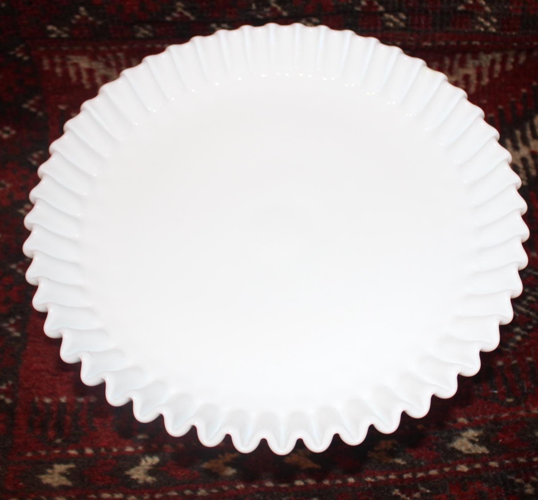 Gorgeous Mid Century Fenton 12" Ruffled Hobnail White Milk Glass Pedestal Cake/Fruit Platter- Farmhouse/Wedding/Cookies/Catering
