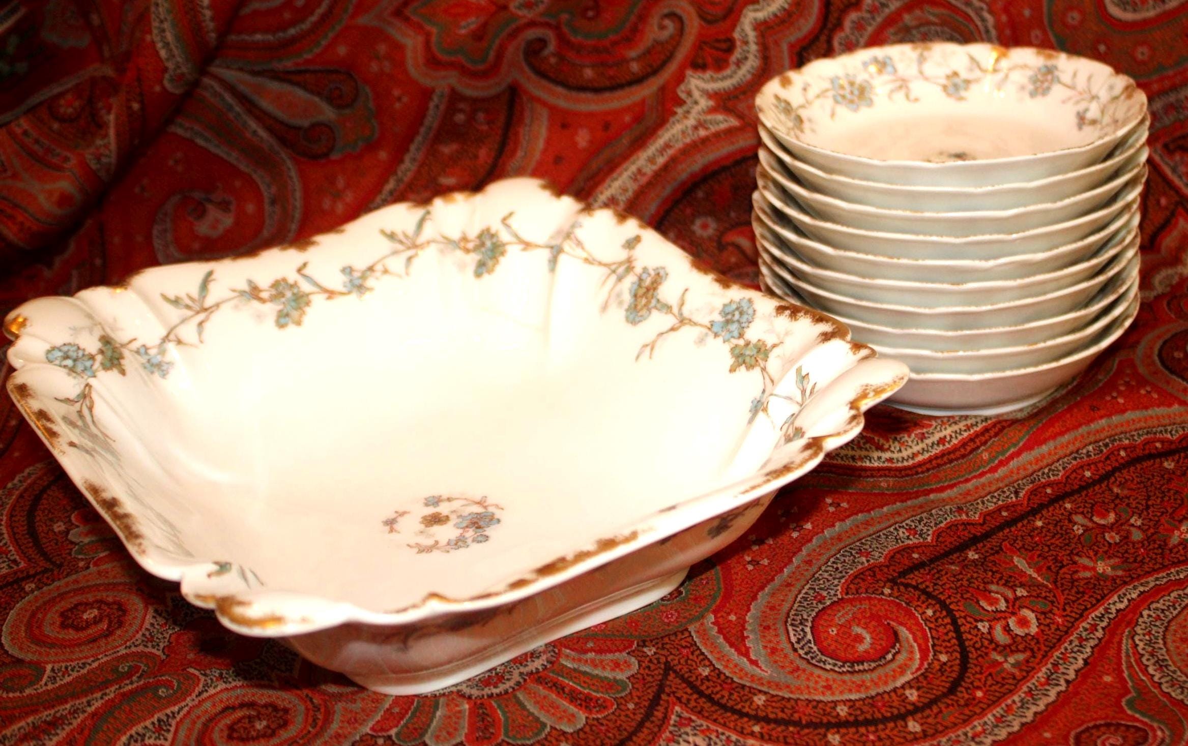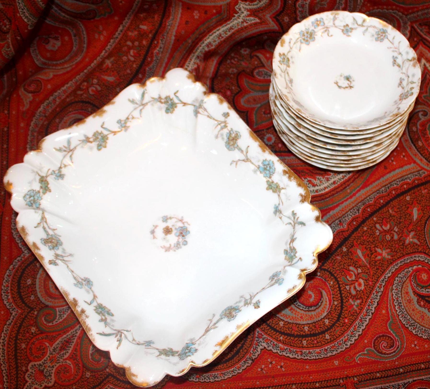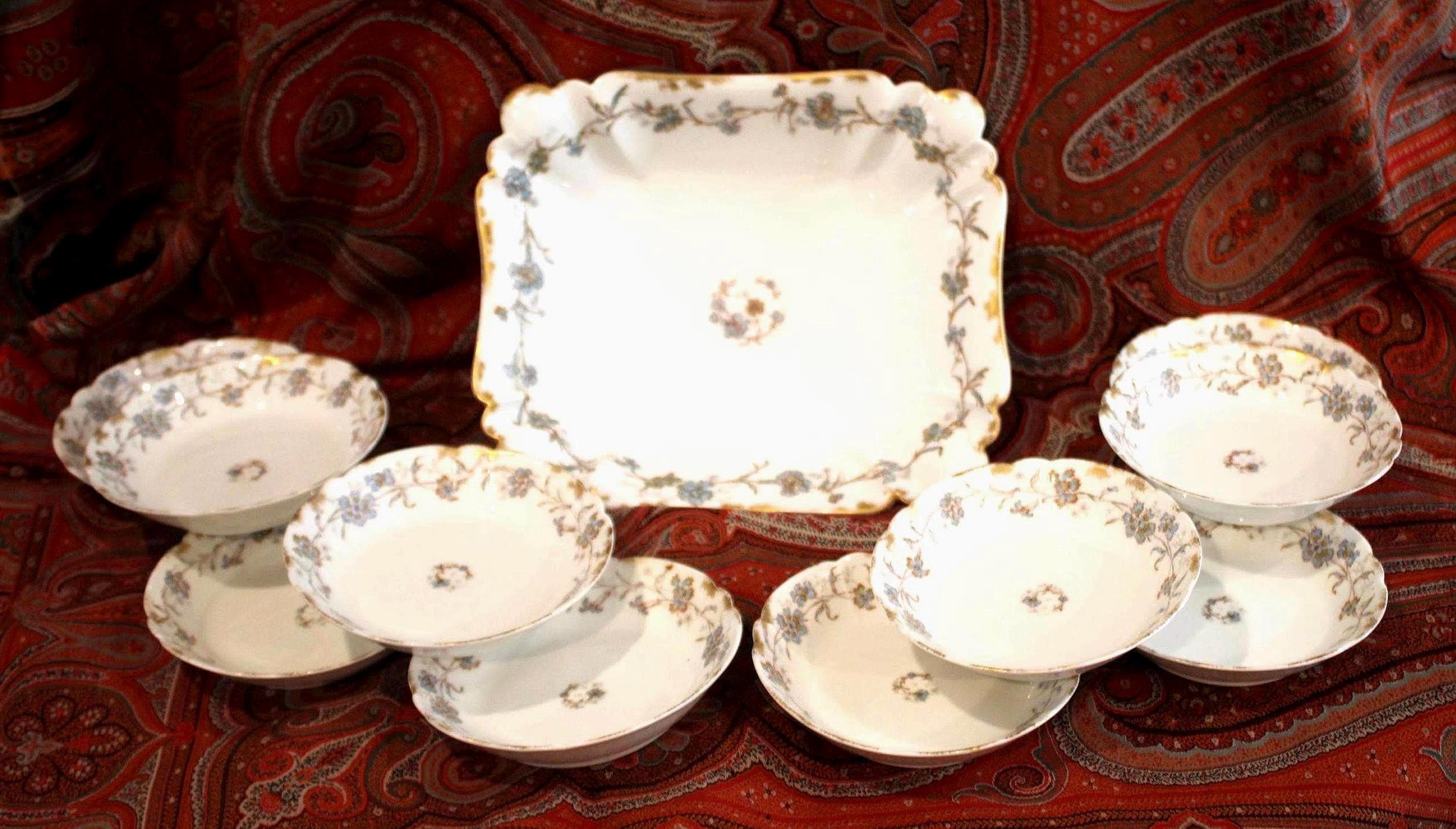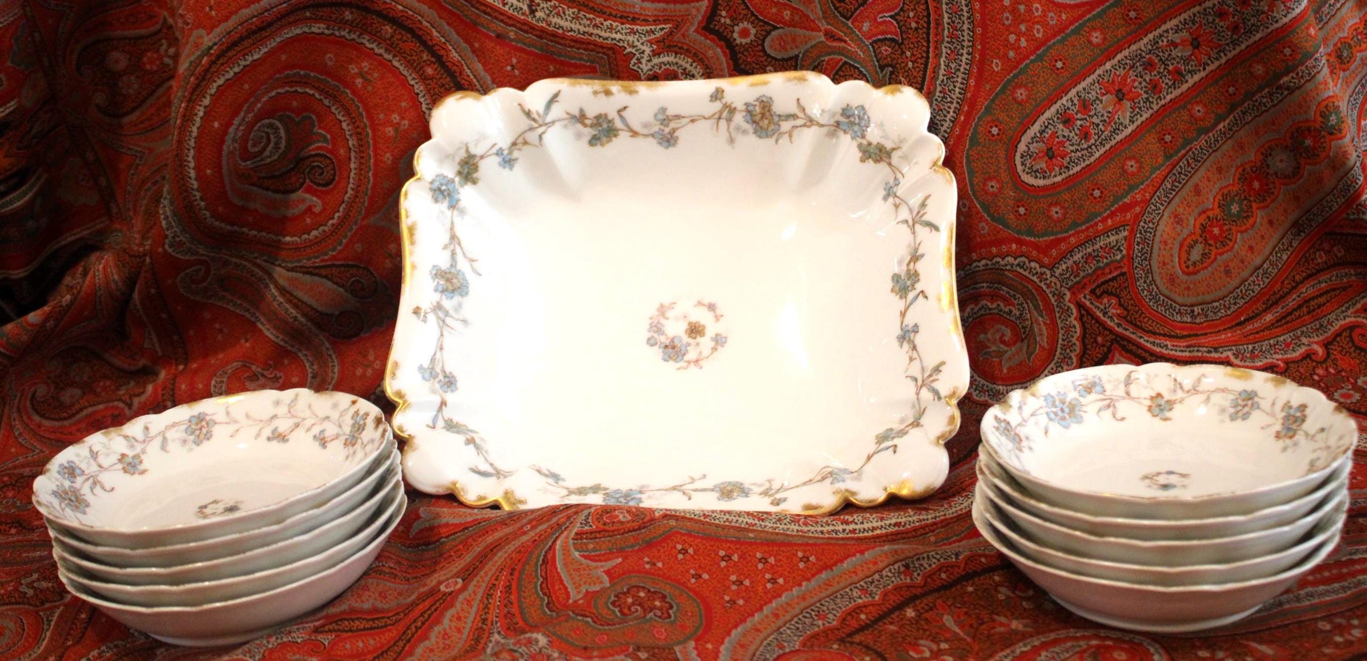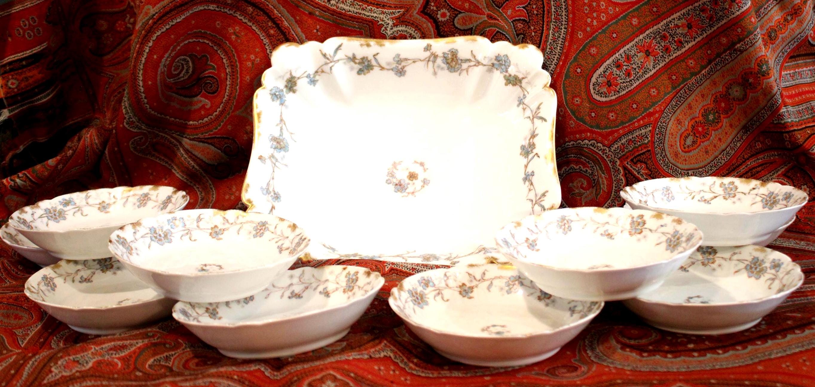 Beautiful Limoges France A. Lanternier 11 Piece Berry/Salad Bowl Set- Fine China/Bone China/French Farmhouse