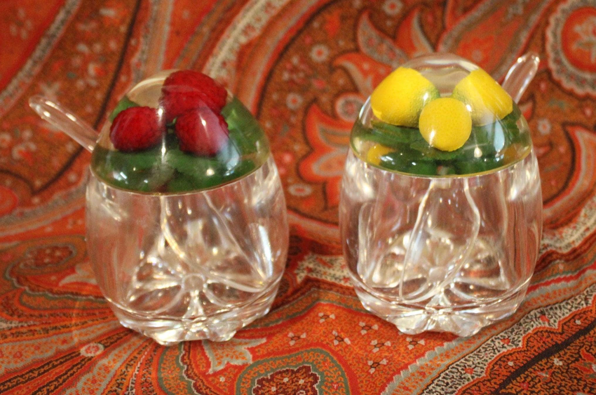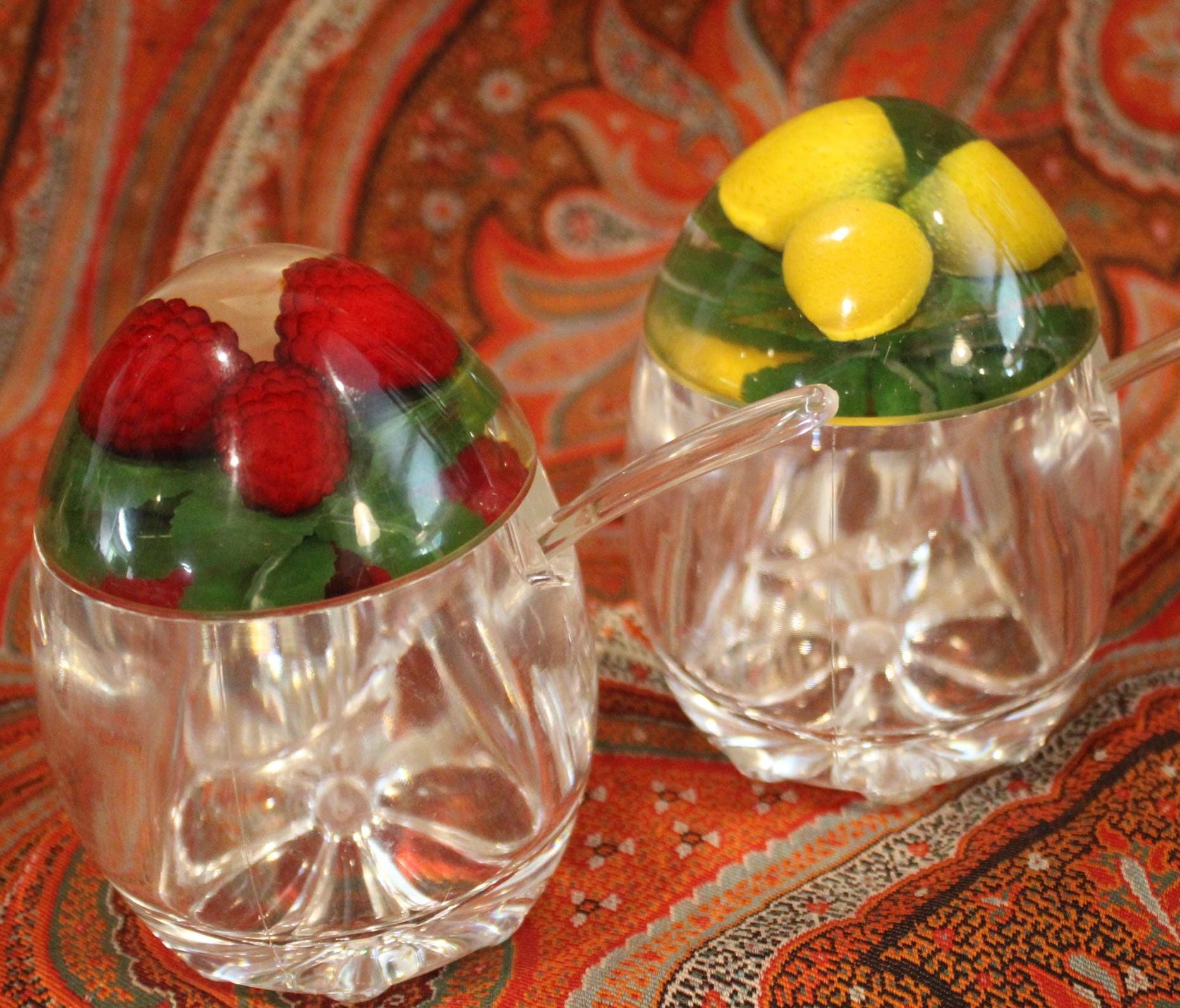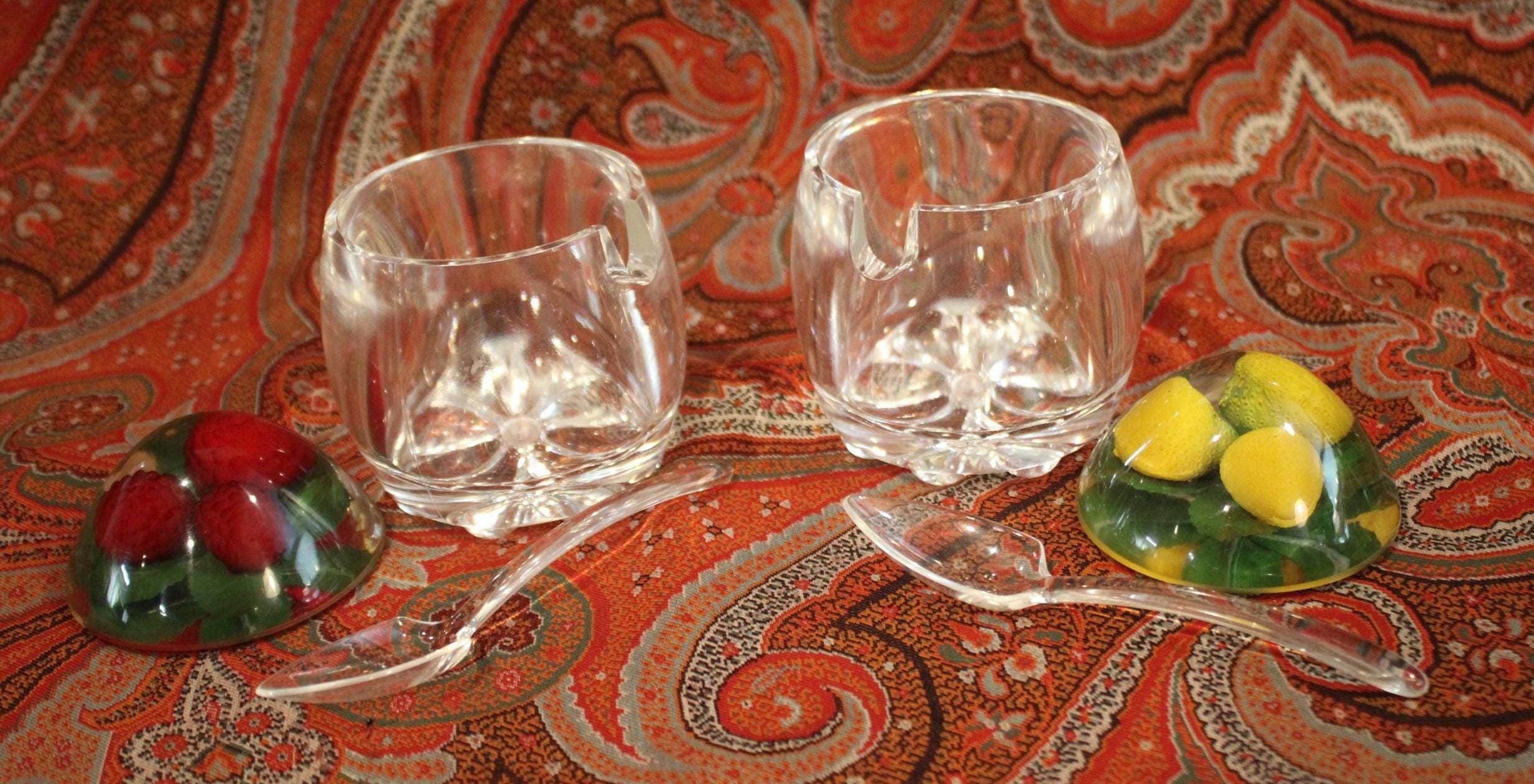Spectacular Midcentury Lucite Raspberry and Lemon Jam Jars with Spoons- Retro/Breakfast/Tea Party/Biscuits and Scones
