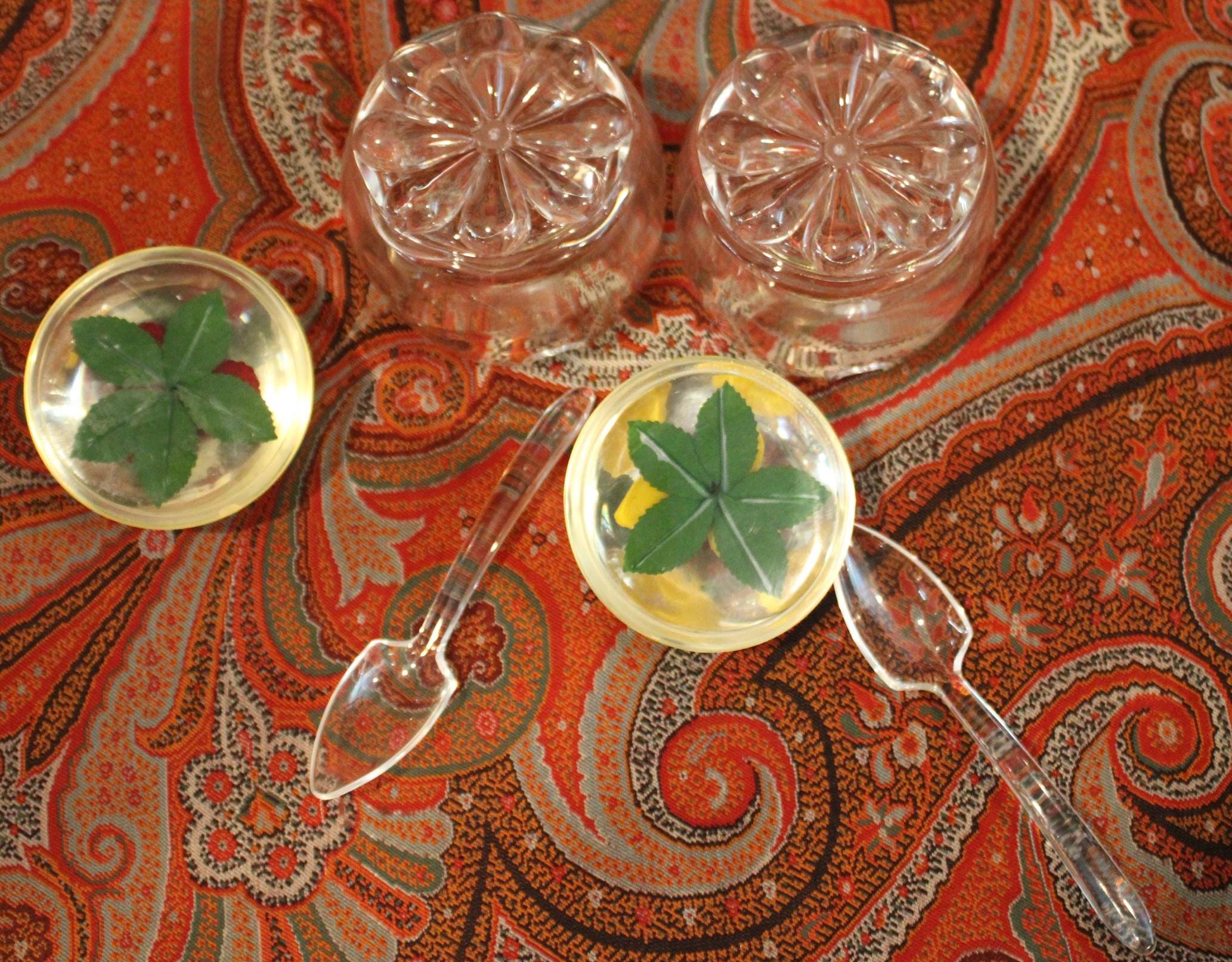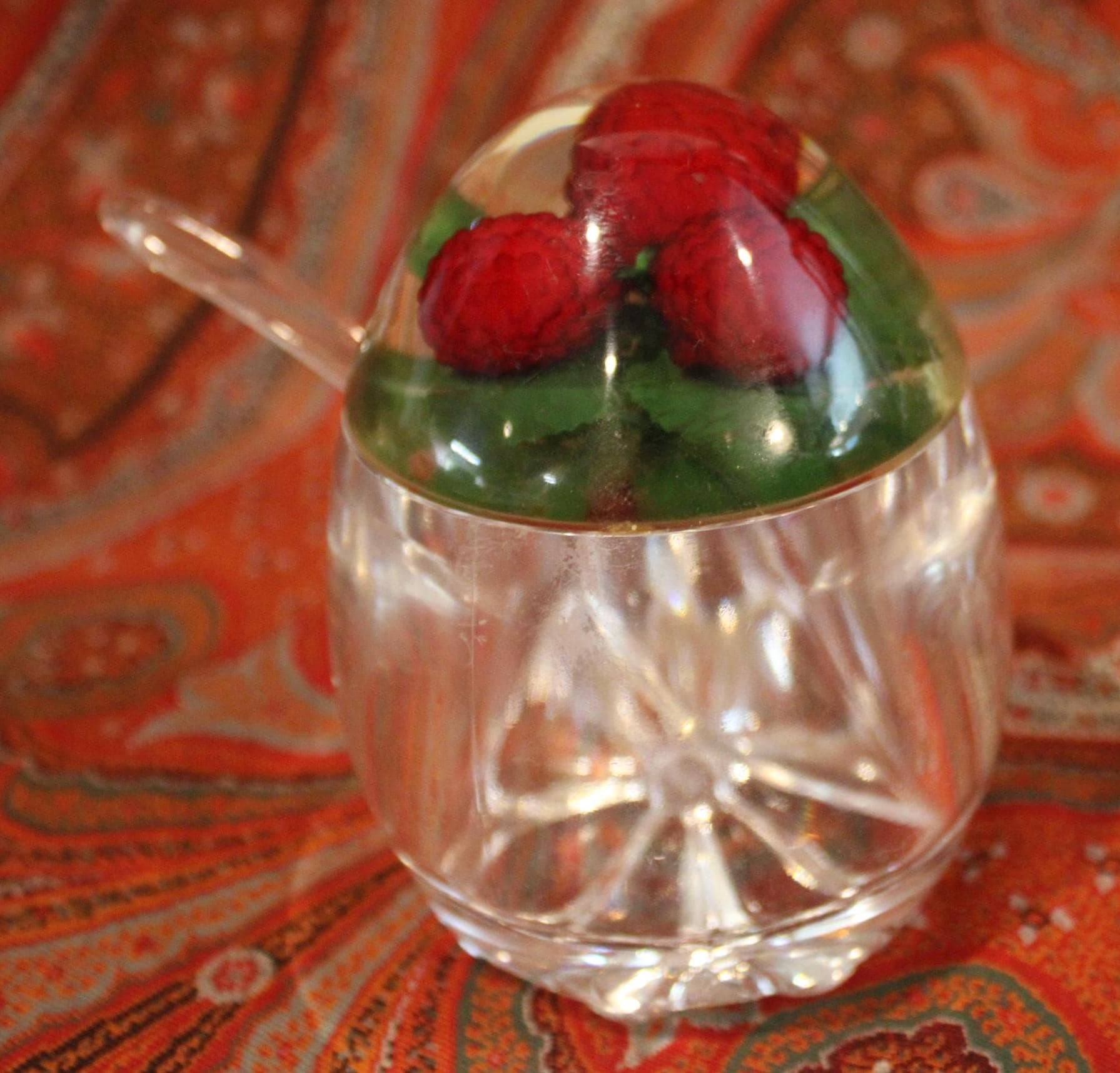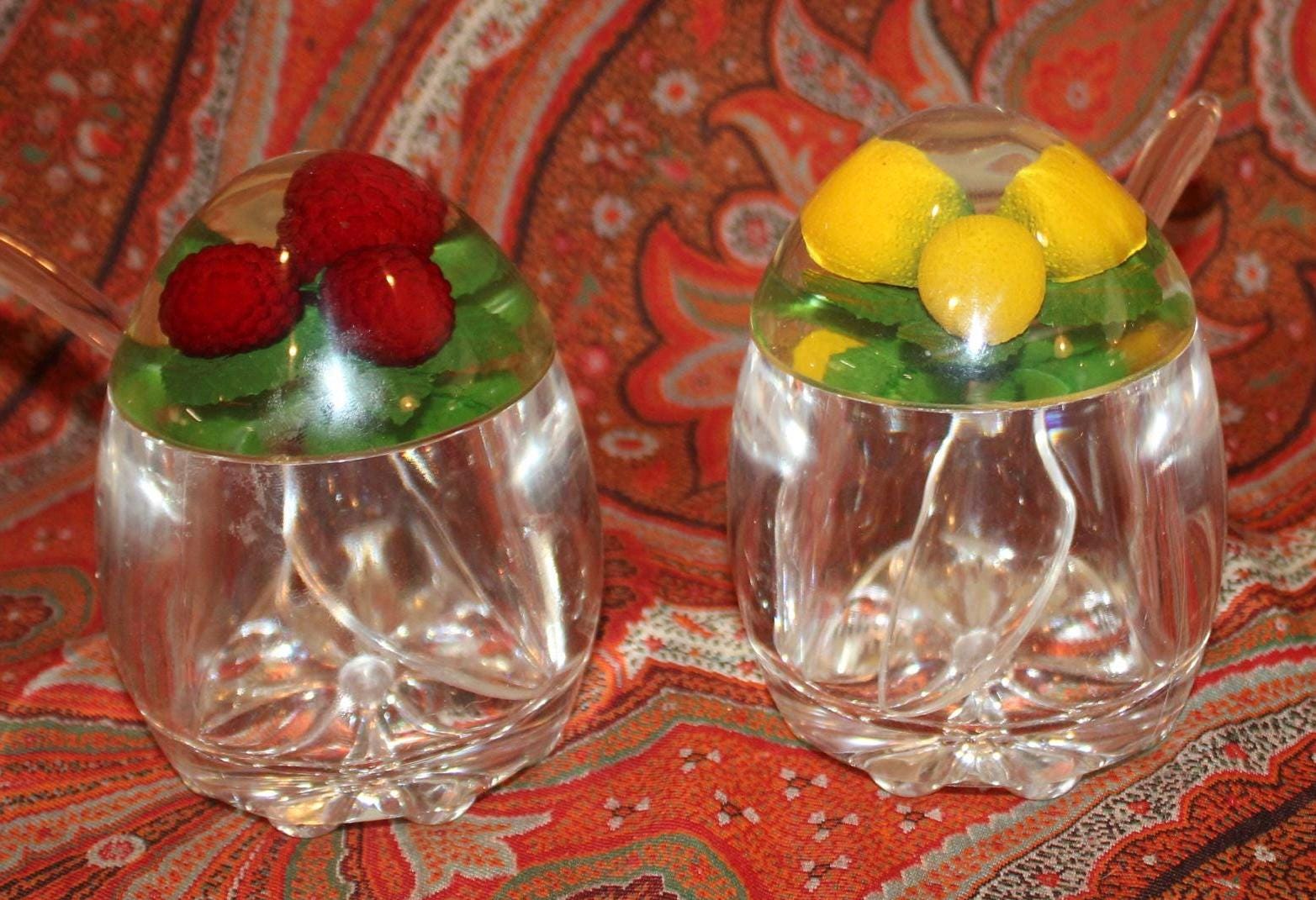 Spectacular Midcentury Lucite Raspberry and Lemon Jam Jars with Spoons- Retro/Breakfast/Tea Party/Biscuits and Scones