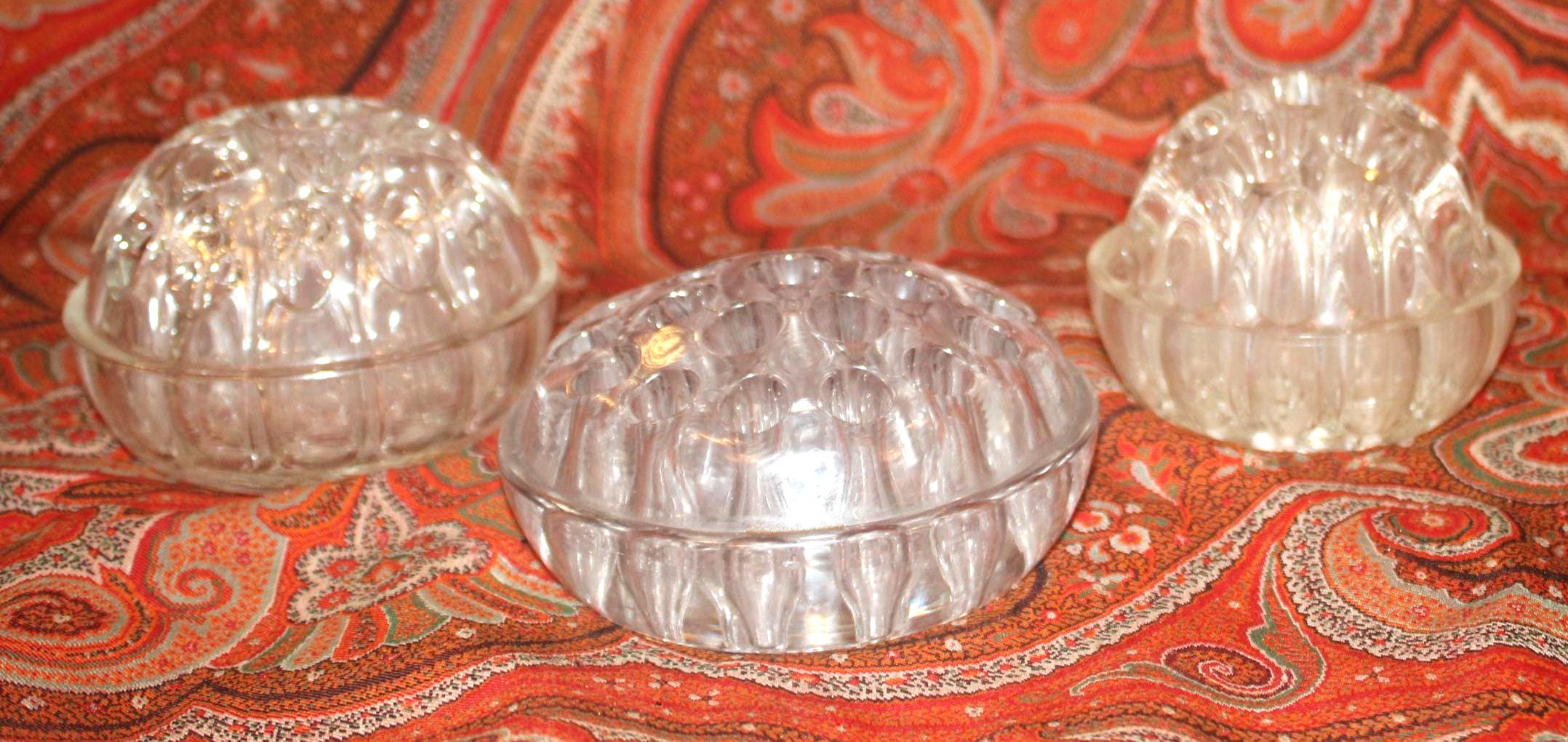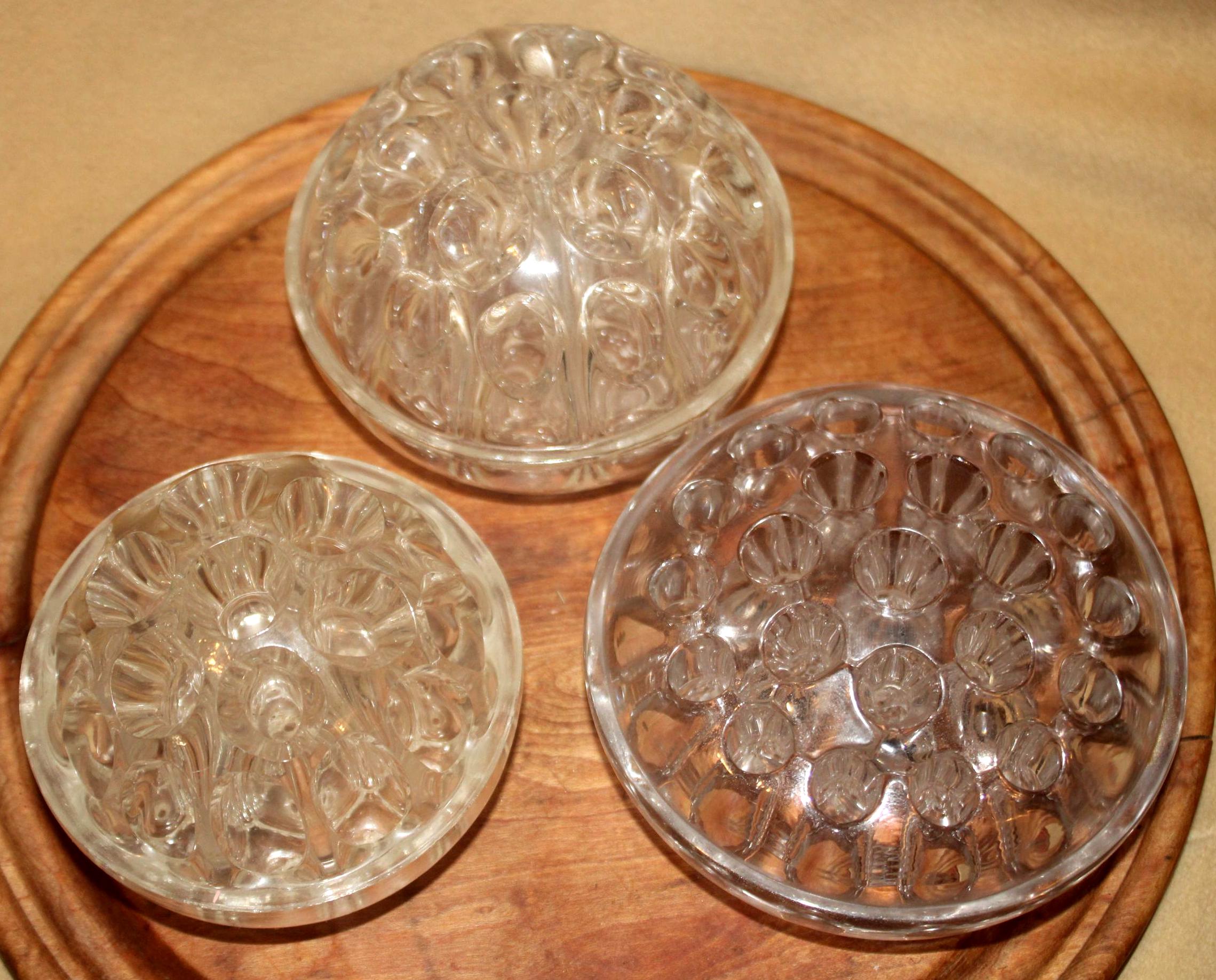 Three Gorgeous Vintage Glass Flower Frogs- Sold Together- Flowers/Arrangements/Farmhouse Decor