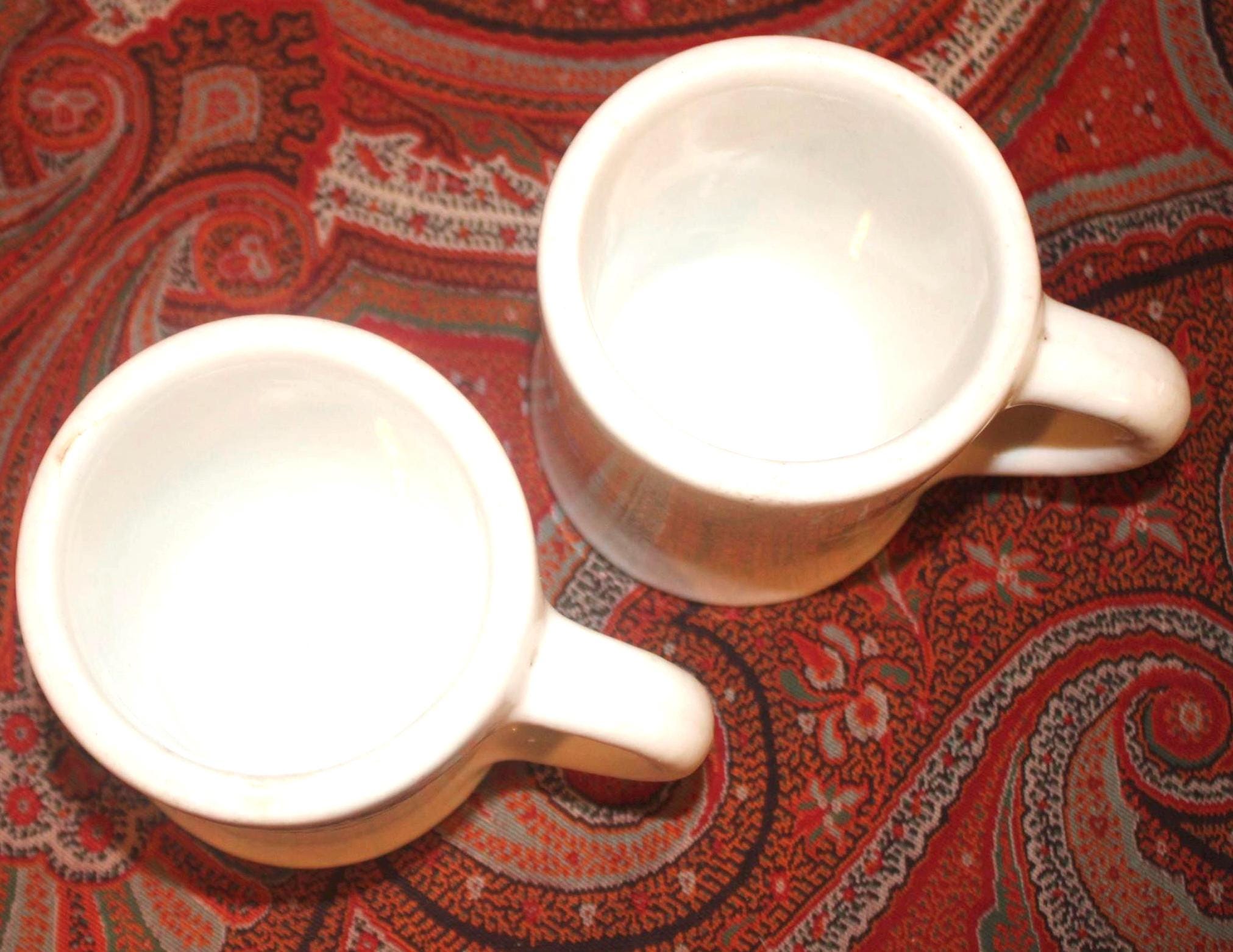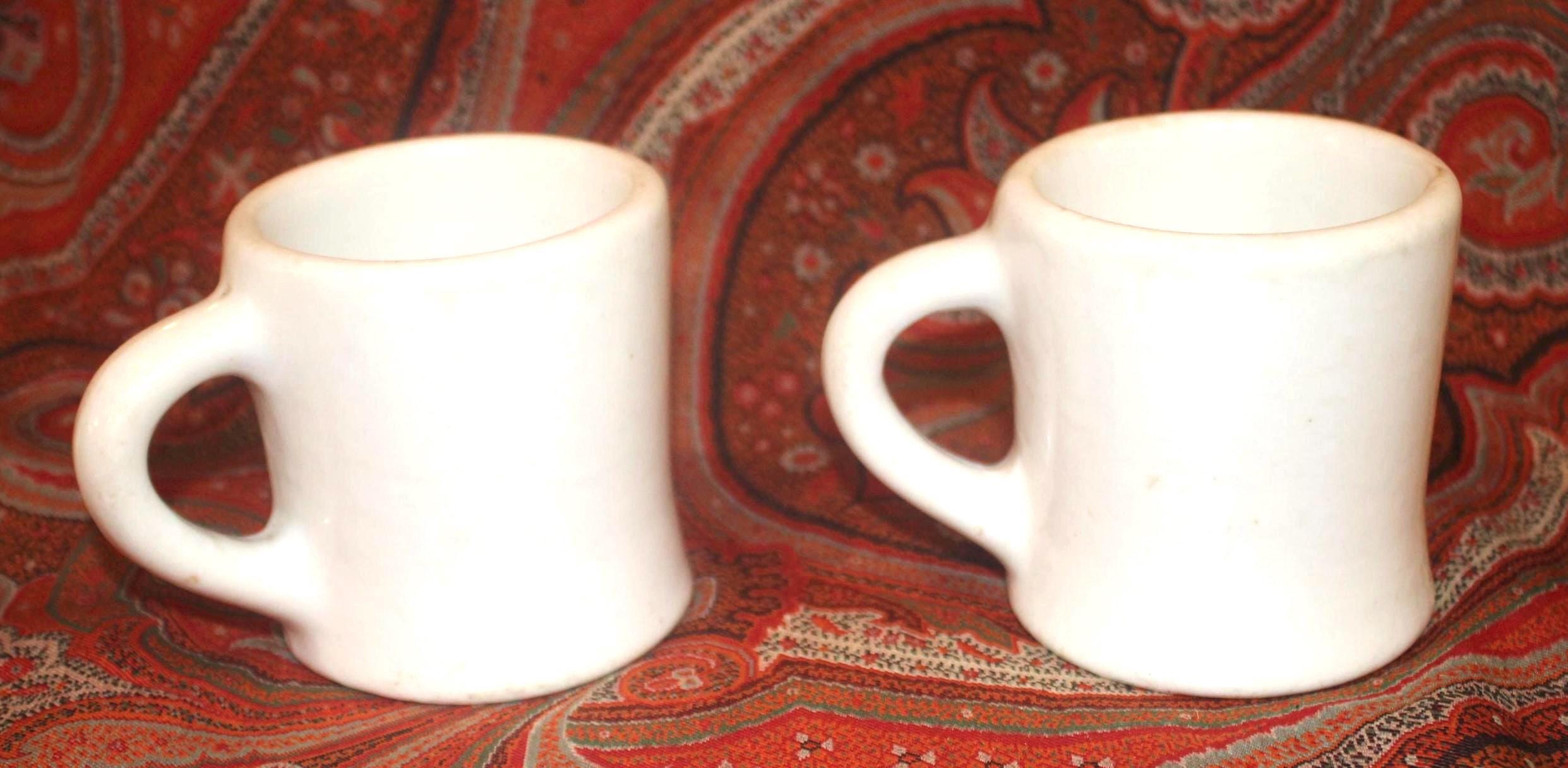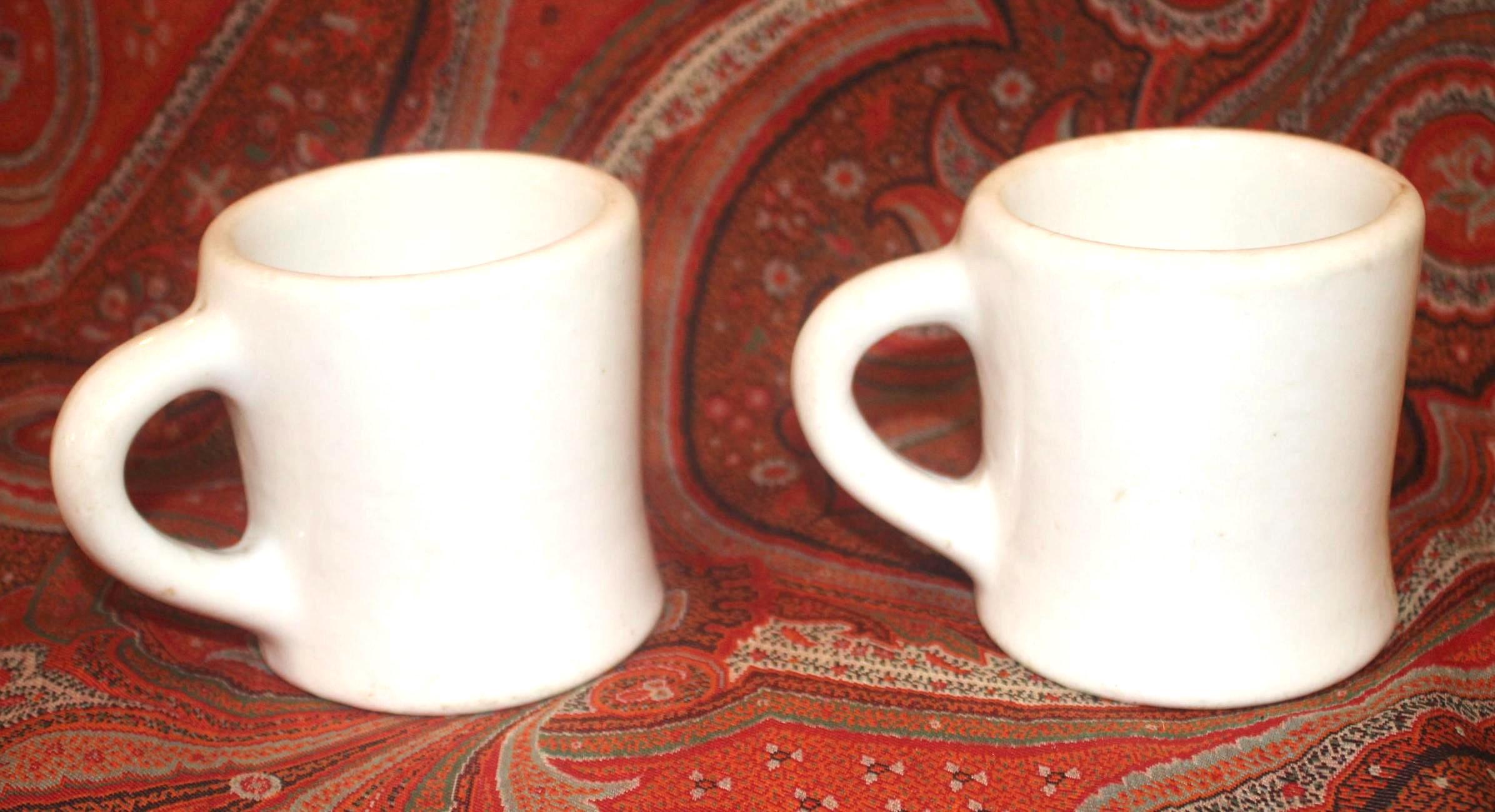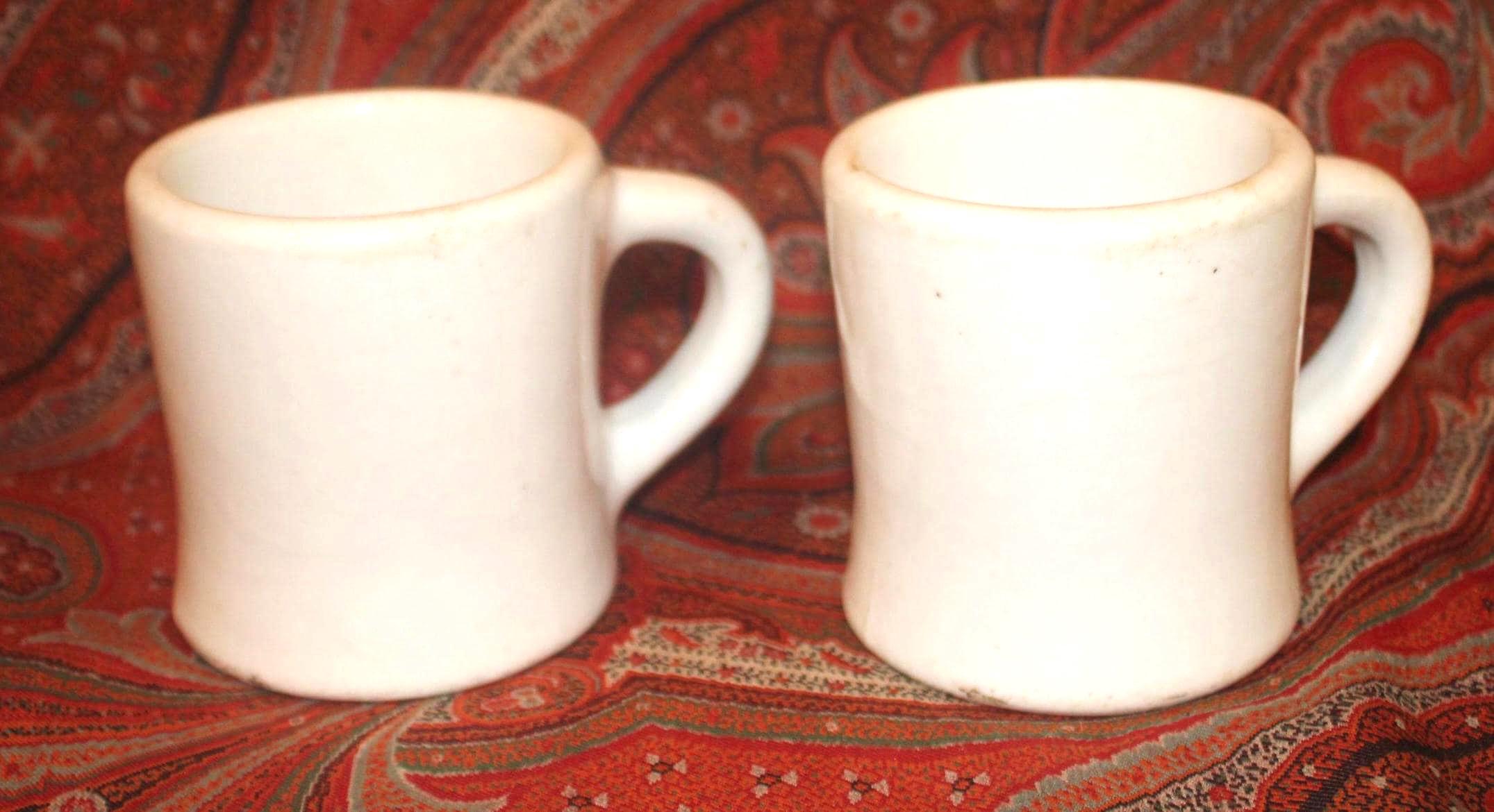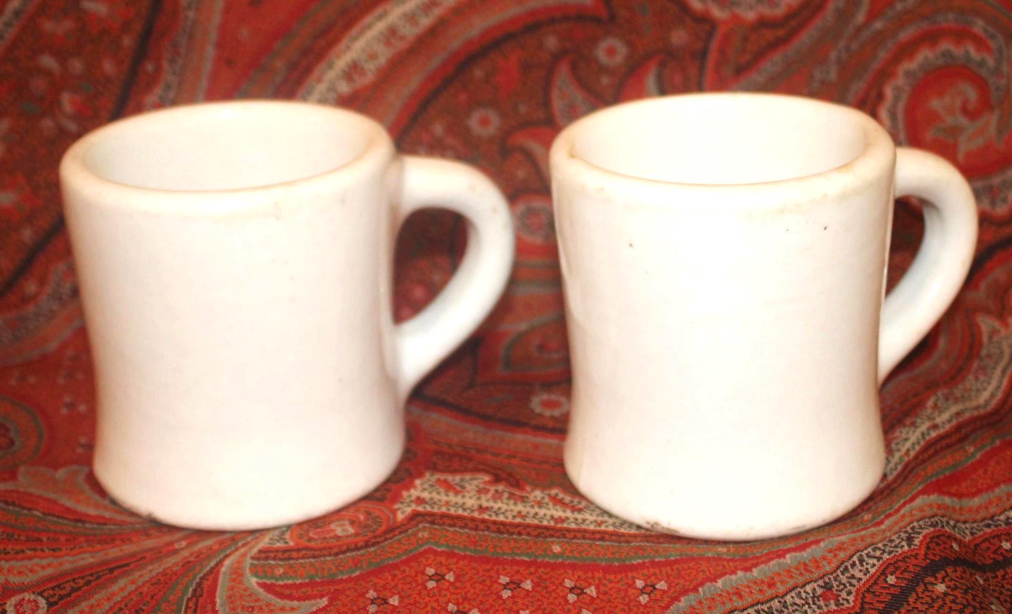 Two Vintage Heavy White Restaurant Ware Mugs- Bailey Walker Bedford Ohio- circa 1940