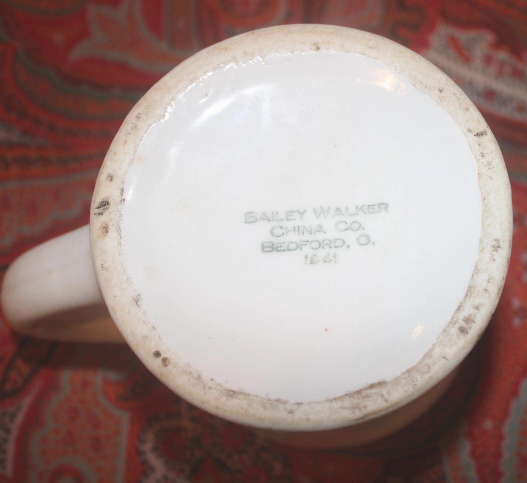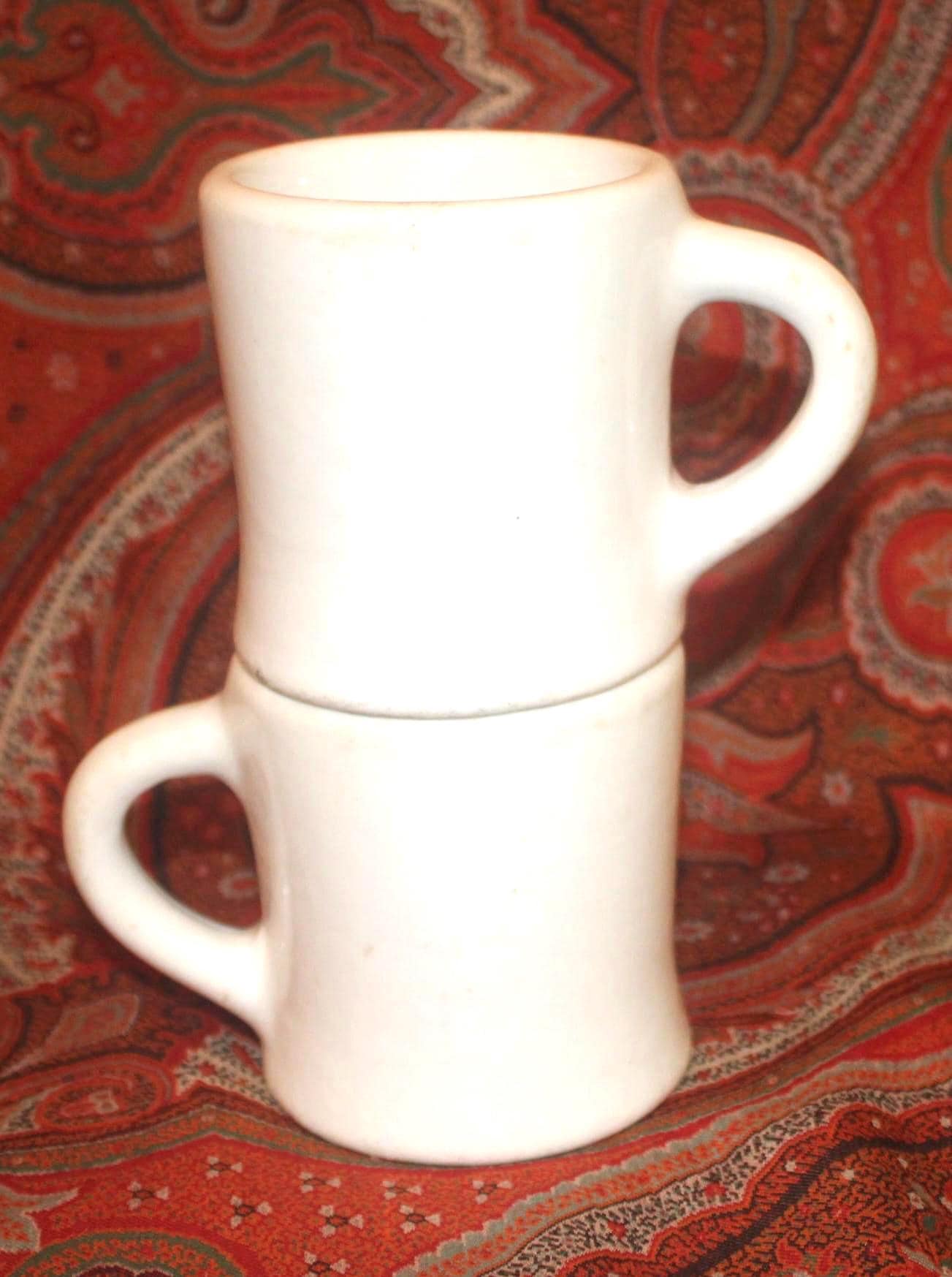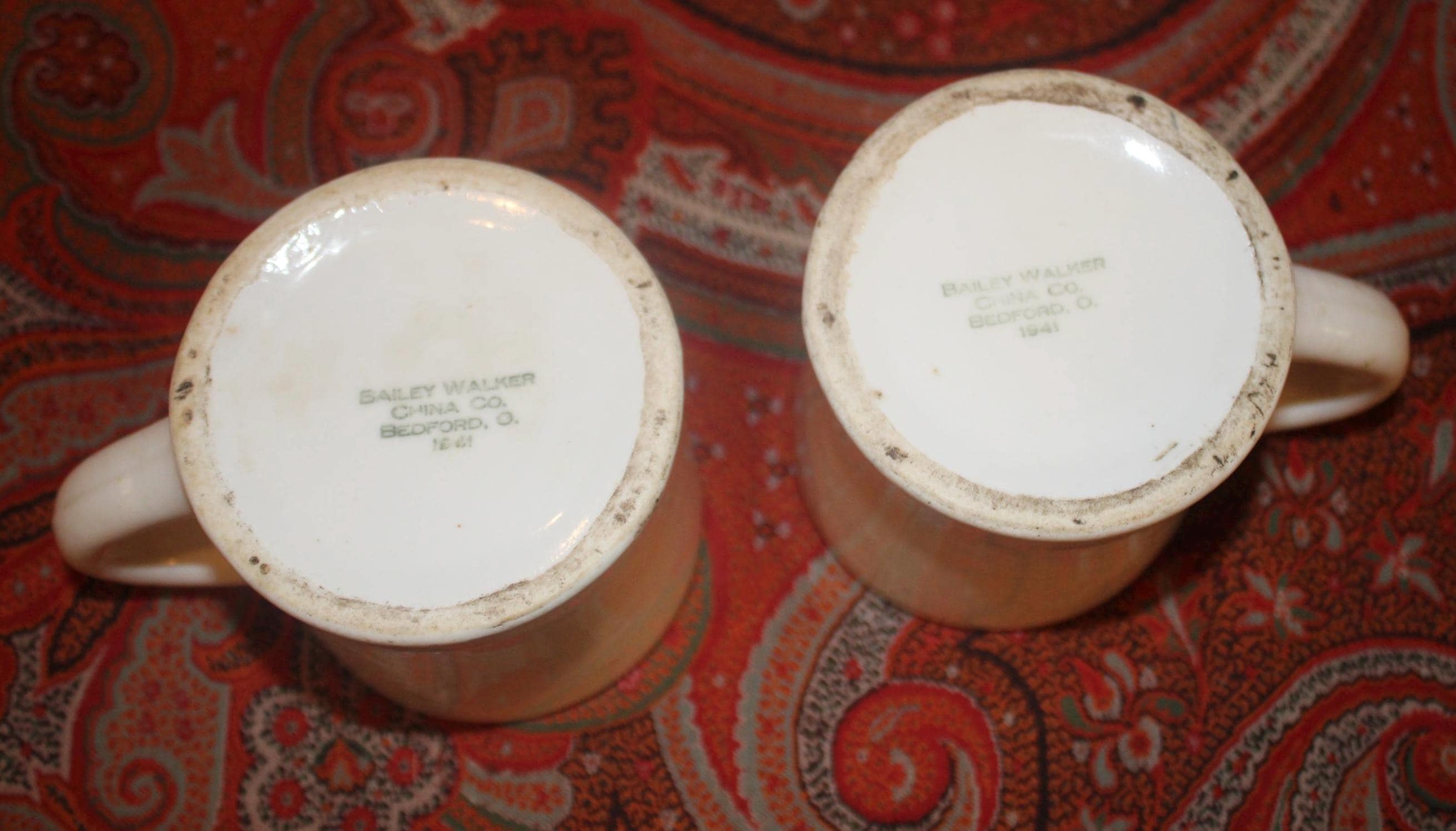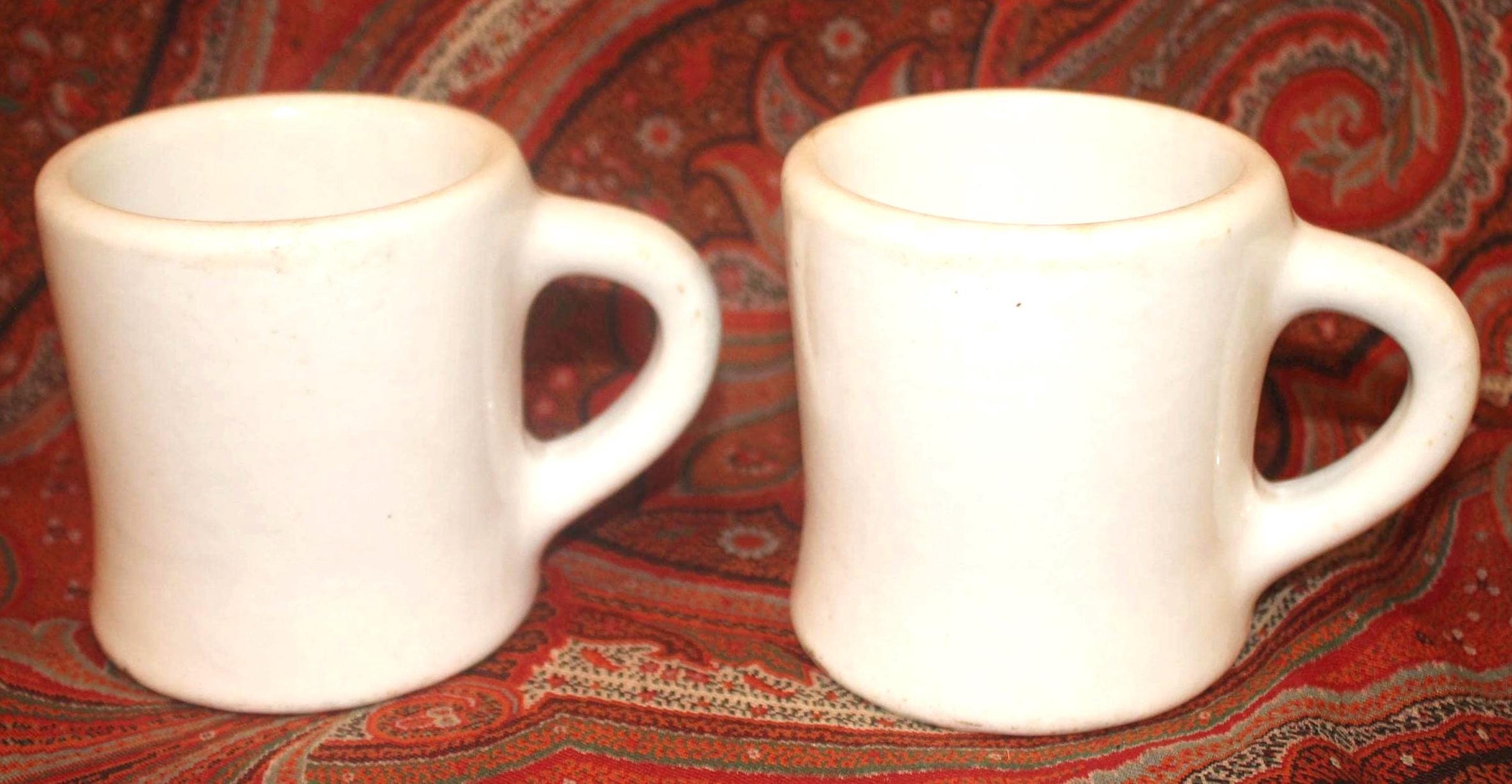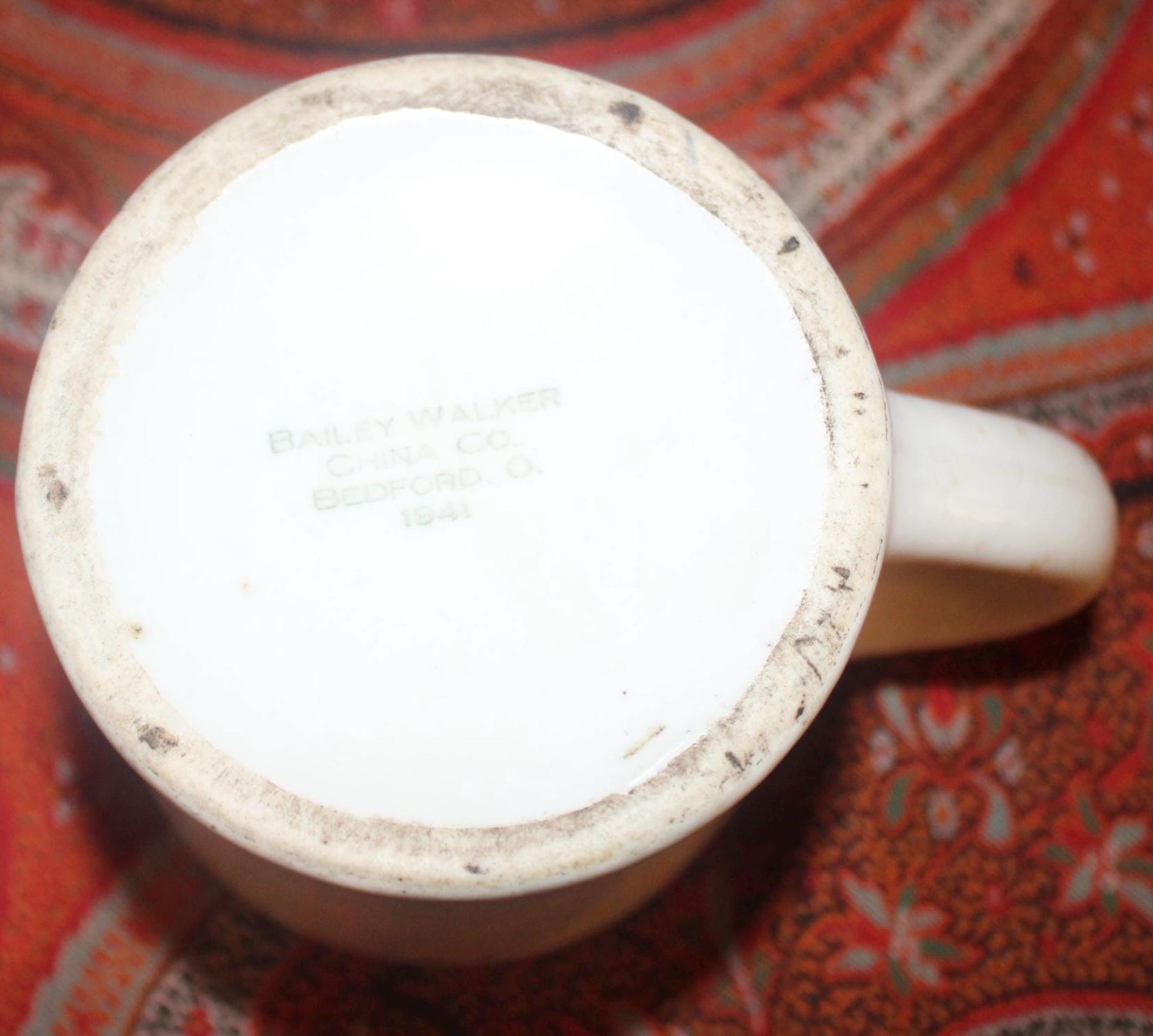 Two Vintage Heavy White Restaurant Ware Mugs- Bailey Walker Bedford Ohio- circa 1940