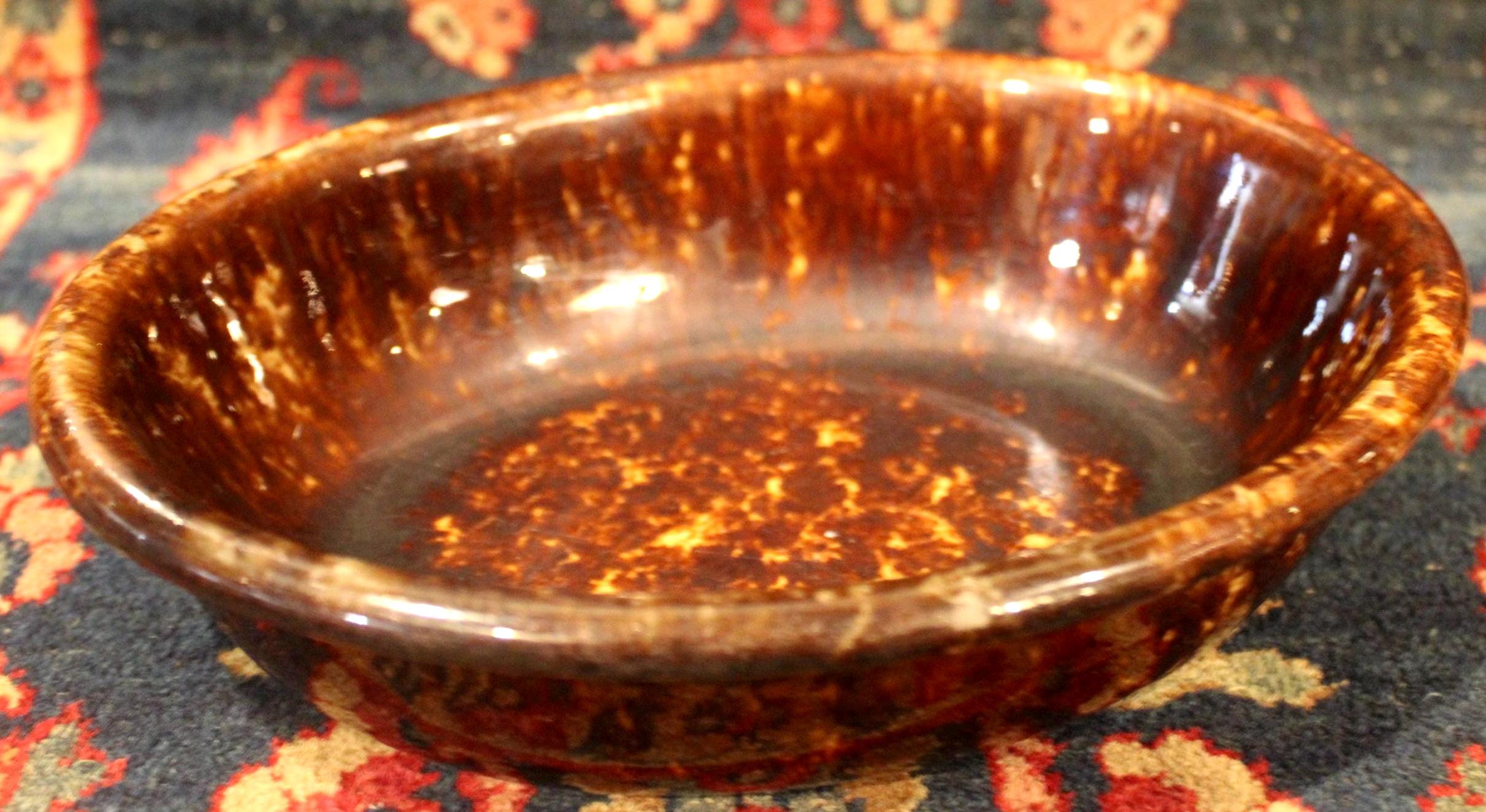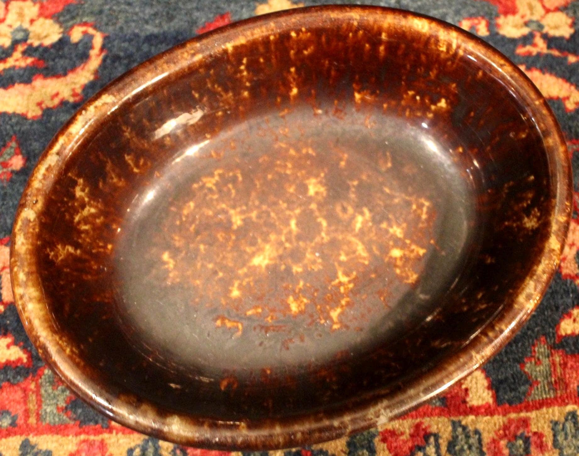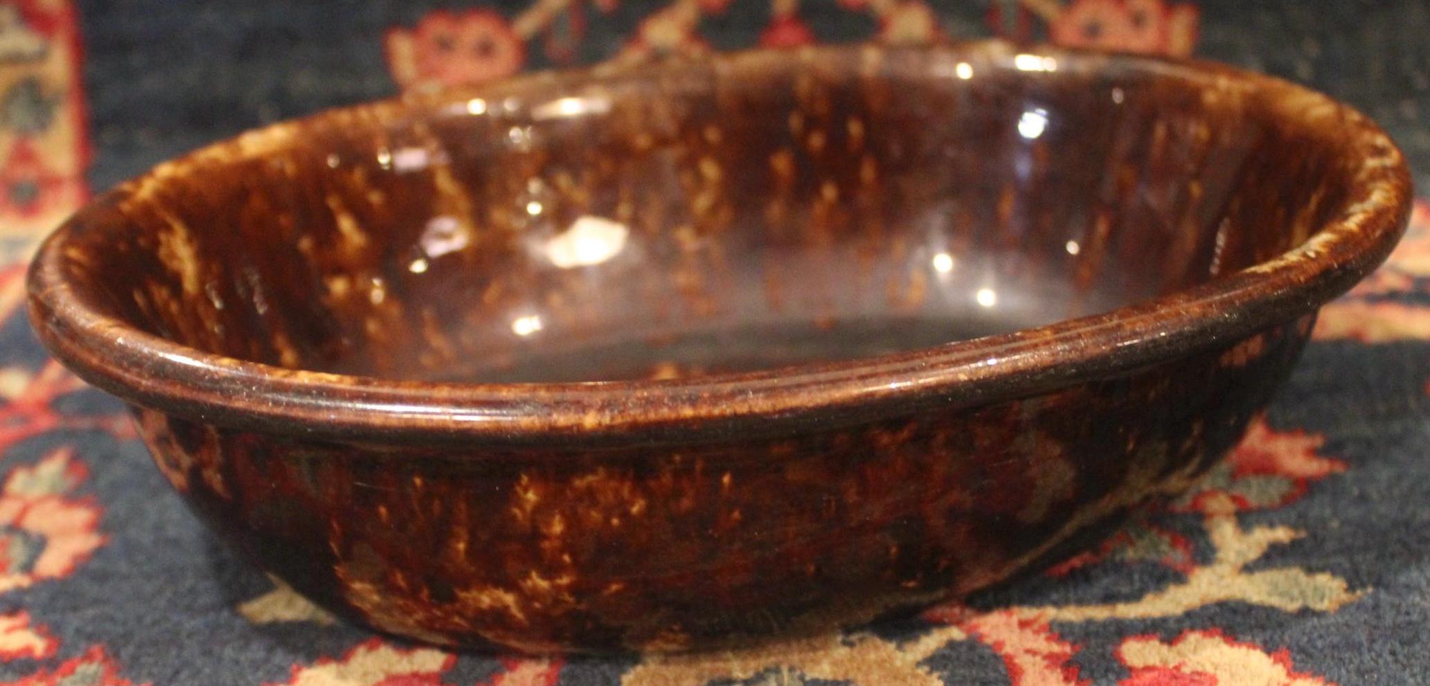Great Antique Rockingham Pottery Spongeware Oval Dish-Stoneware/Baking/Country Kitchen