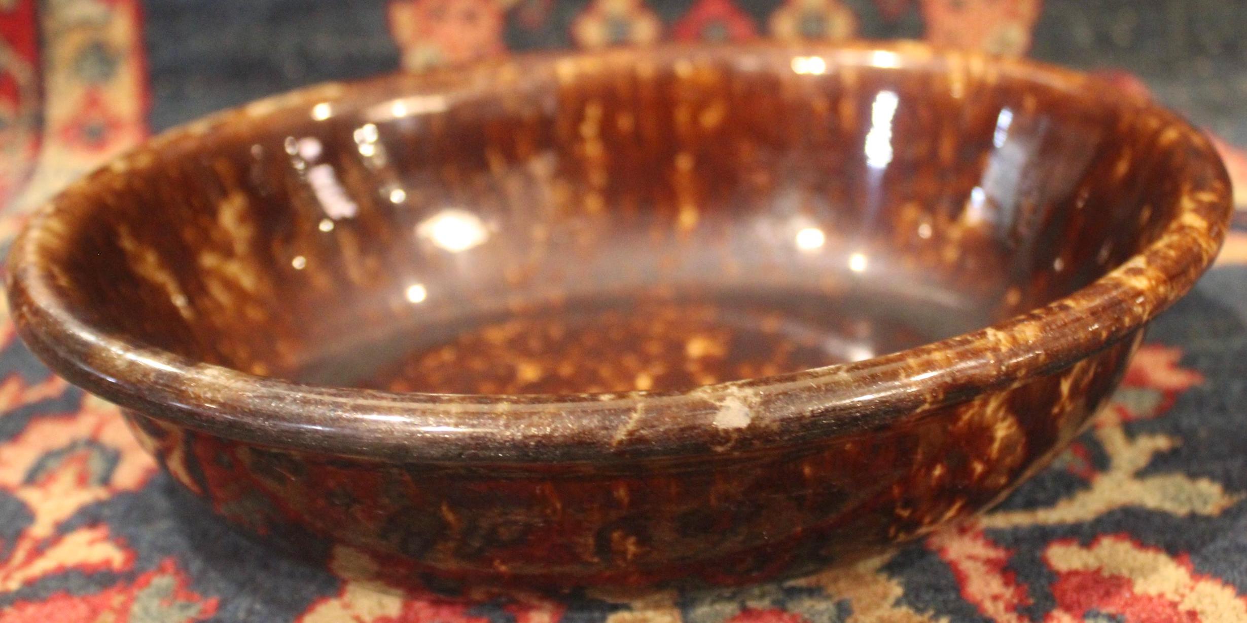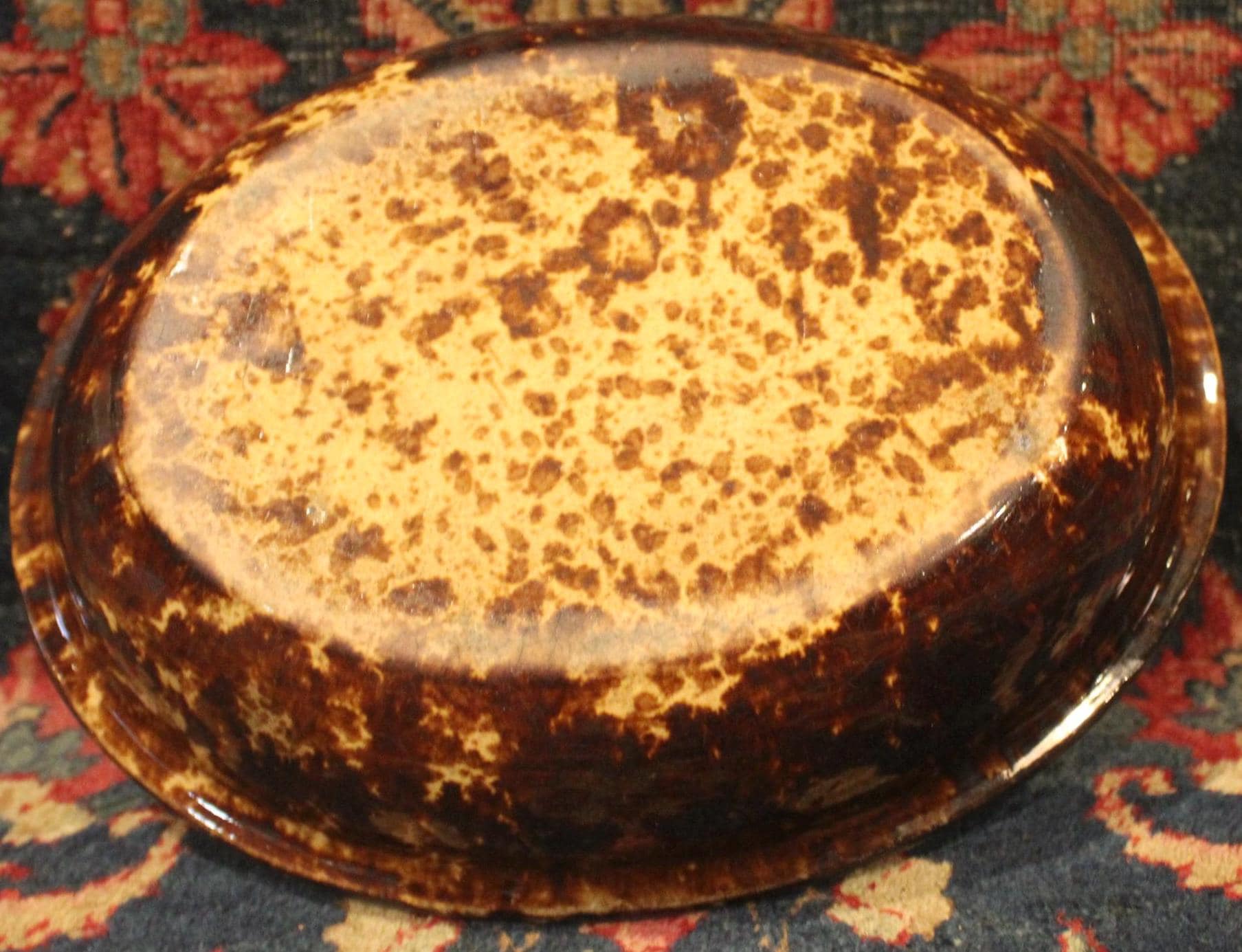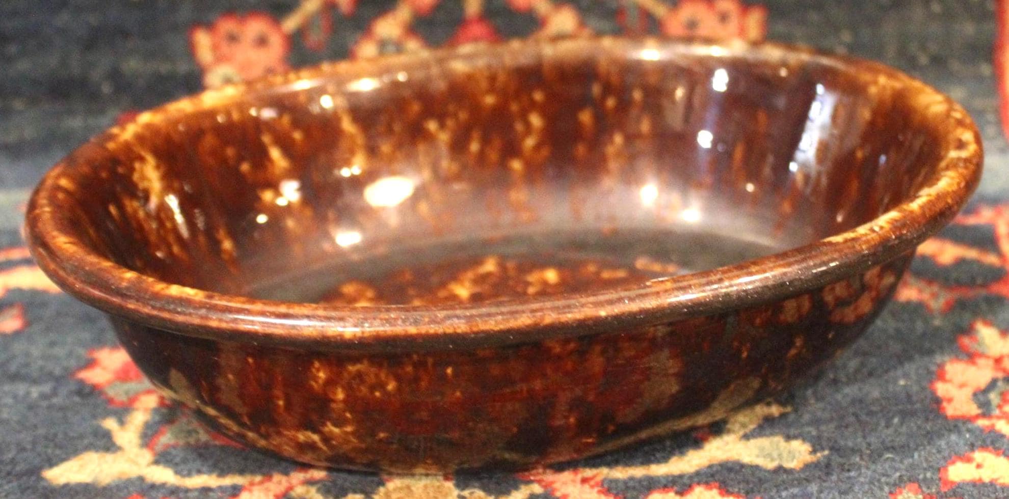 Great Antique Rockingham Pottery Spongeware Oval Dish-Stoneware/Baking/Country Kitchen