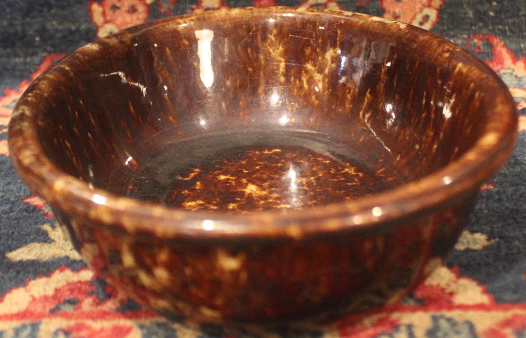 This Rockingham Pottery Spongeware Oval Dish would be perfect to display in your home! It makes a perfect catch-all dish. It is " x 6.5" x 2"; there is a tiny ding on the rim (please see our photos) but no other chips or cracks. Please message us if you have any questions- Thanks for looking!