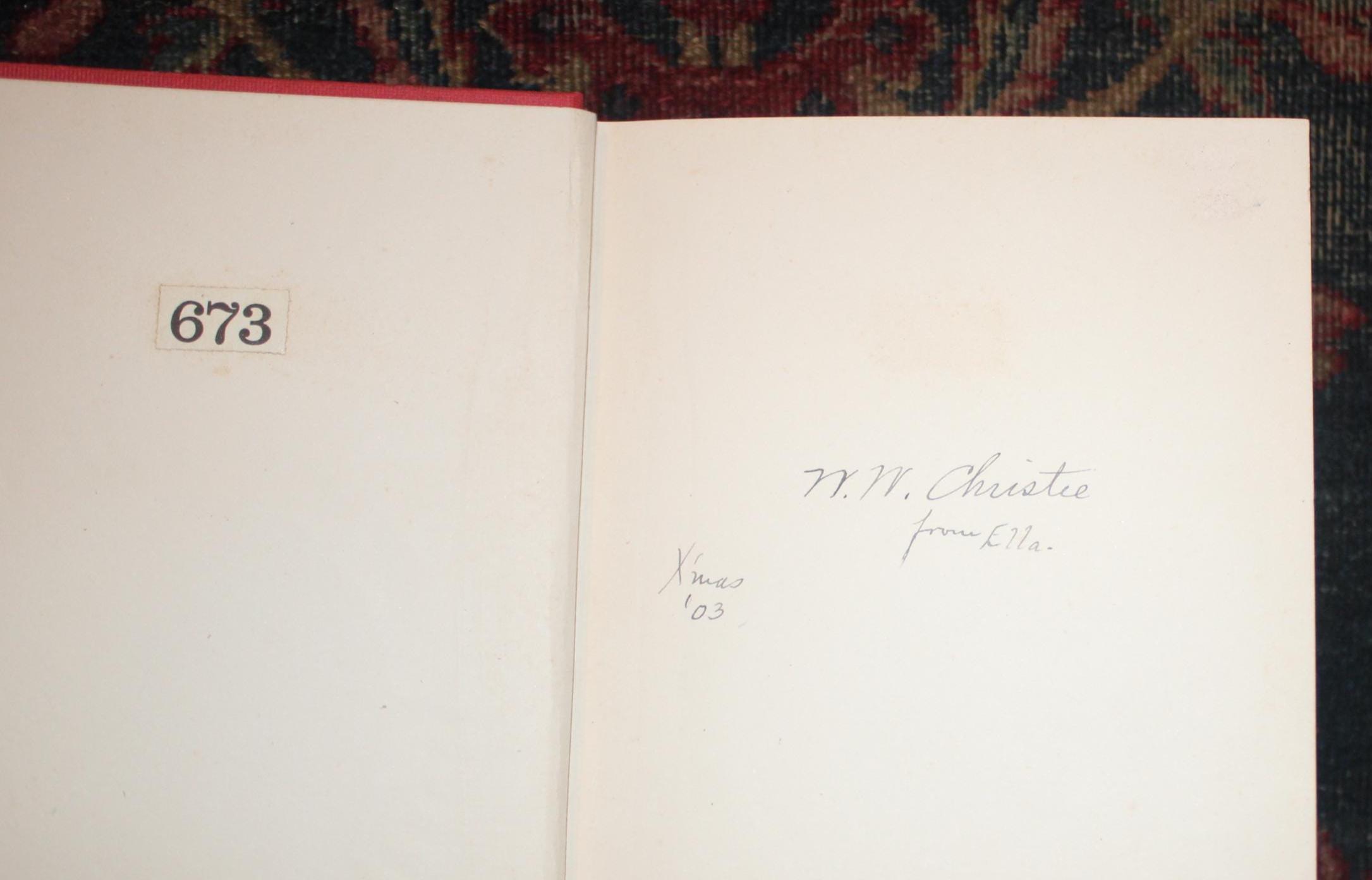 Clean pages. Tight binding. Red cloth boards are in excellent condition; Gold gilt and front pictorial plate are in very good condition. Gift inscription on front end page. No dust jacket (as issued). NOT ex-library.
