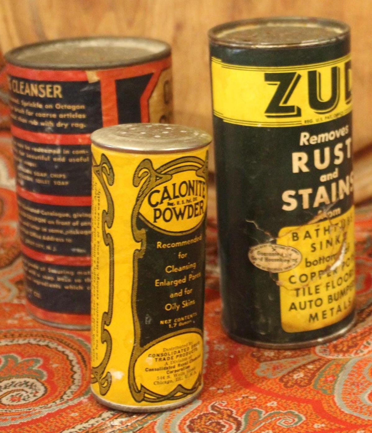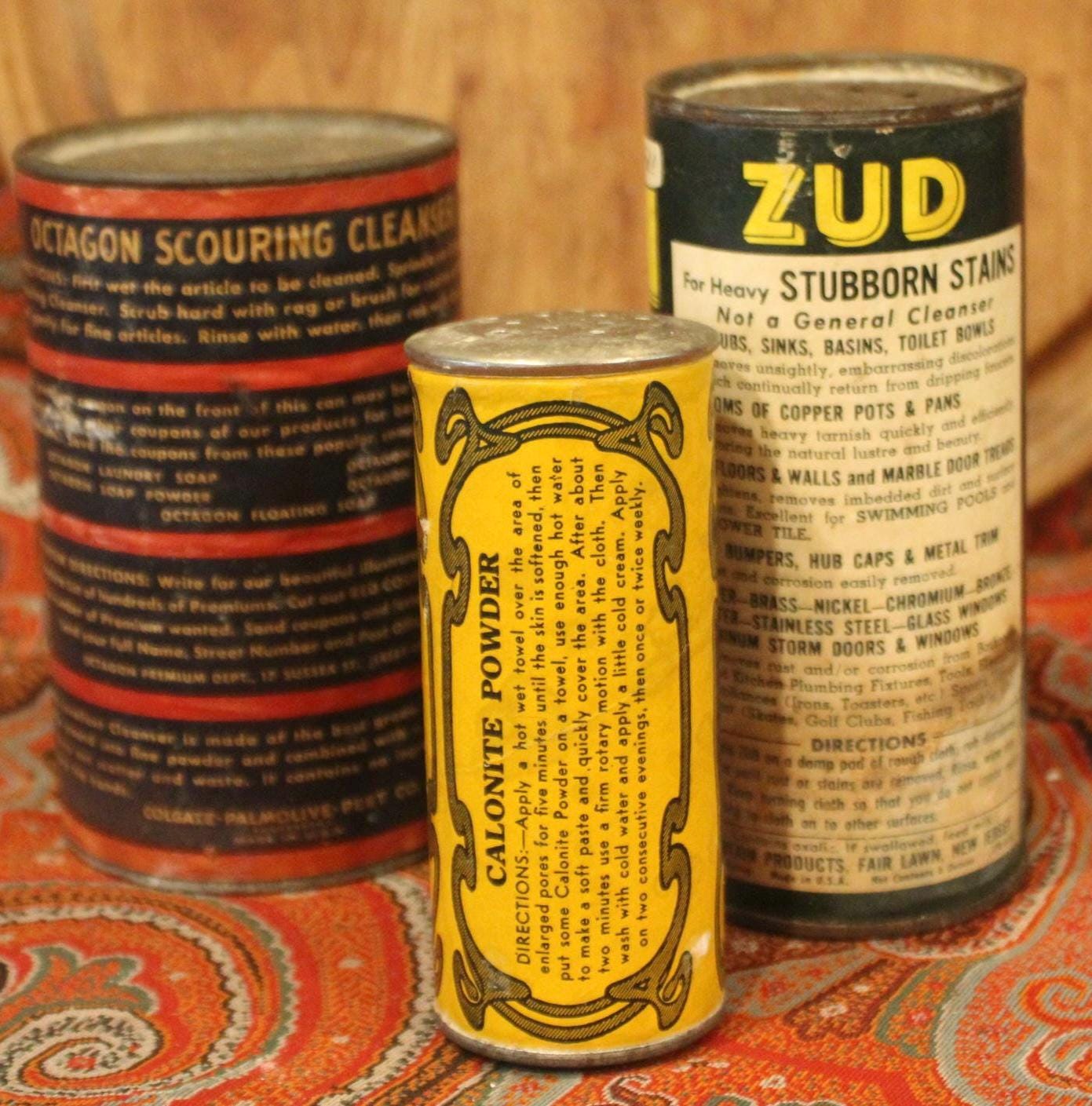 Set of Three Vintage Cardboard Tins/Containers Calonite. Zud, and Octagon-Great Advertising!!