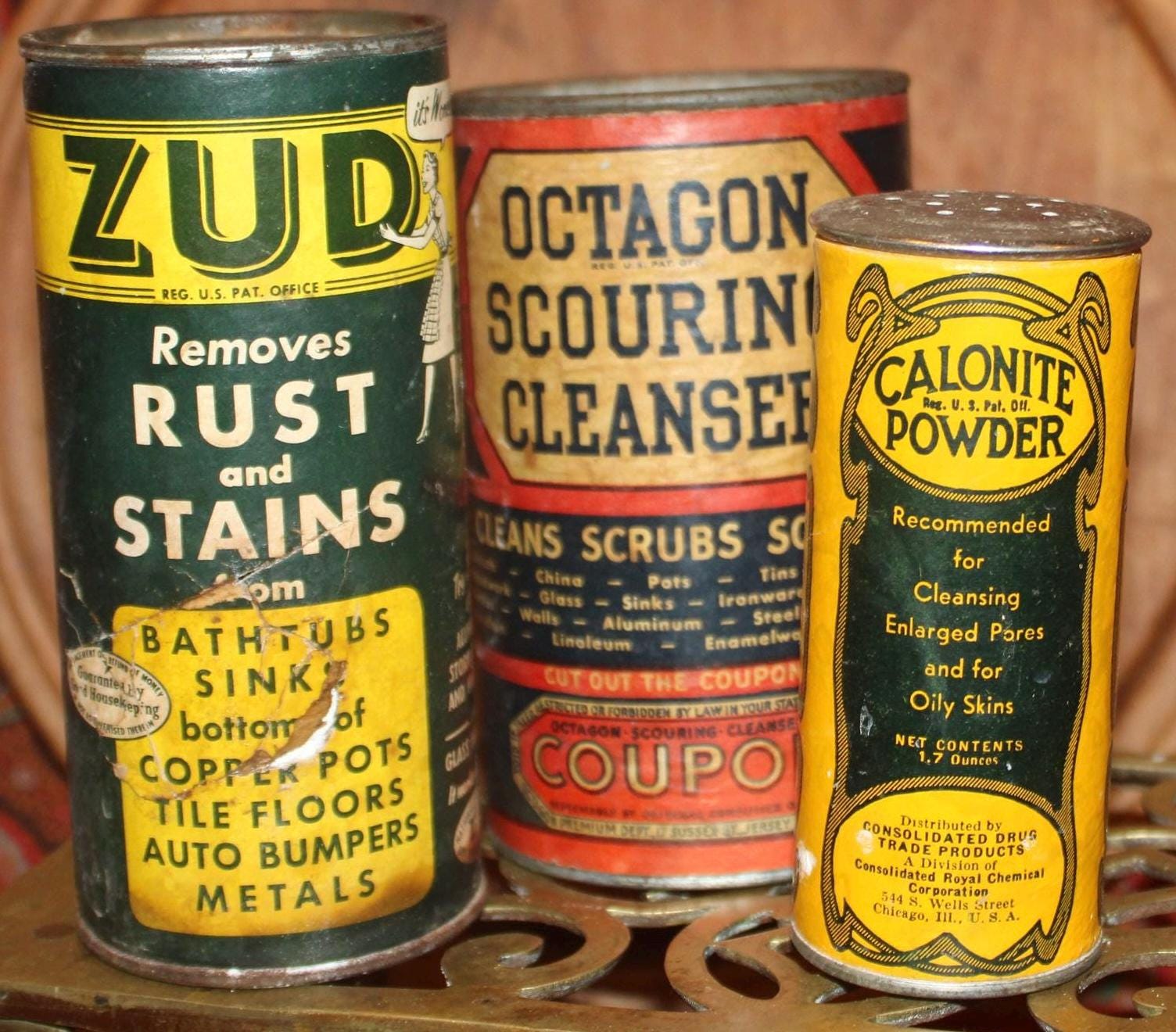 This Set of cans is available to you-they are Calonite, Zud, and Octagon- all in great condition for their age.