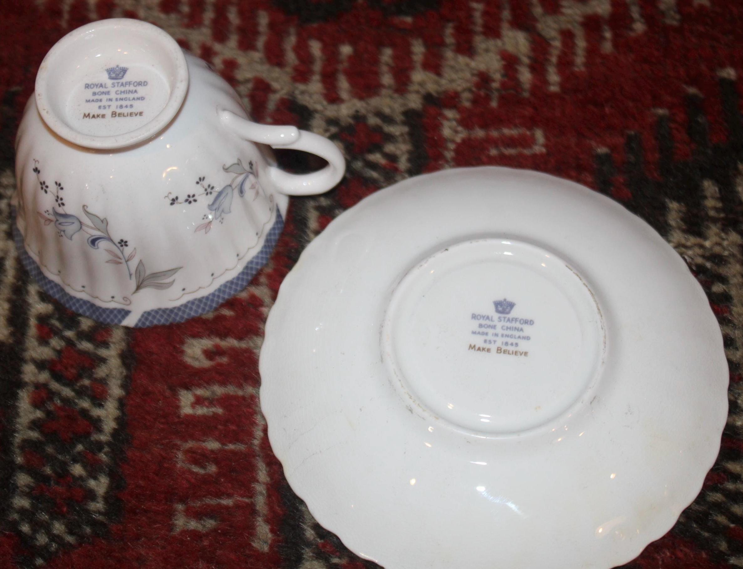 This Gorgeous Royal Stafford English Bone China Cup & Saucer "Make Believe" with blue and pink flowers is available to you! A perfect addition to your teacup collection! The saucer measures 5.5” in diameter. There are no chips or cracks. Please message us if you have any questions- Thanks for looking!