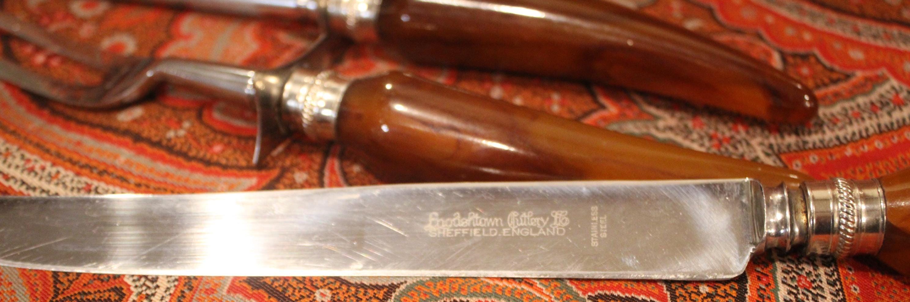 Englishtown Sheffield Carving Set: Bakelite Handles, Stainless Steel, Made in England