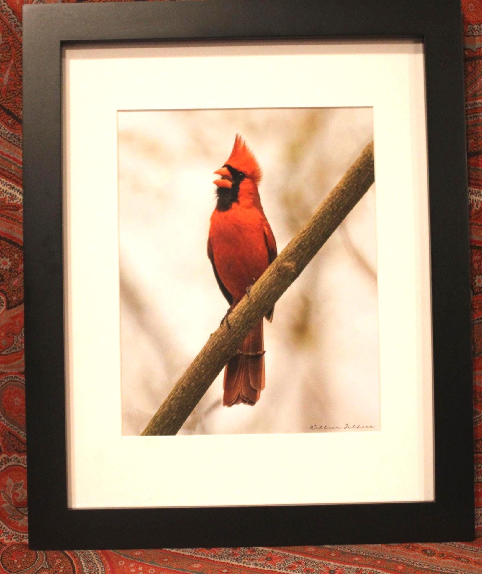 Gorgeous Framed Photographic Print "The Red Cardinal" captured by William Jalbert- Vermont Photographer
