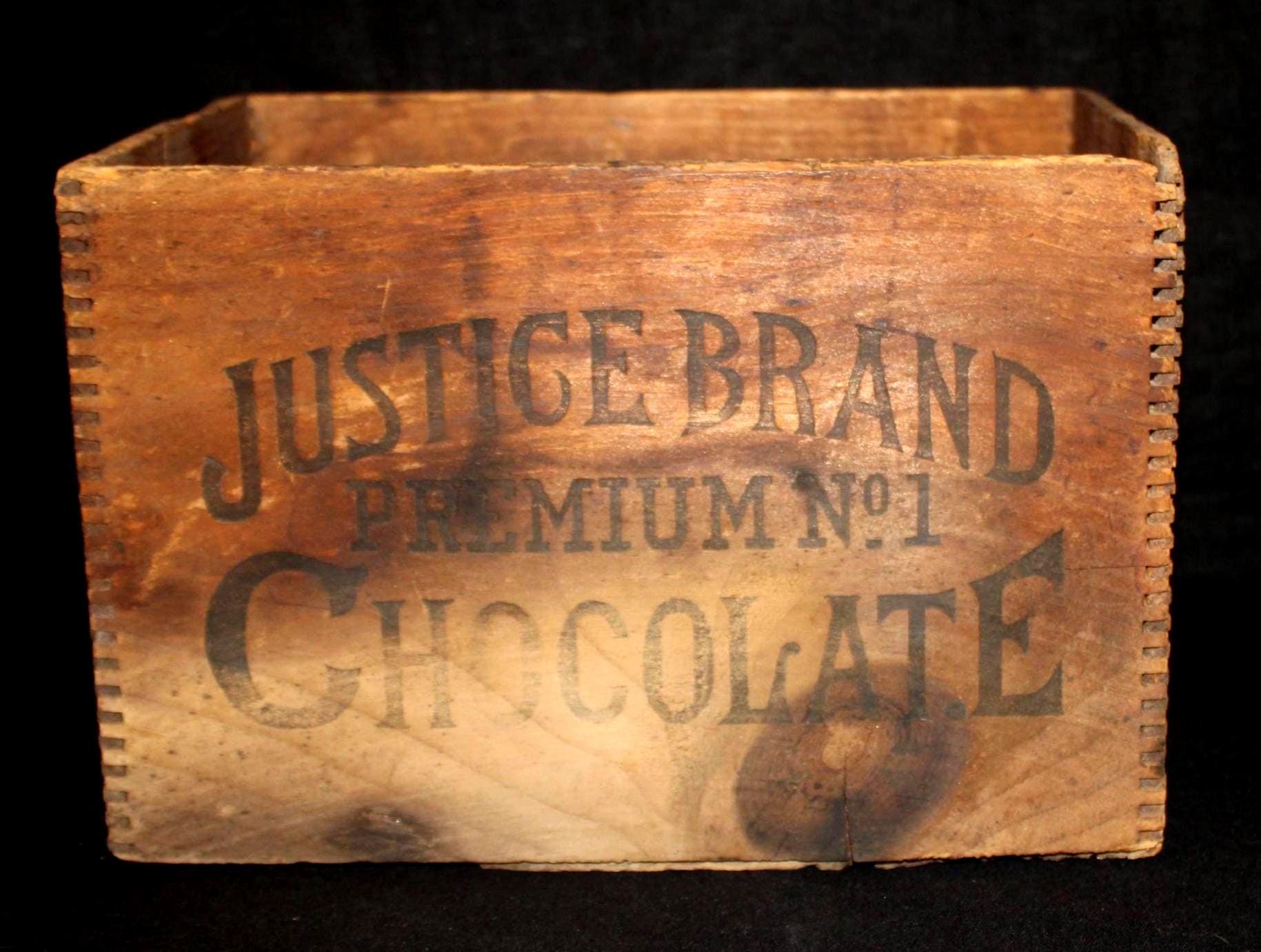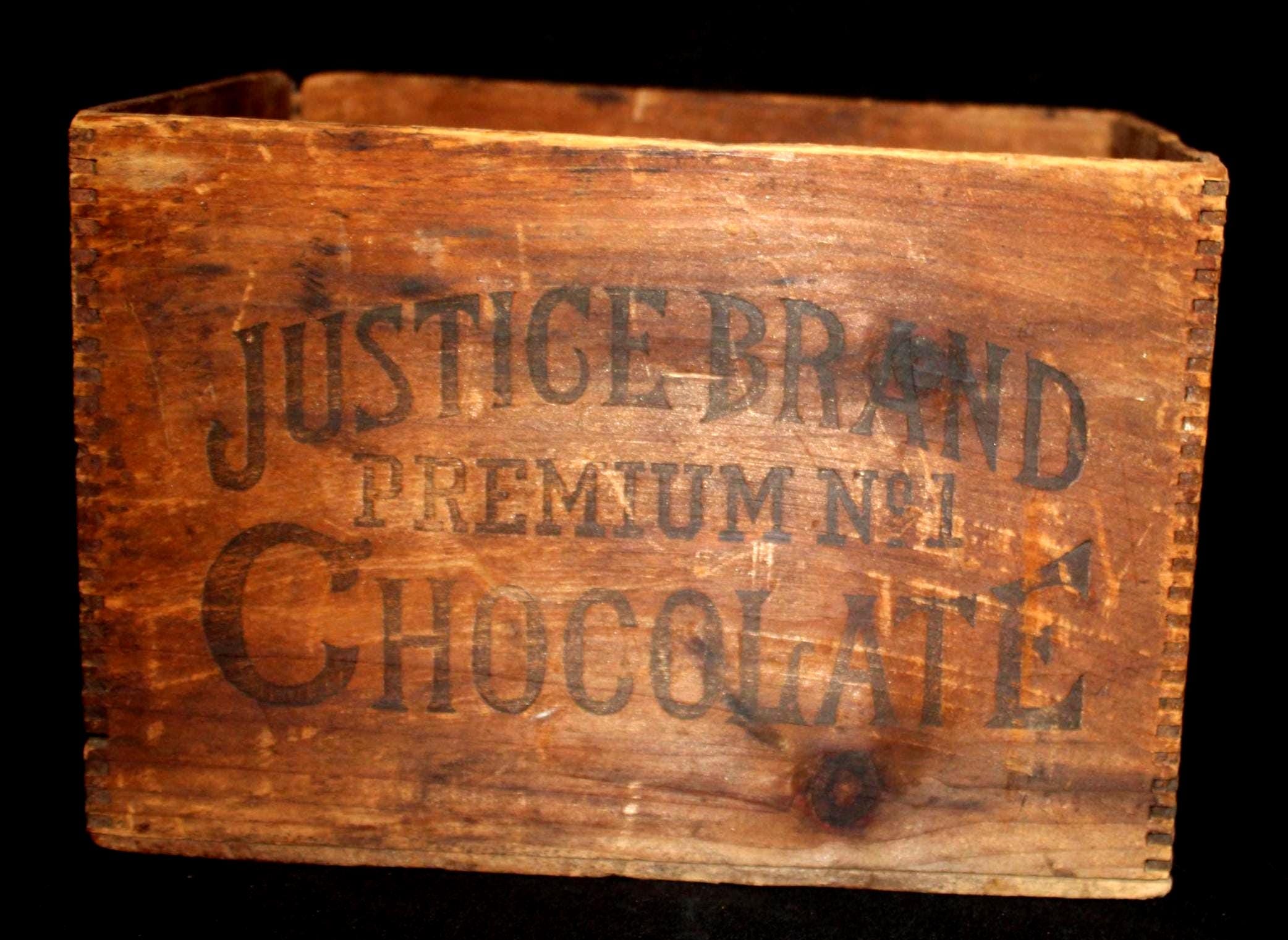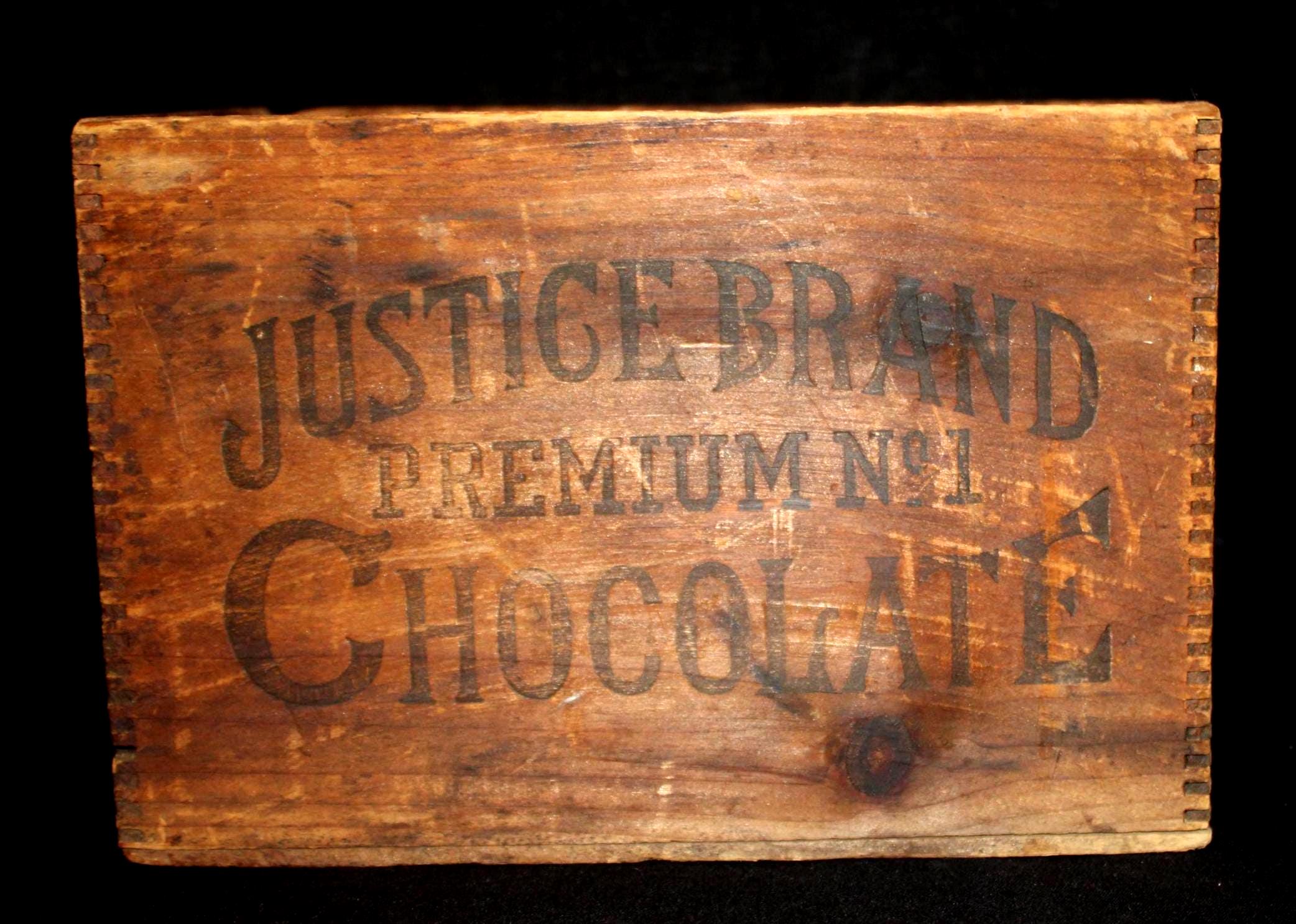 This 19th century Justice Brand Premium No. 1 Chocolate box produced by William H. Baker is available to you! The rich history of the chocolate industry in the United States at the turn of the century is interesting- and this box is a great example of its competitive nature. William Henry Baker formed his cocoa business in 1893 near Winchester, Virginia meanwhile Walter Baker of Baker's chocolate of Dorchester, Massachusetts had been selling chocolate in the U.S. since 1780....(yes- we were confused too....). There ensued at least two legal battles between W. H. Baker and Walter Baker & Co. Baker’s believed W. H. Baker was fraudulently trying to capitalize on the Baker name and intentionally mislead customers who had intended to buy Baker’s Chocolate but were being sold W. H. Baker’s Chocolate. In each instance, W. H. Baker was required to change his packaging to clearly highlight the difference between Baker's Chocolate and W. H. Baker's Chocolate. Hence, the advertising on our box........"William H. Baker Syracuse, Inc. Justice Brand Premium No. 1 Chocolate". What is very interesting is that we could not find any mention of Justice Chocolate being located at 80 Wall Street in New York City....interesting, huh?