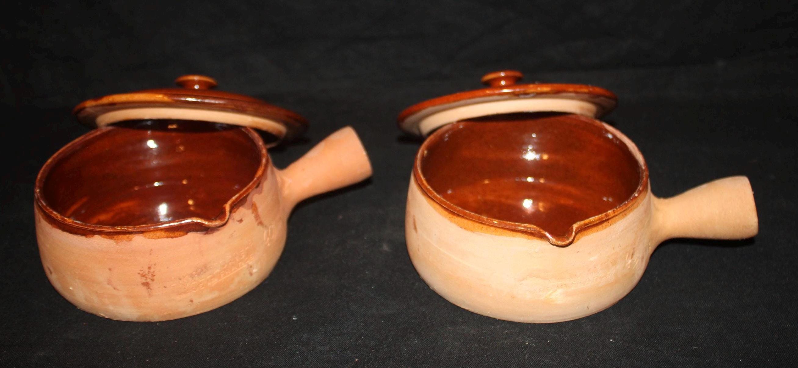Set of 2 Wonderful Vallauris France French Onion Soup Bowls with Lids- French Onion Soup/Bean Pots/French Farmhouse