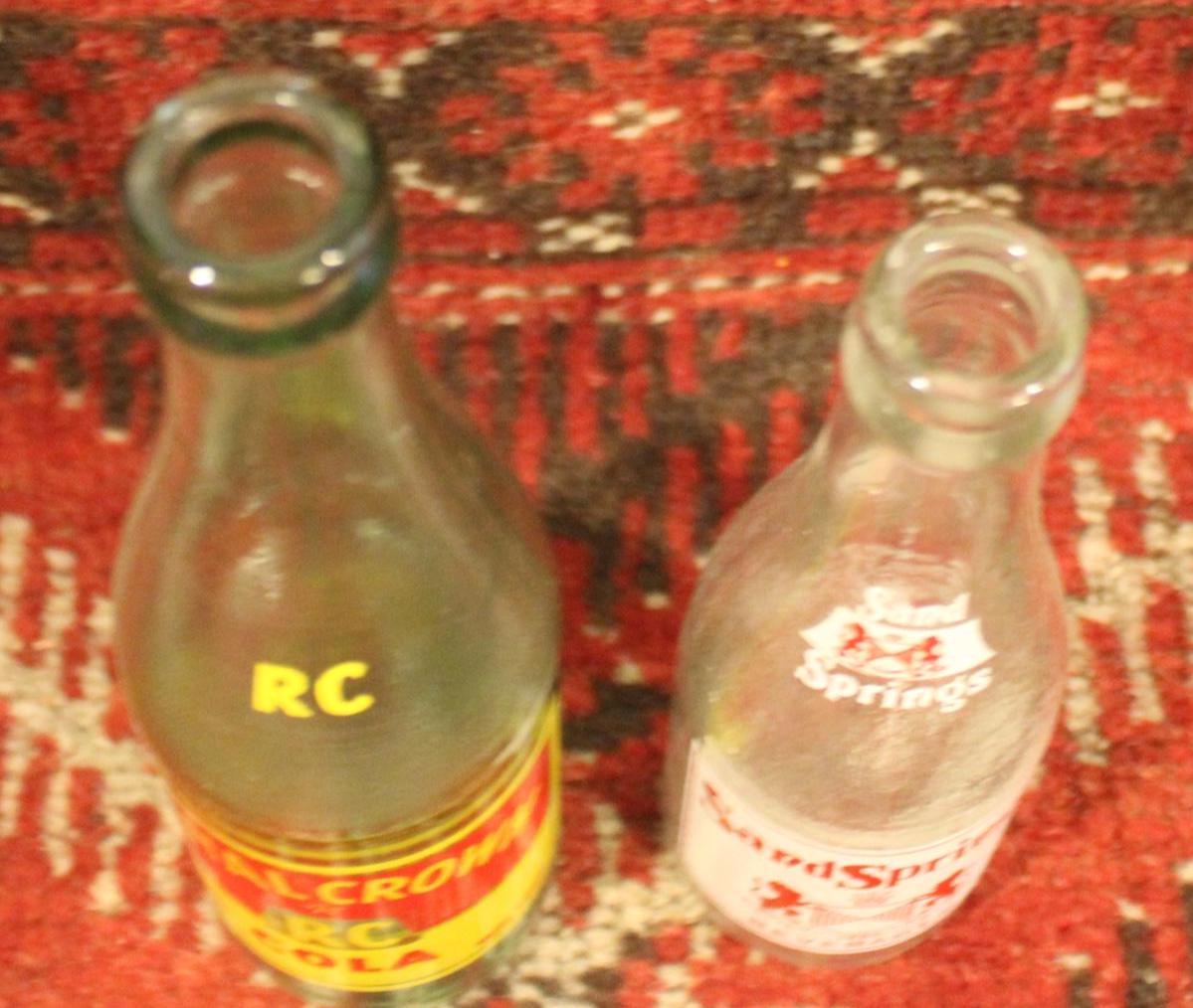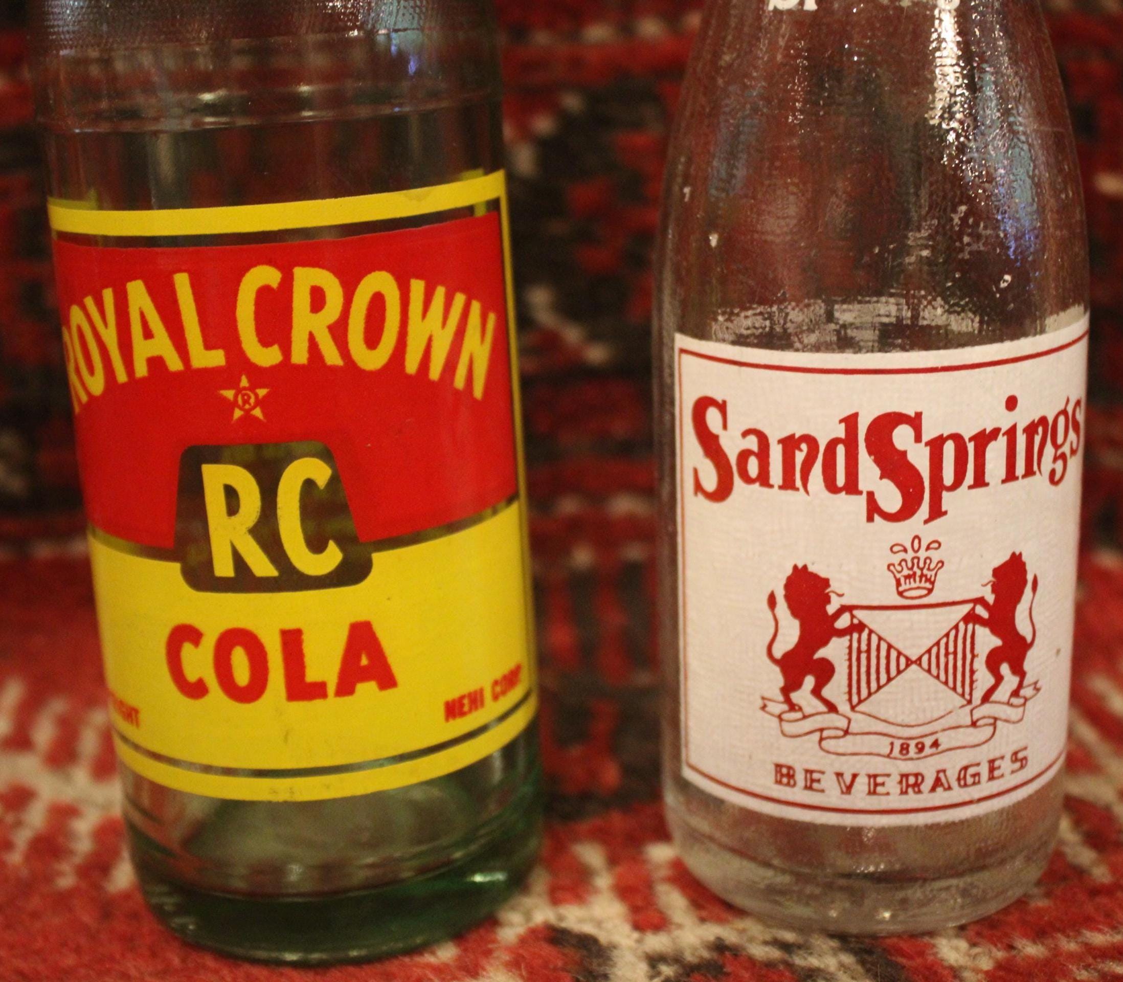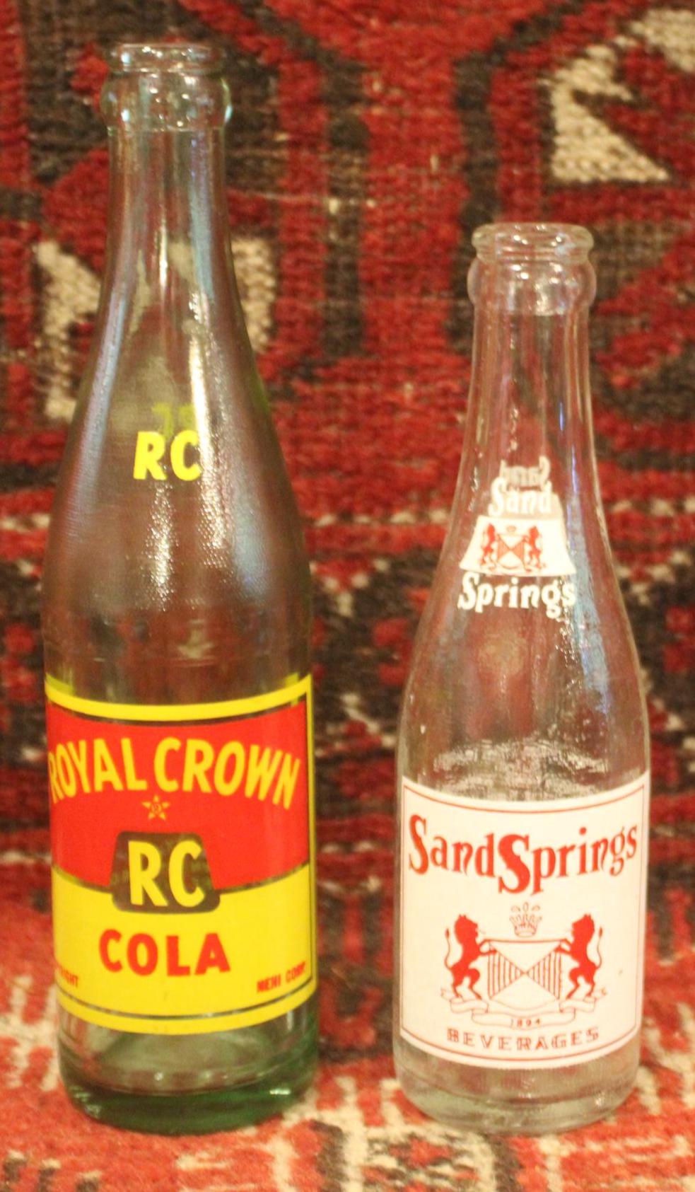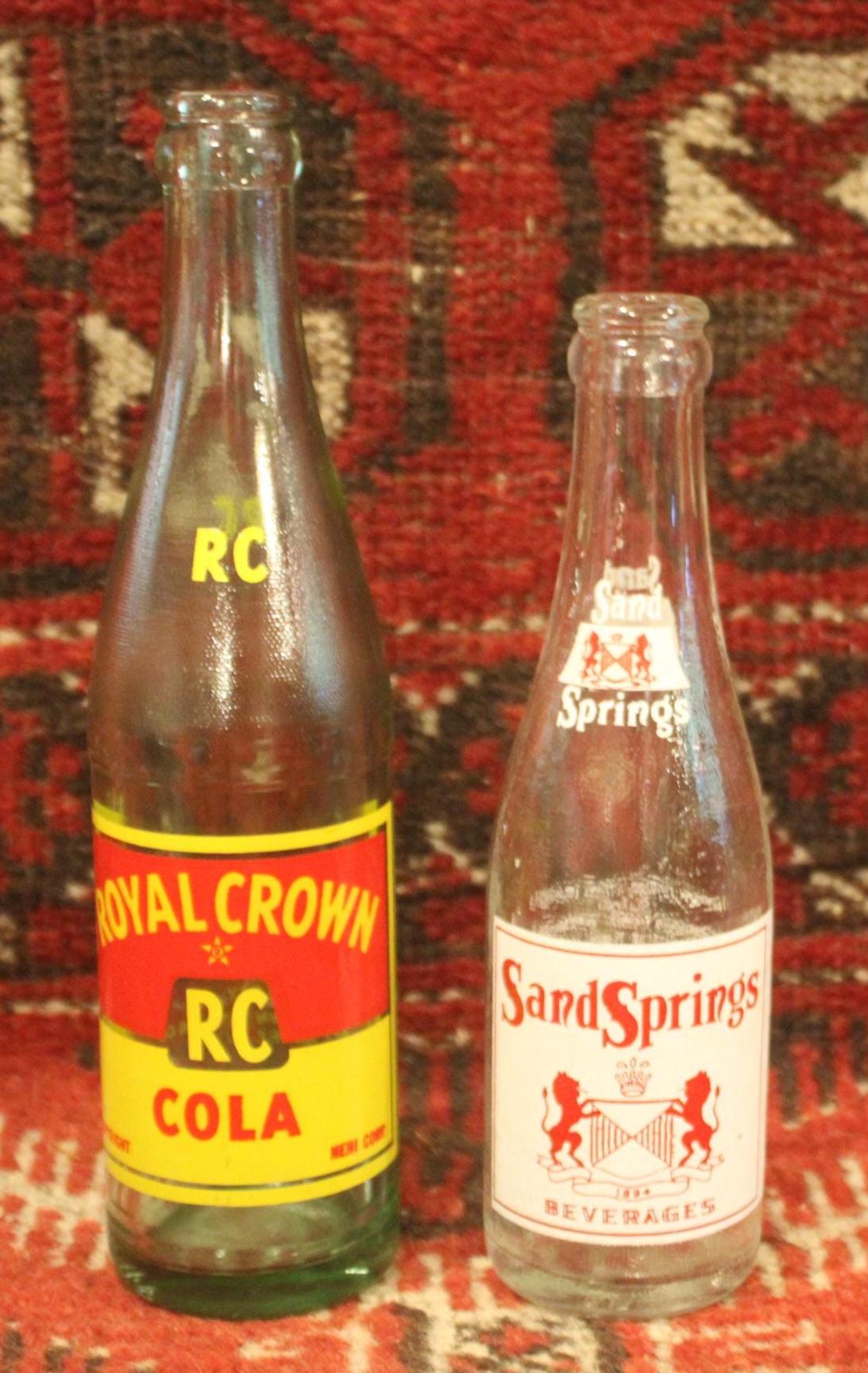 Vintage Soda Bottles: Sand Springs, Royal Crown Cola - Graphic Advertising