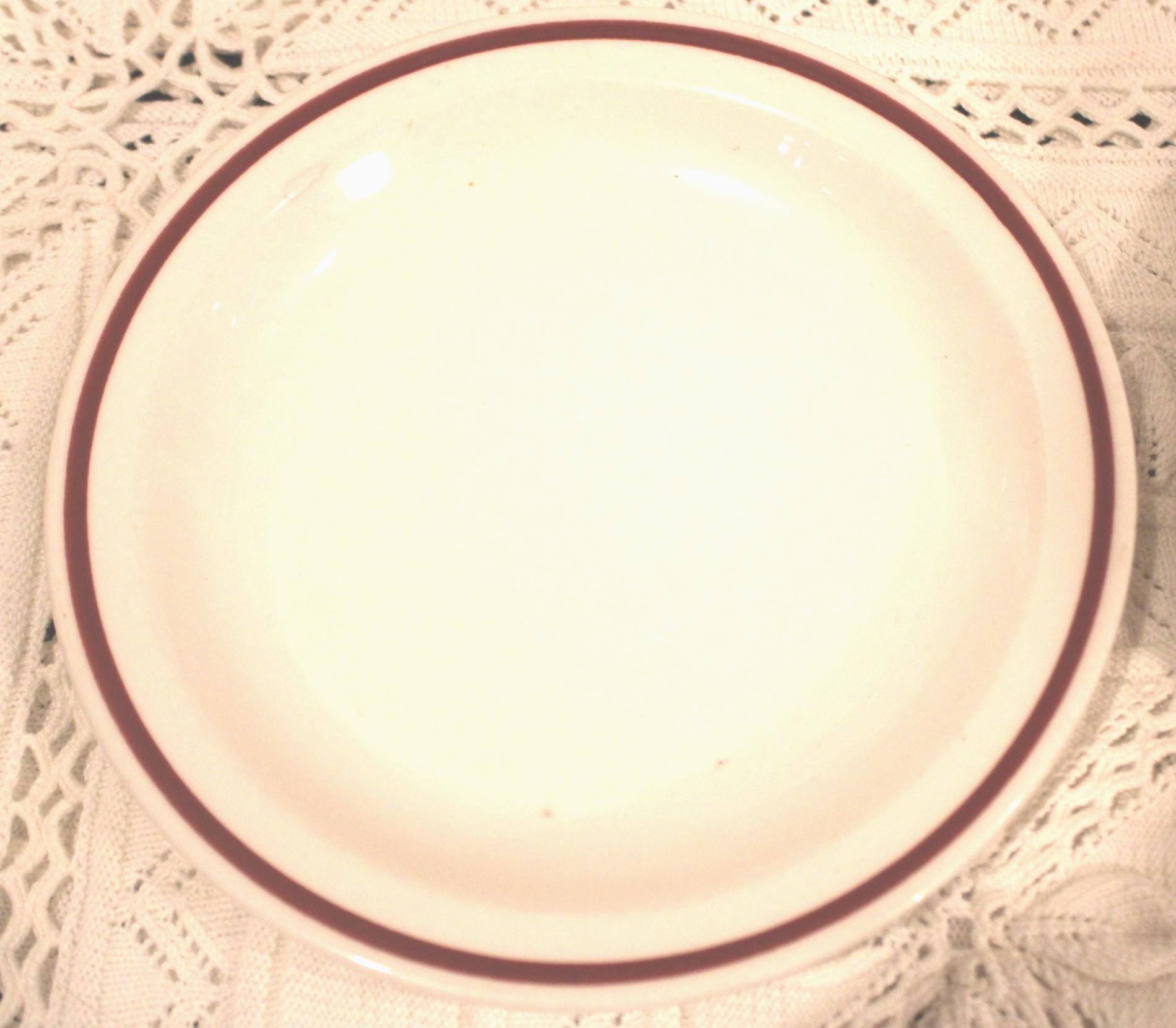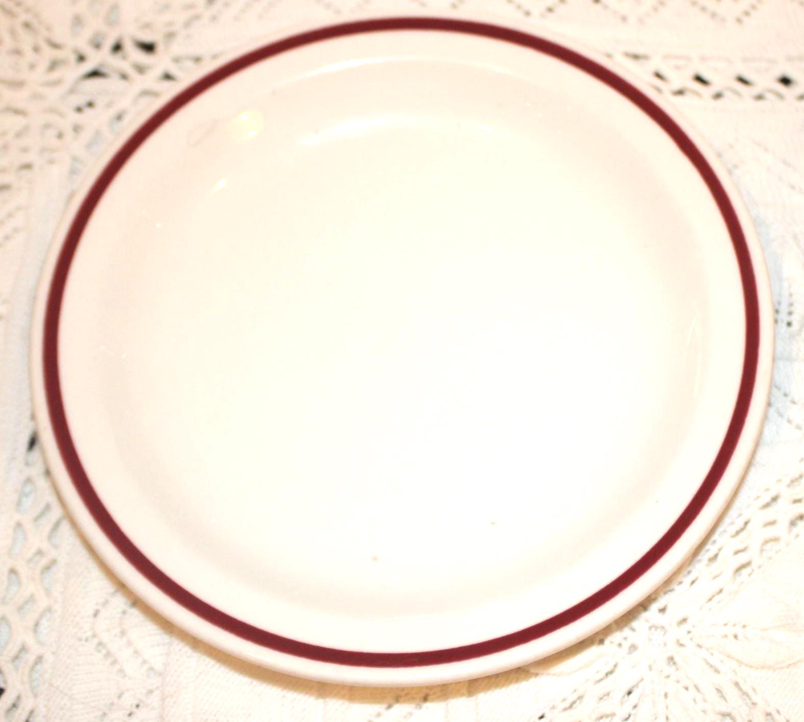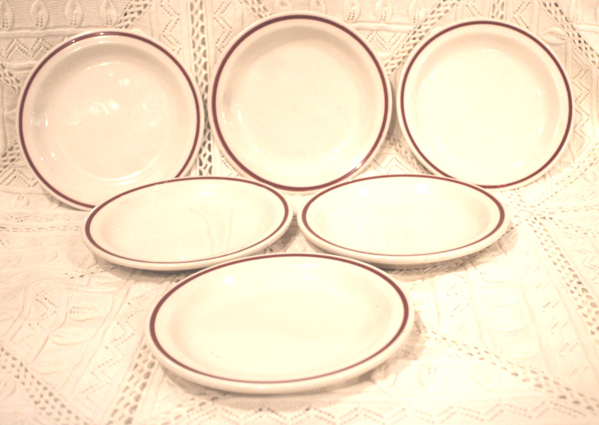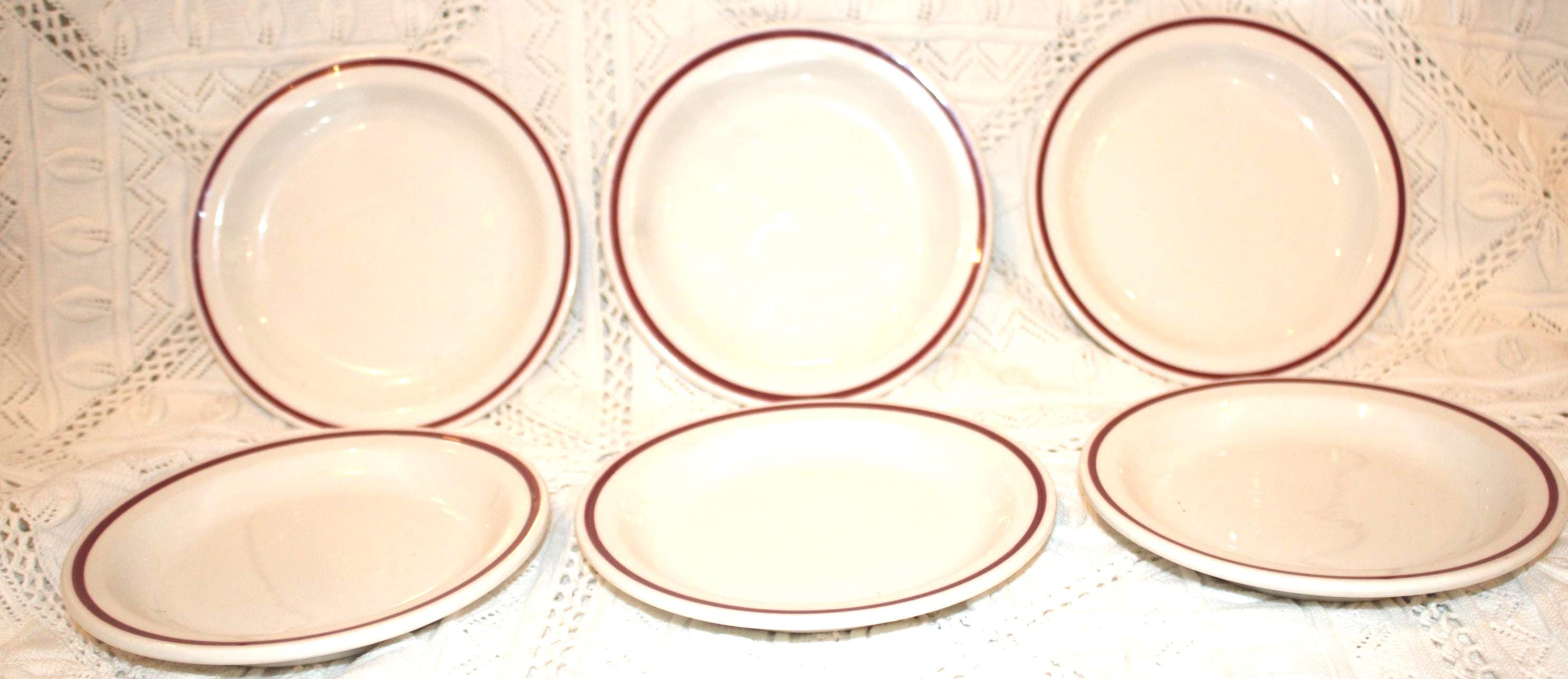 Set of Six Red Burgundy Striped Buffalo China Dessert/Bread Plates- made in USA- Diner/Restaurant/Hotel