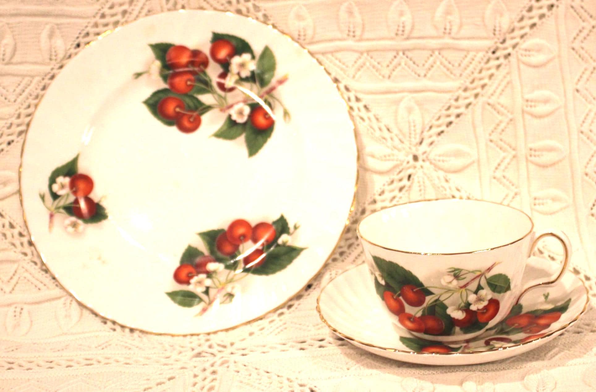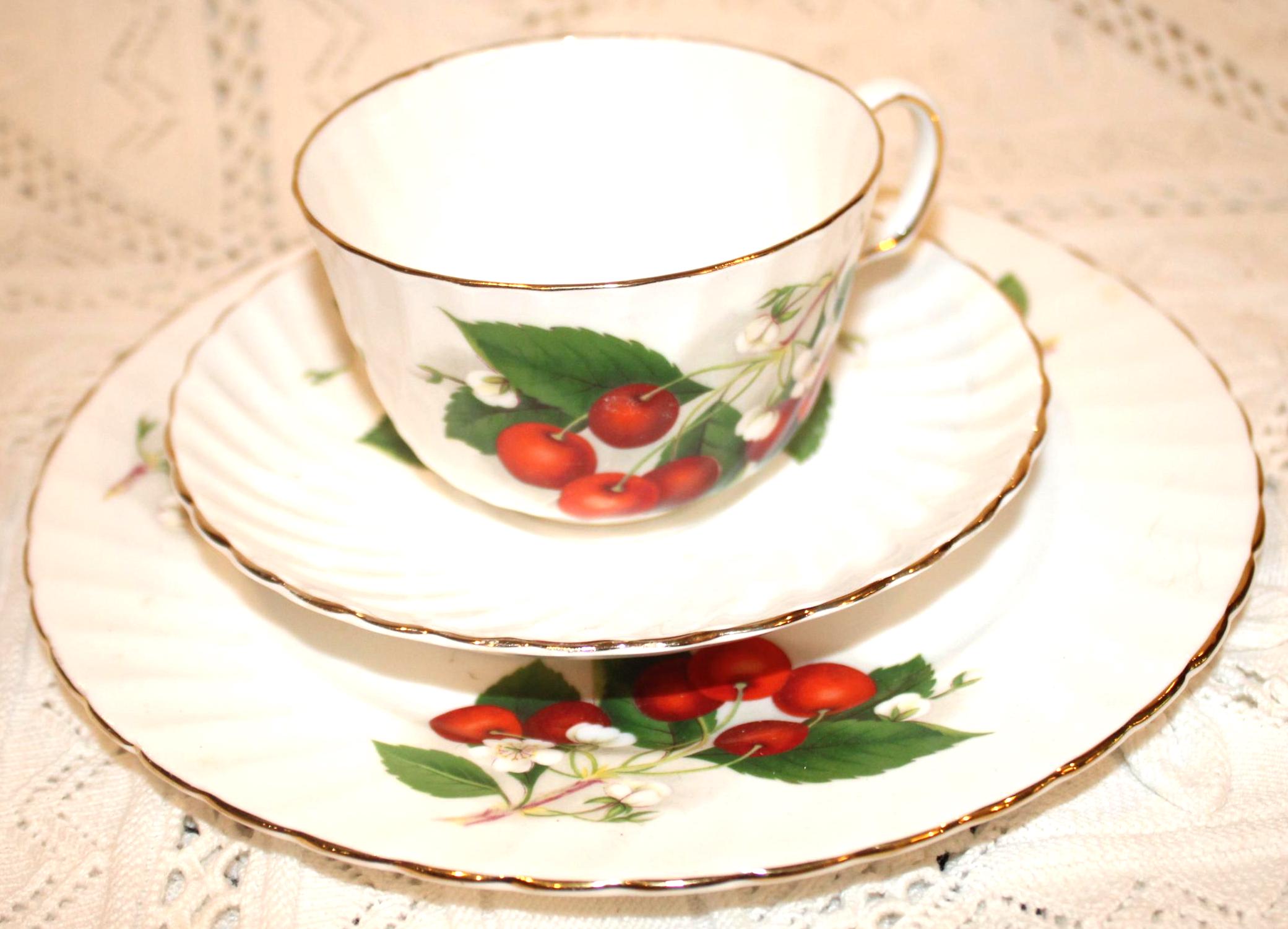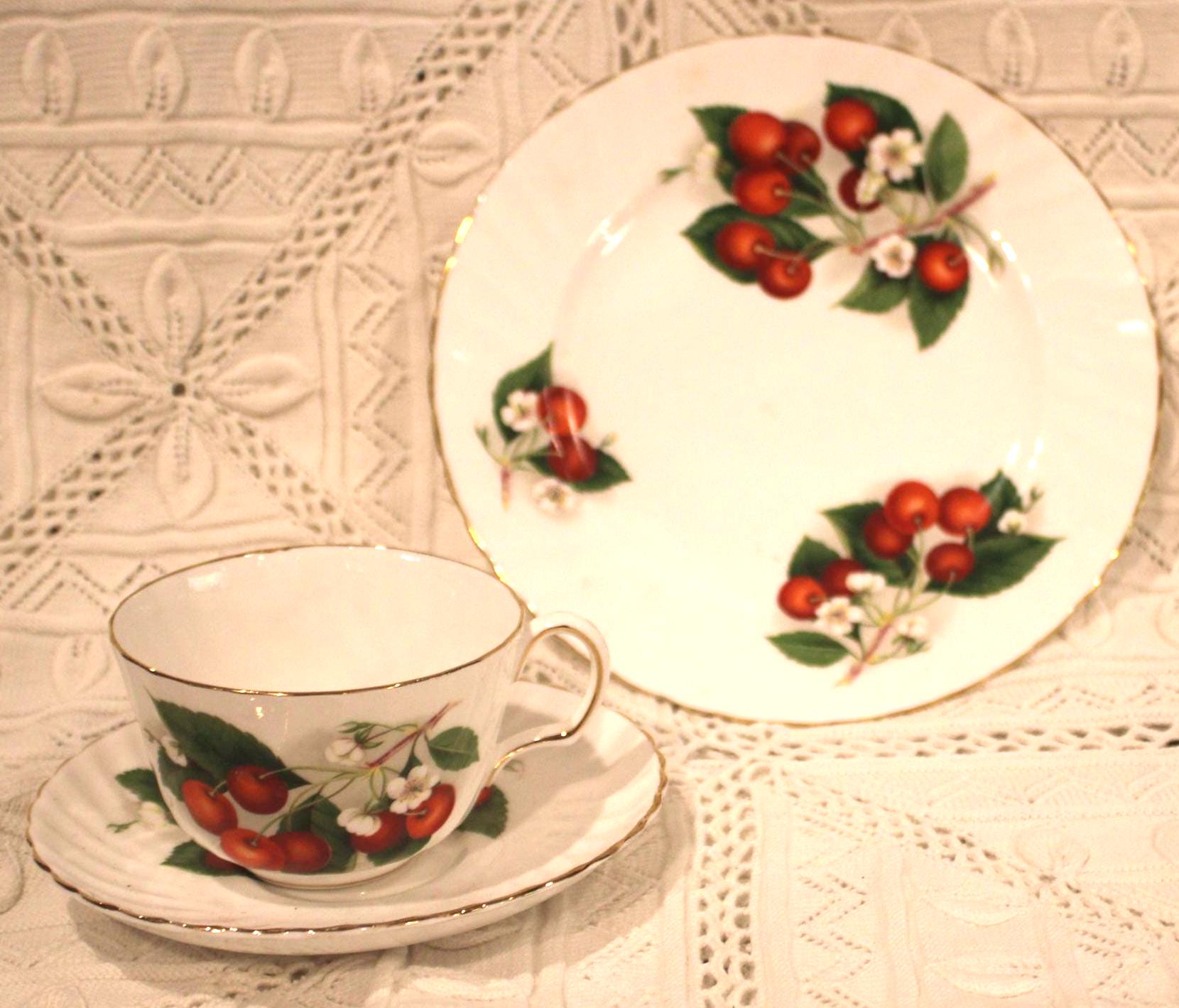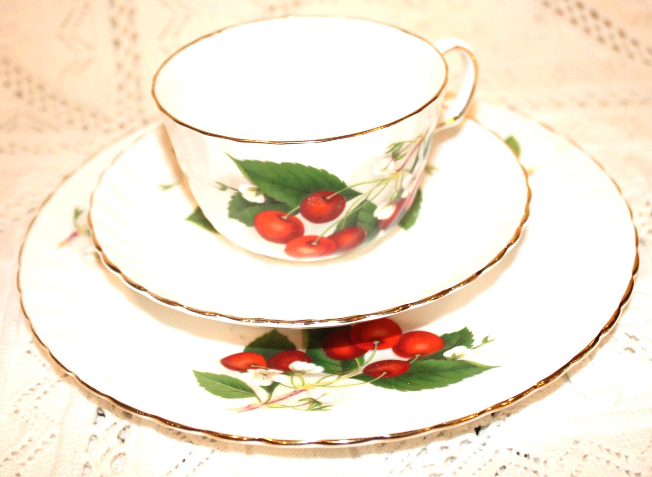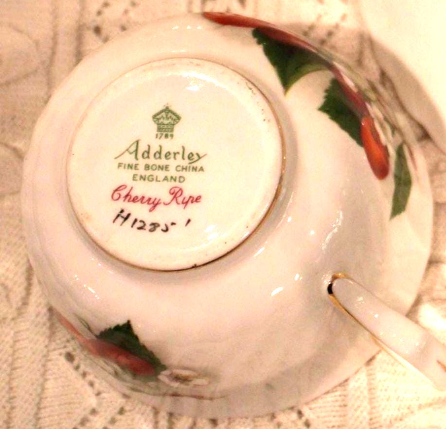 Gorgeous Vintage Adderley England Bone China Cherry Ripe Tea Cup and Saucer- England/Fine Bone China/Staffordshire