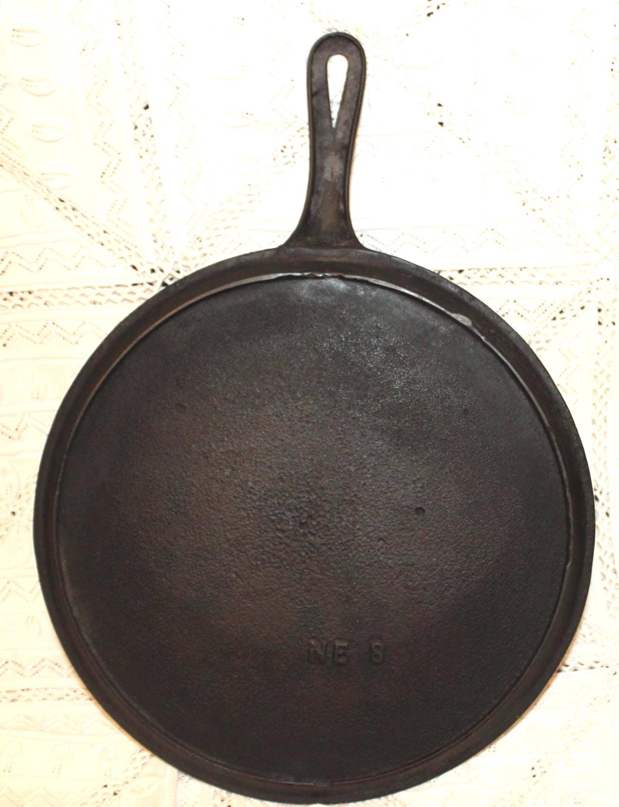 Antique Flat Cast Iron Skillet/Griddle Marked NE 8- Pre Griswold?/Pancakes & Bacon/Seasoned and ready to use!