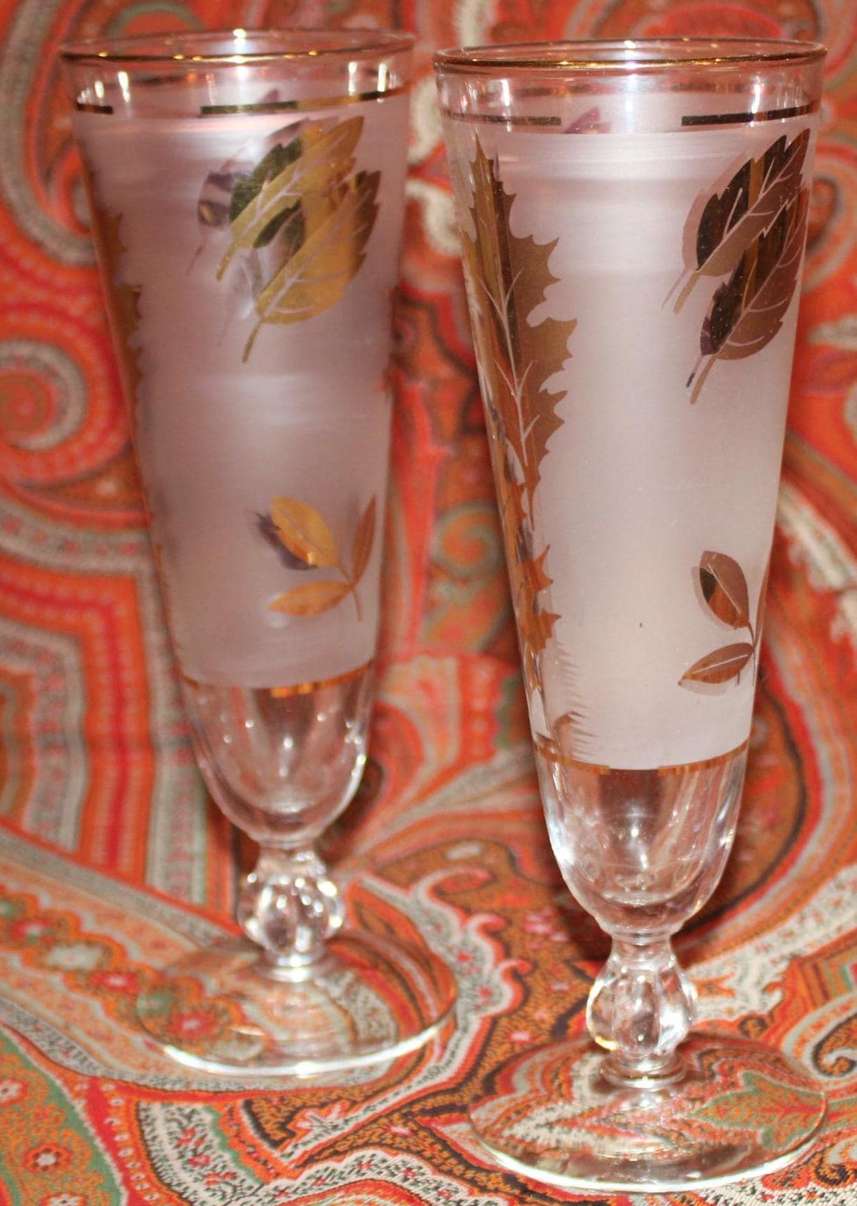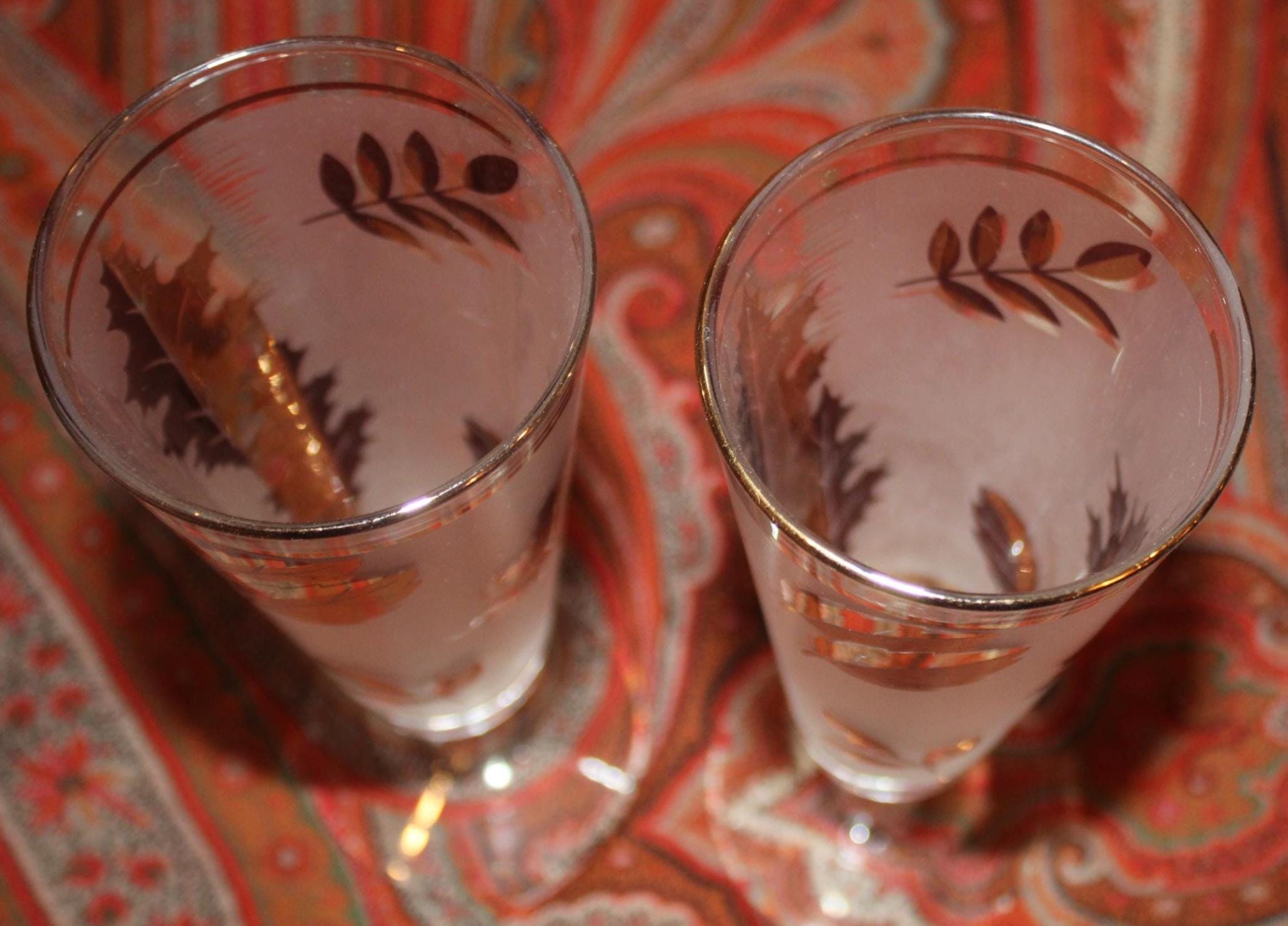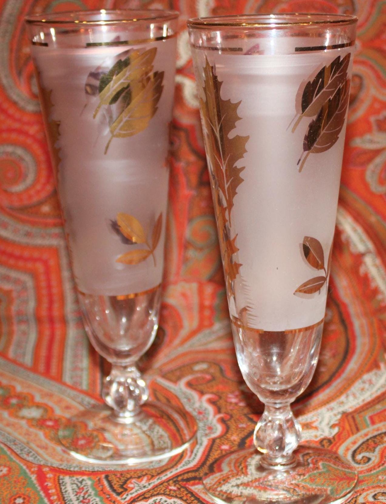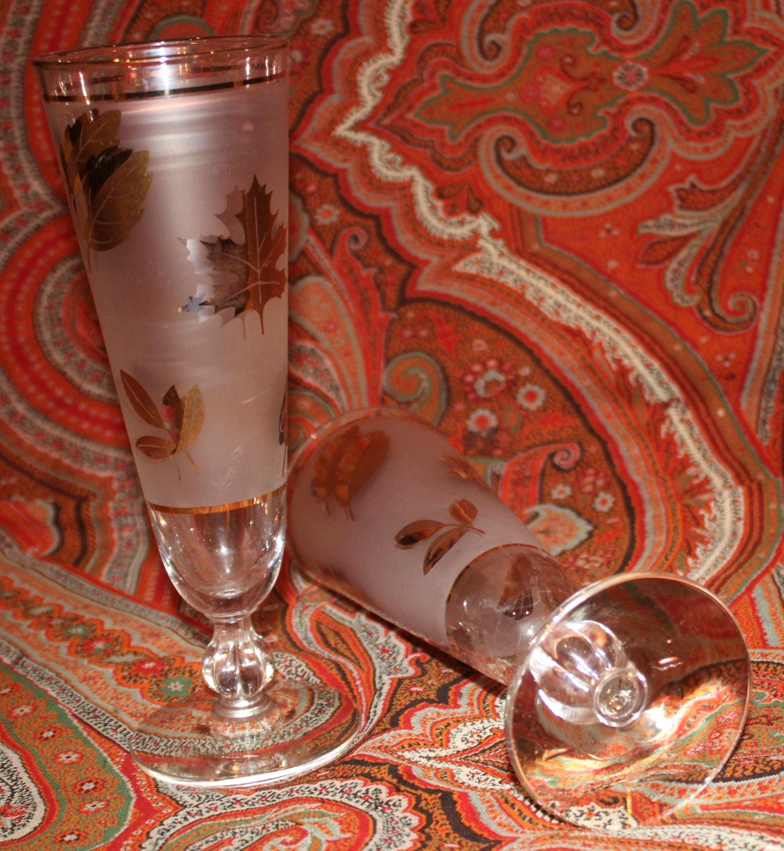 Great Vintage Set of 2 Mid Century Gold Leaf Libbey Pilsner/Beer Glasses