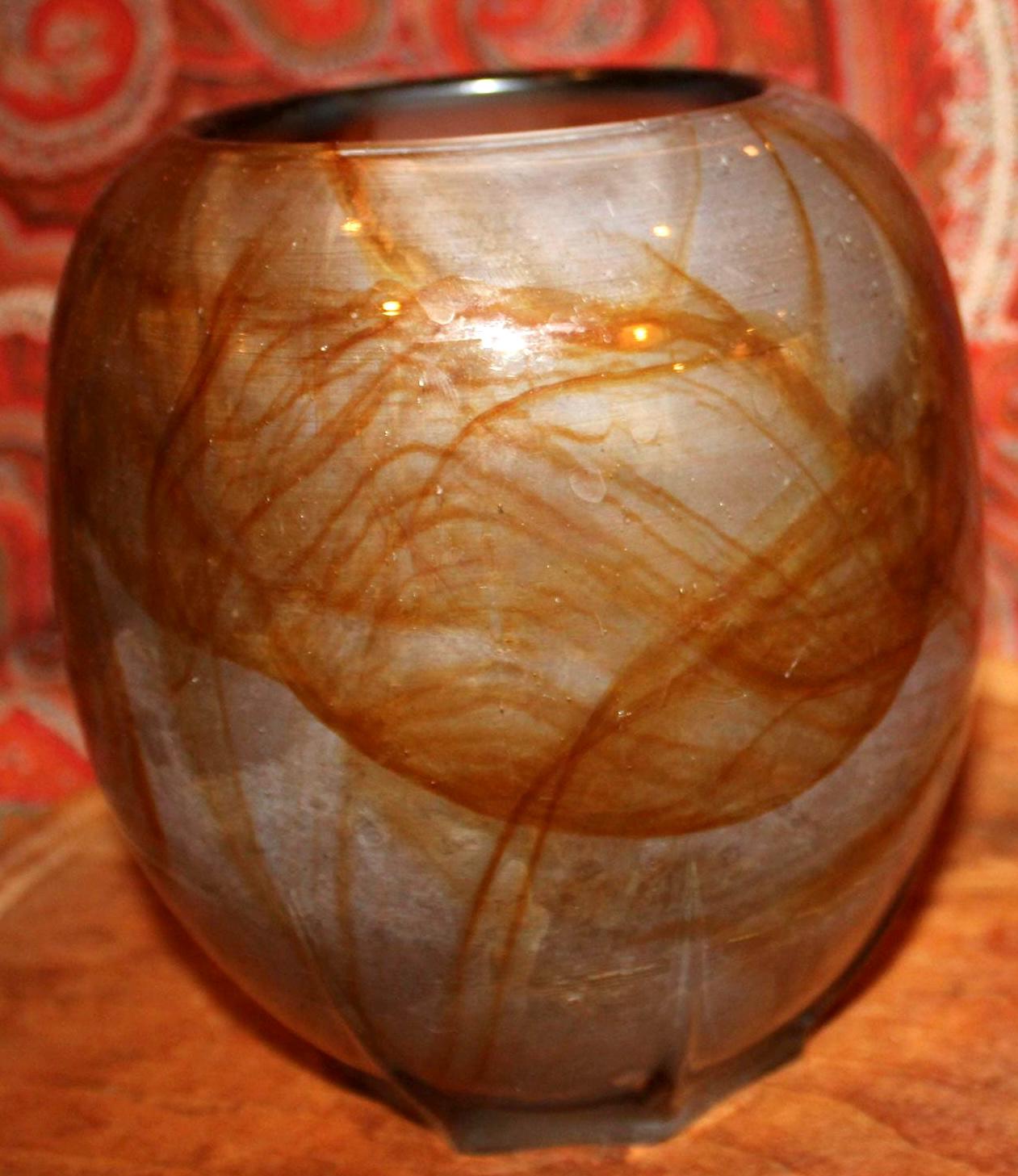 Wonderful Midcentury Modern Unsigned Swirled Butterscotch Art Glass Vase