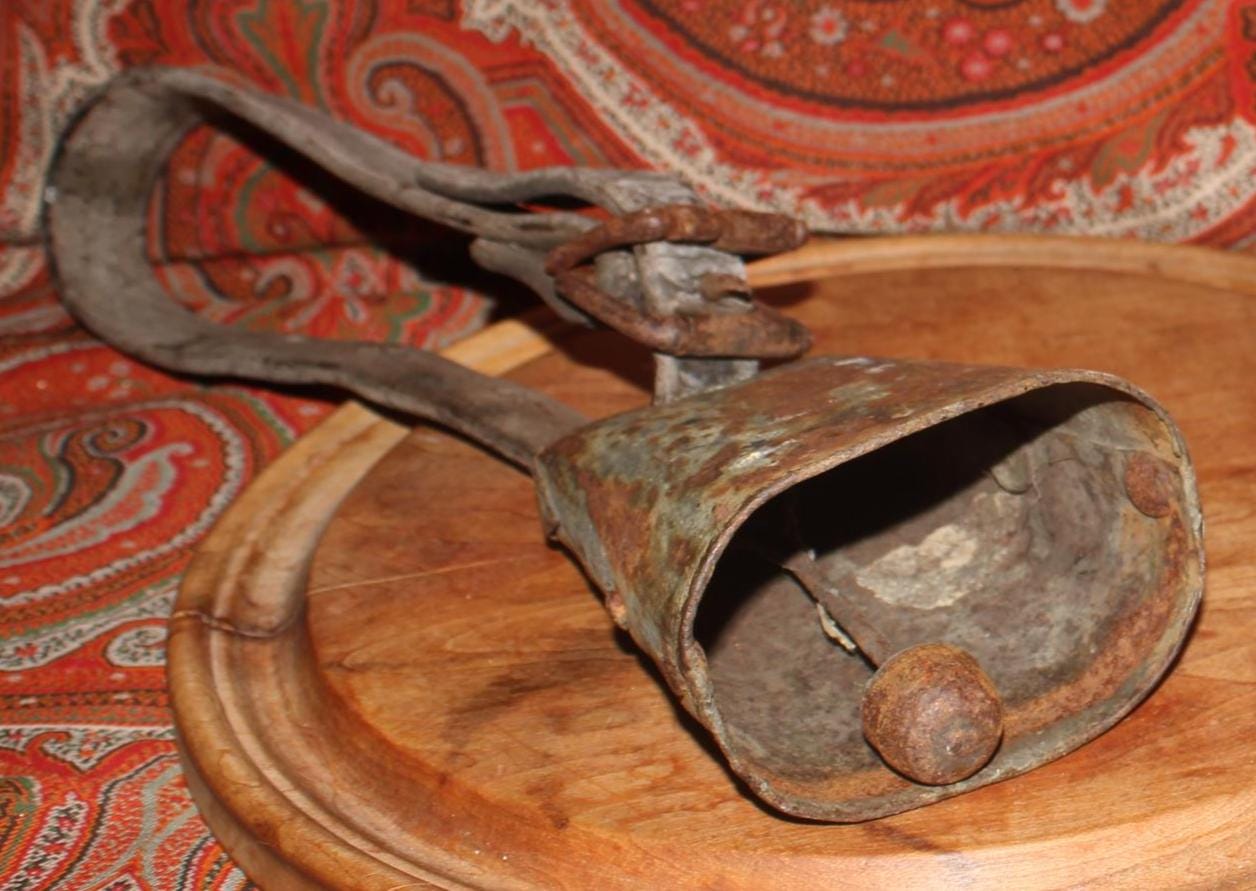 Old Iron Goat/Cow Bell with Original Leather Collar- Farmhouse/Primitive/Country