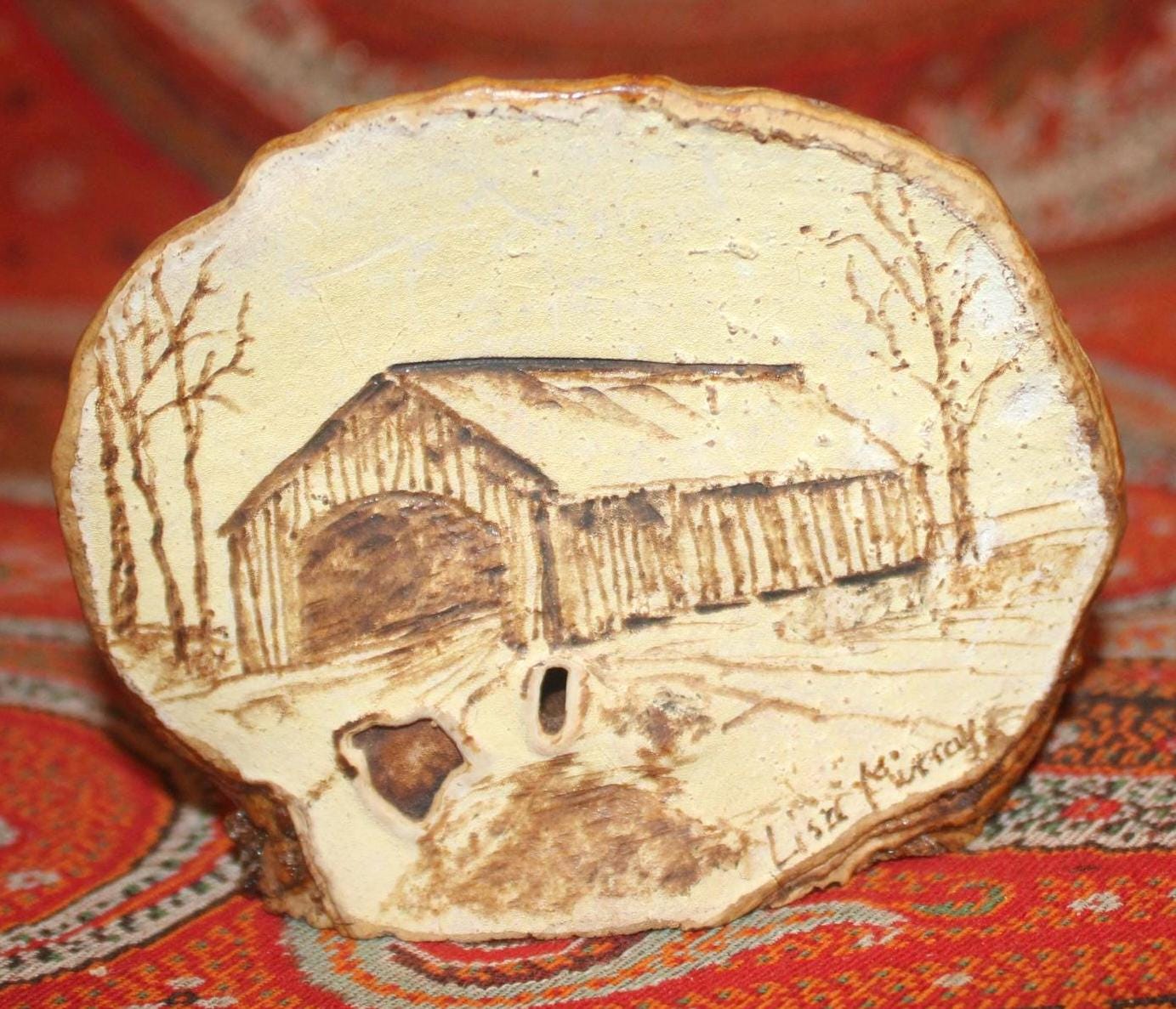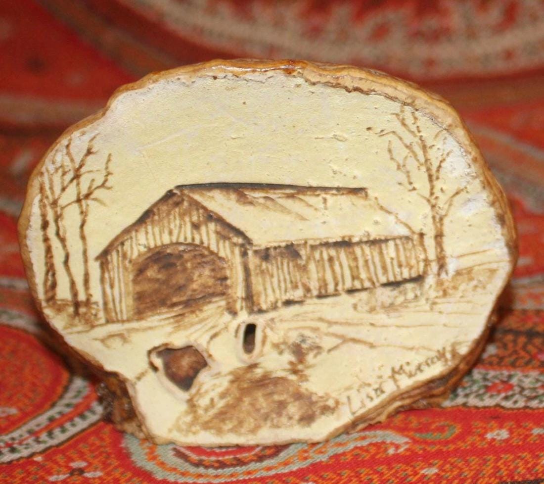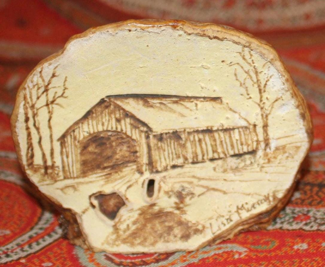 This Vintage Tree Fungus Mushroom Art of a Vermont Covered Bridge would be a great gift for the naturalist in your life. It is signed by artist Lisa Murray and measures 3" tall x 3.5" wide- the perfect size to stick in a holiday stocking! Discovered in the Northeast Kingdom of Vermont- it is in wonderful condition. Please message us if you have any questions- Thanks for looking!
