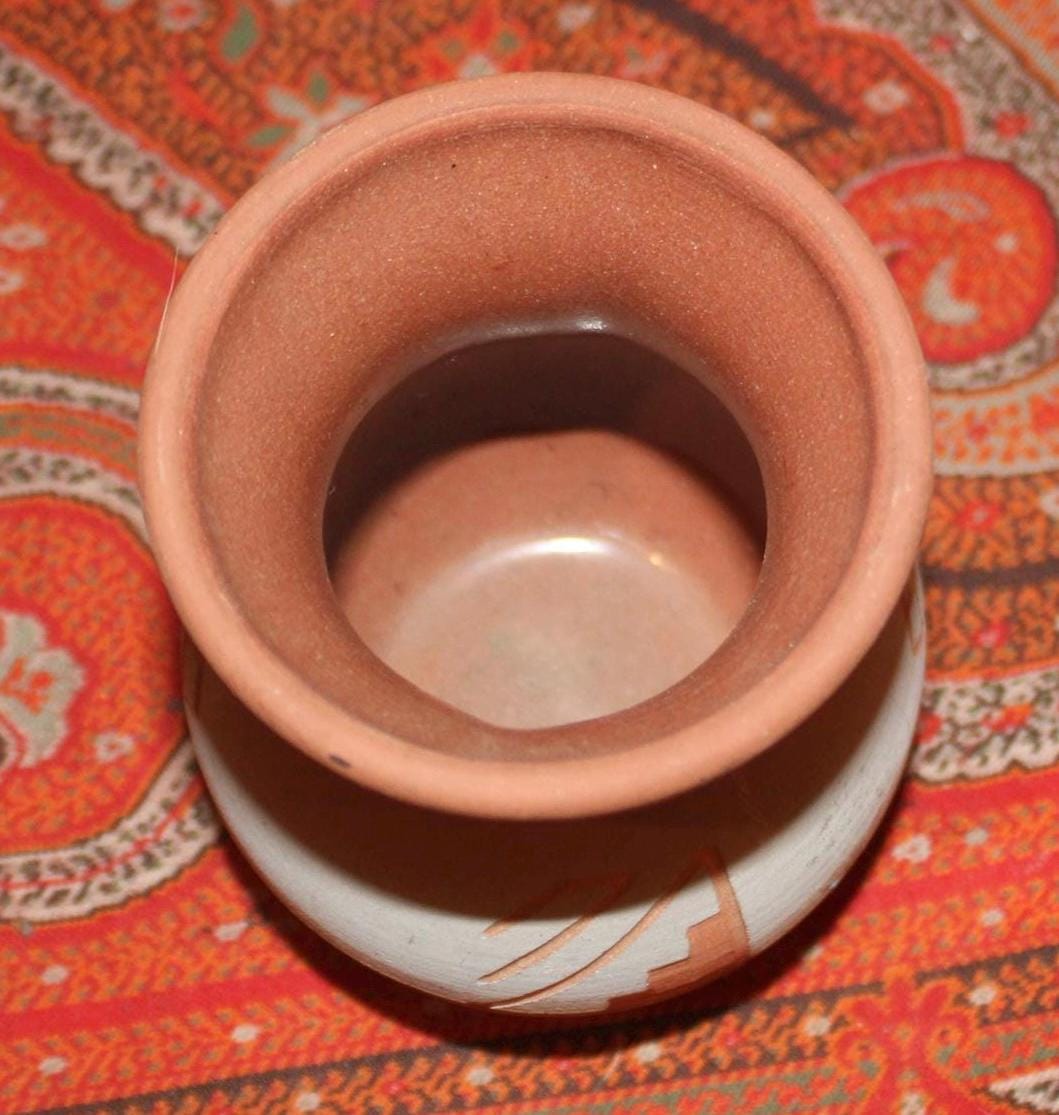 This Very Nice Sioux Pottery Matte finish Vase is available to you! It is in excellent condition with no chips or cracks. It is 3.75" tall x 2.75" in diameter at the widest point; it has beautiful soft pink coral and cream coloration. It is signed by the artist. Please message us if you have any questions- Thanks for looking!