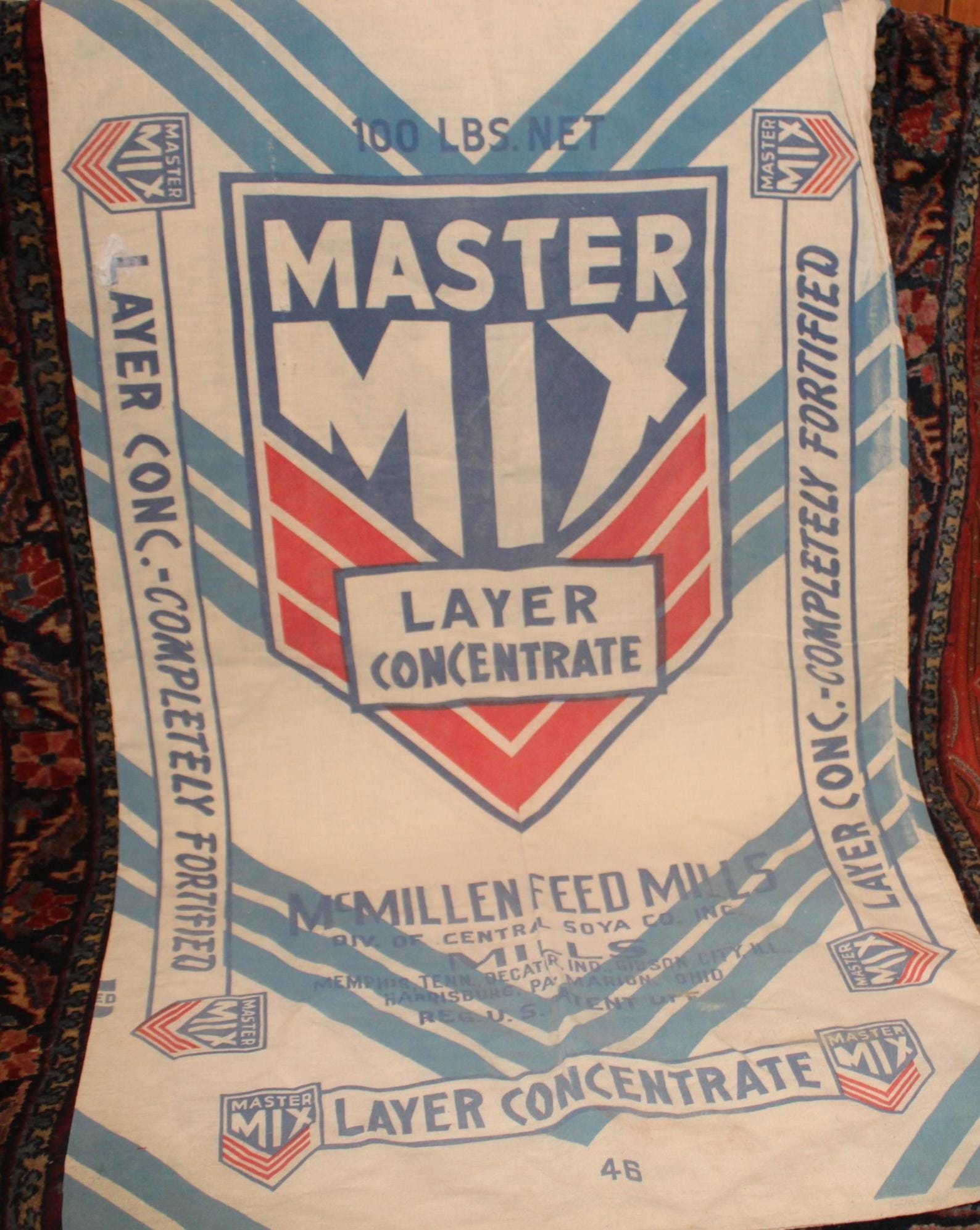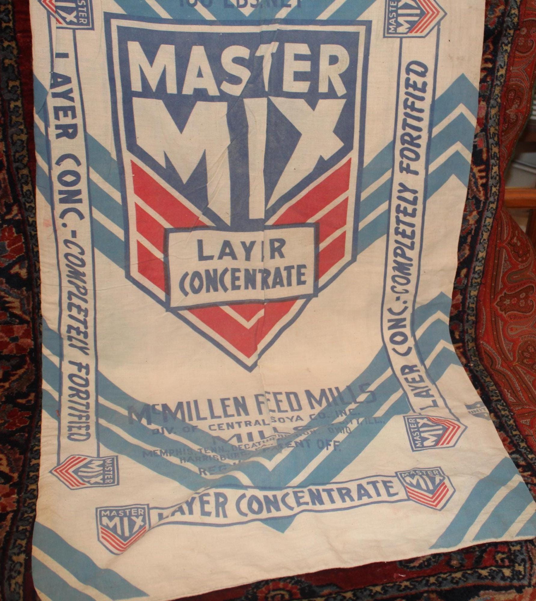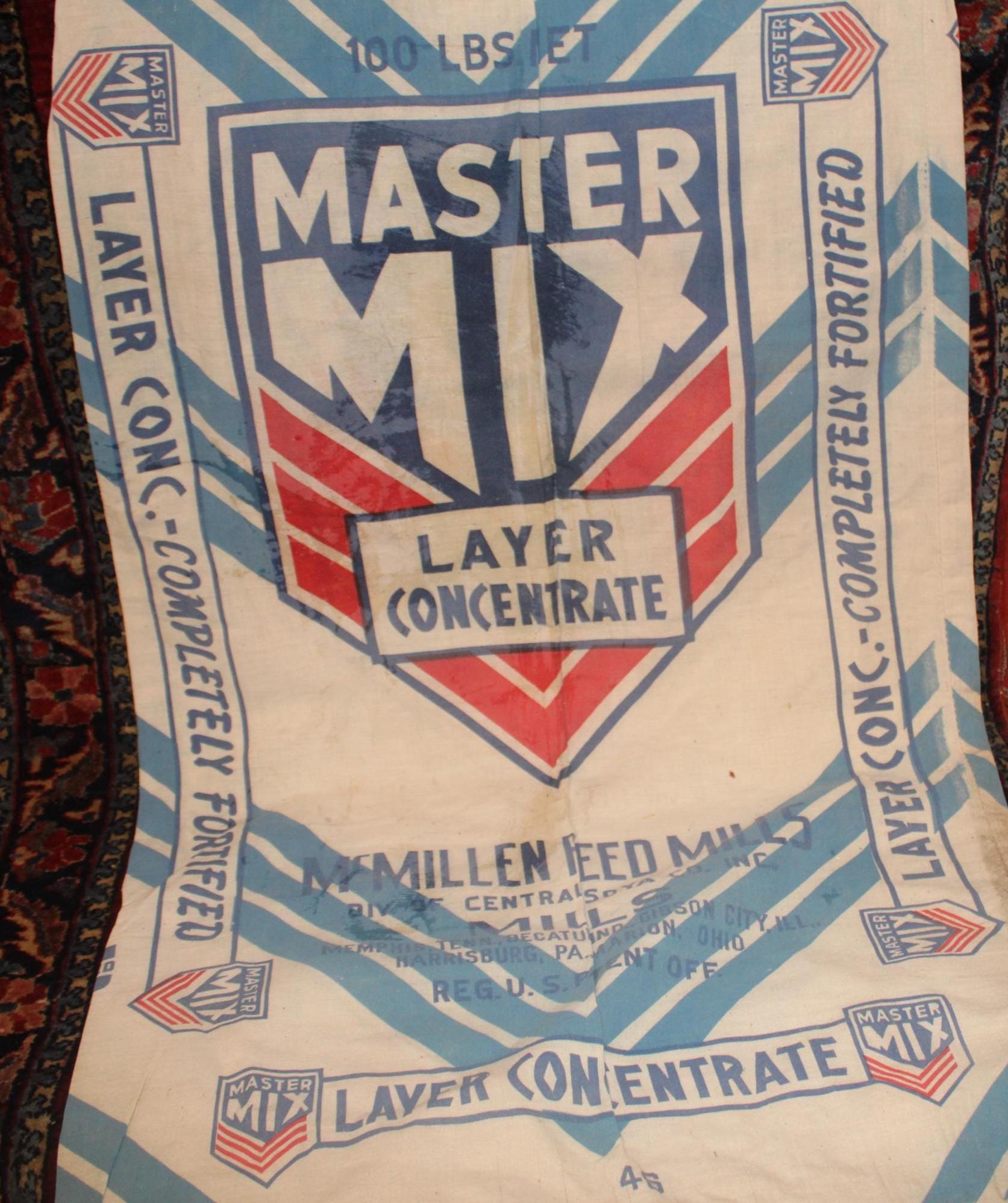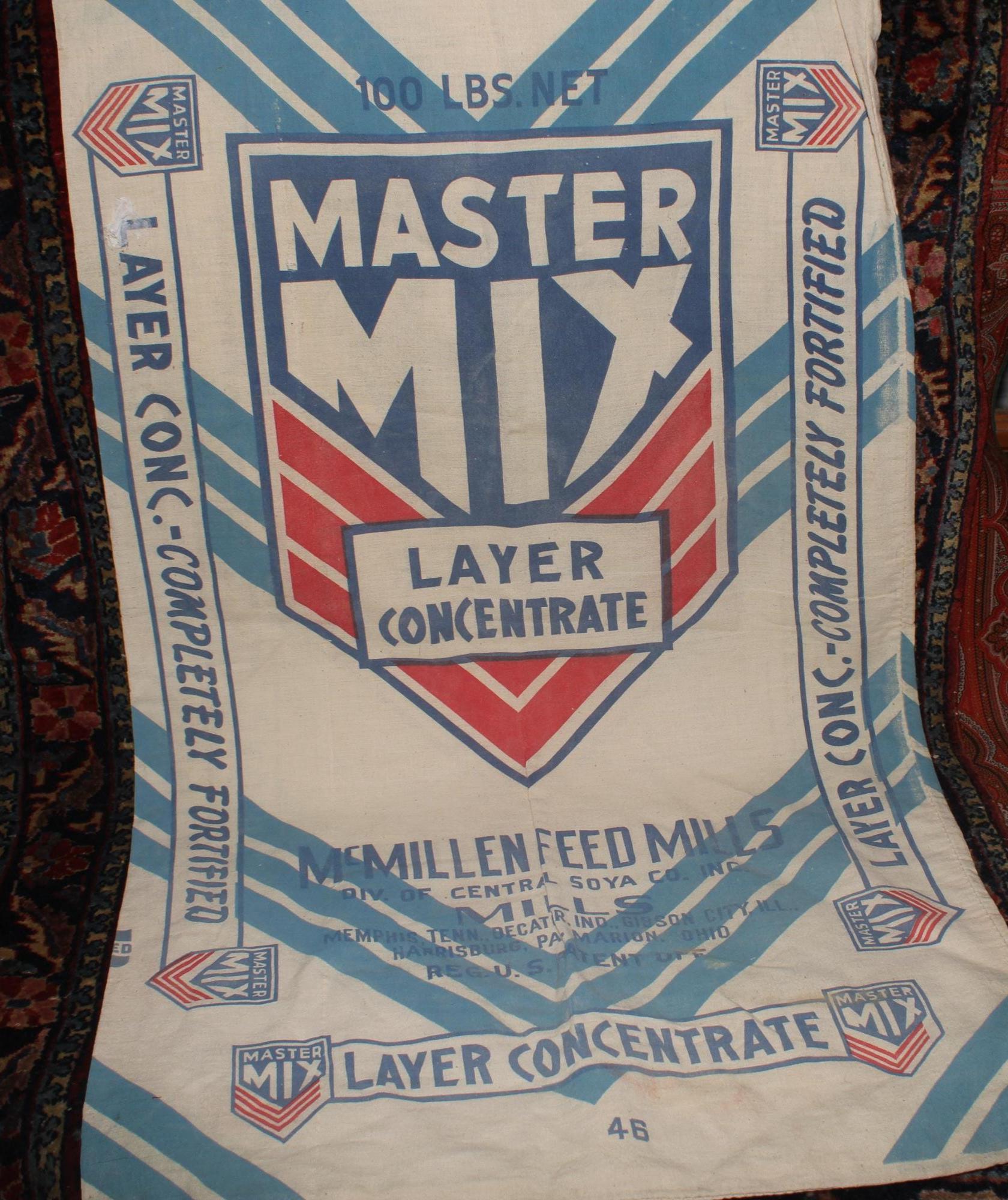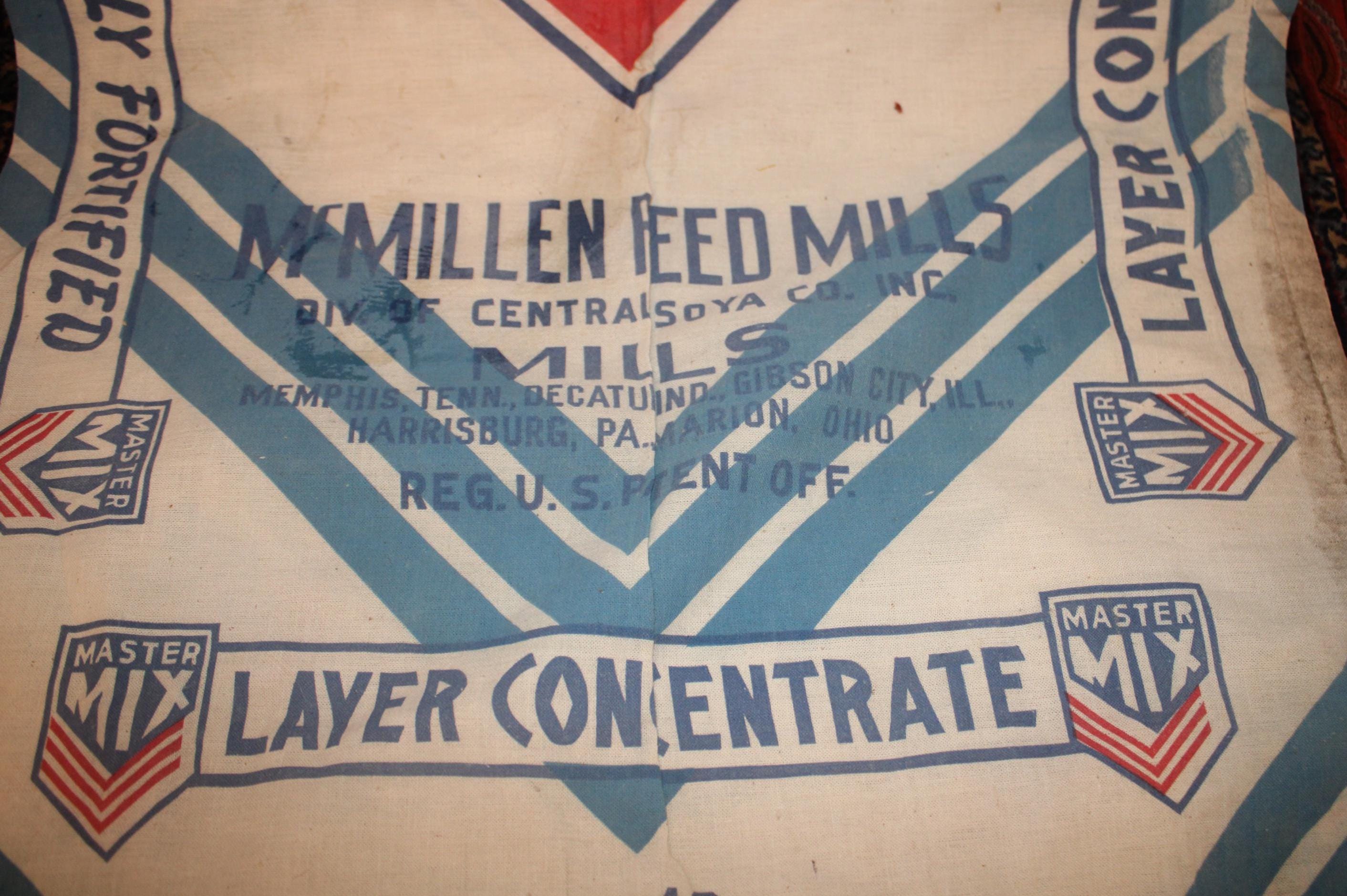 If you opt to use them as wall art- The bag advertises McMillen Feed Mills which had mills in Memphis, Tennessee; Decour, Indiana; Gibson City, Illinois; Marion, Ohio; and Harrisburg, Pennsylvania.