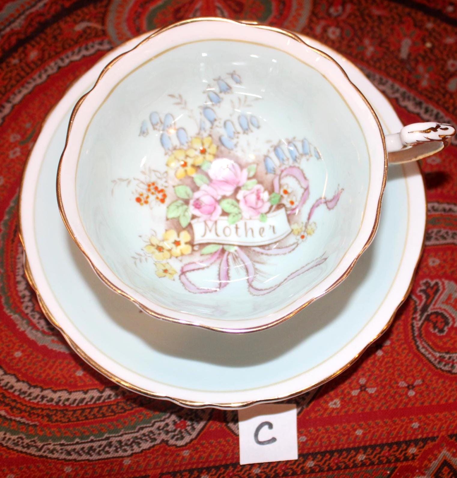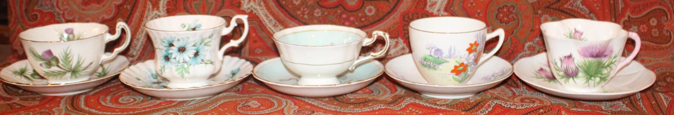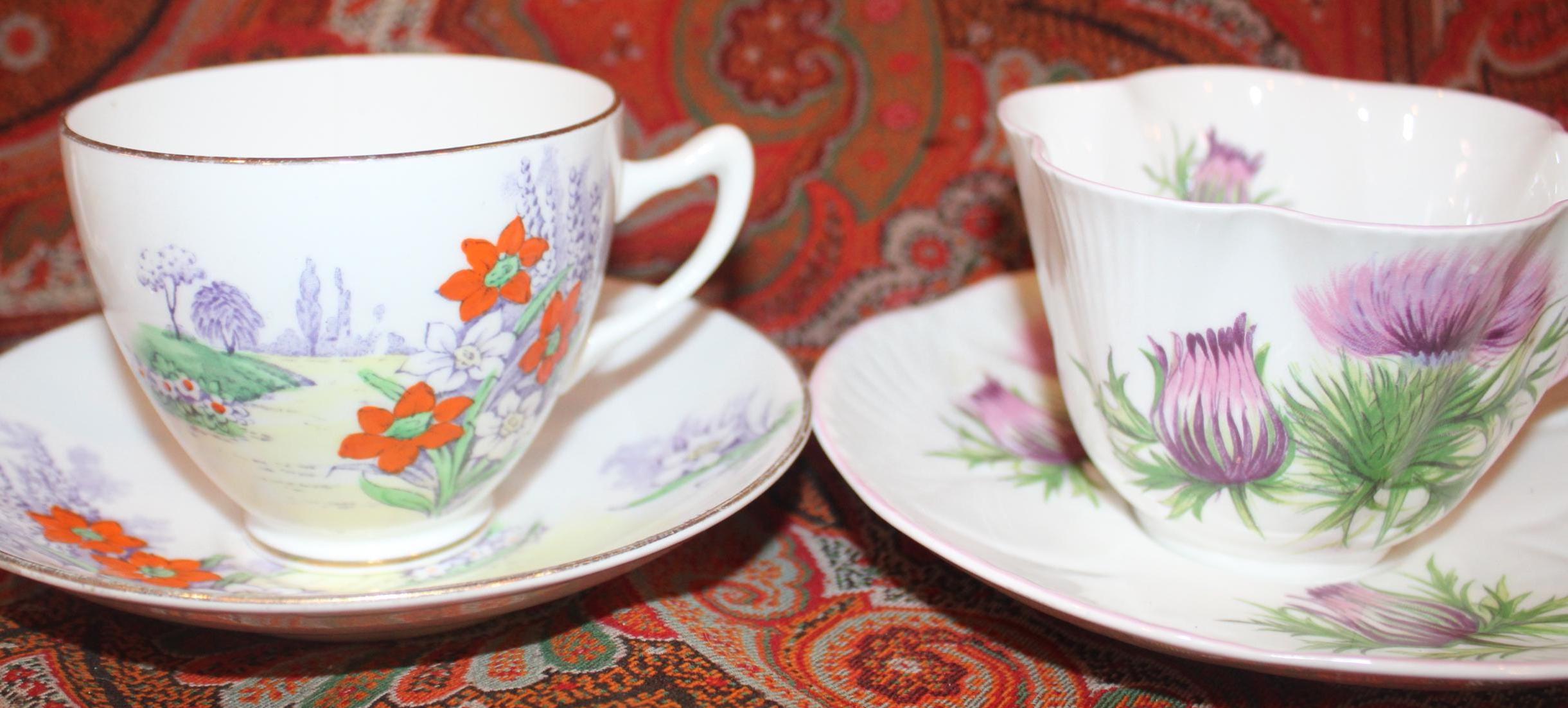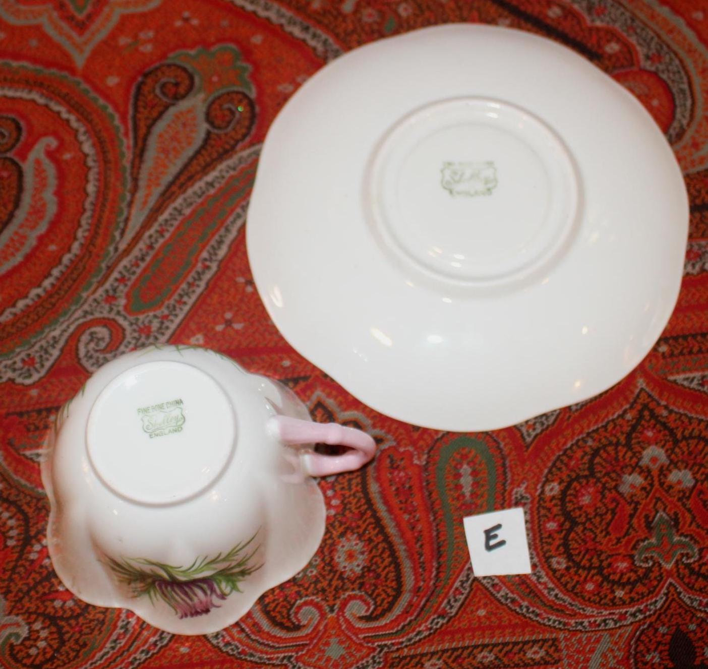 Teacups: Adderley"Thistle", Royal Albert"Marquerite",Paragon Powder Blue"Mother", Royal Vale, or Shelley "Thistle"-Bone China/England