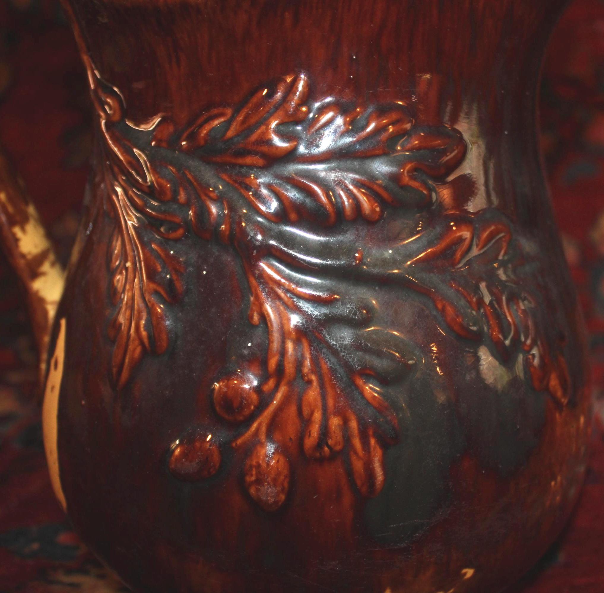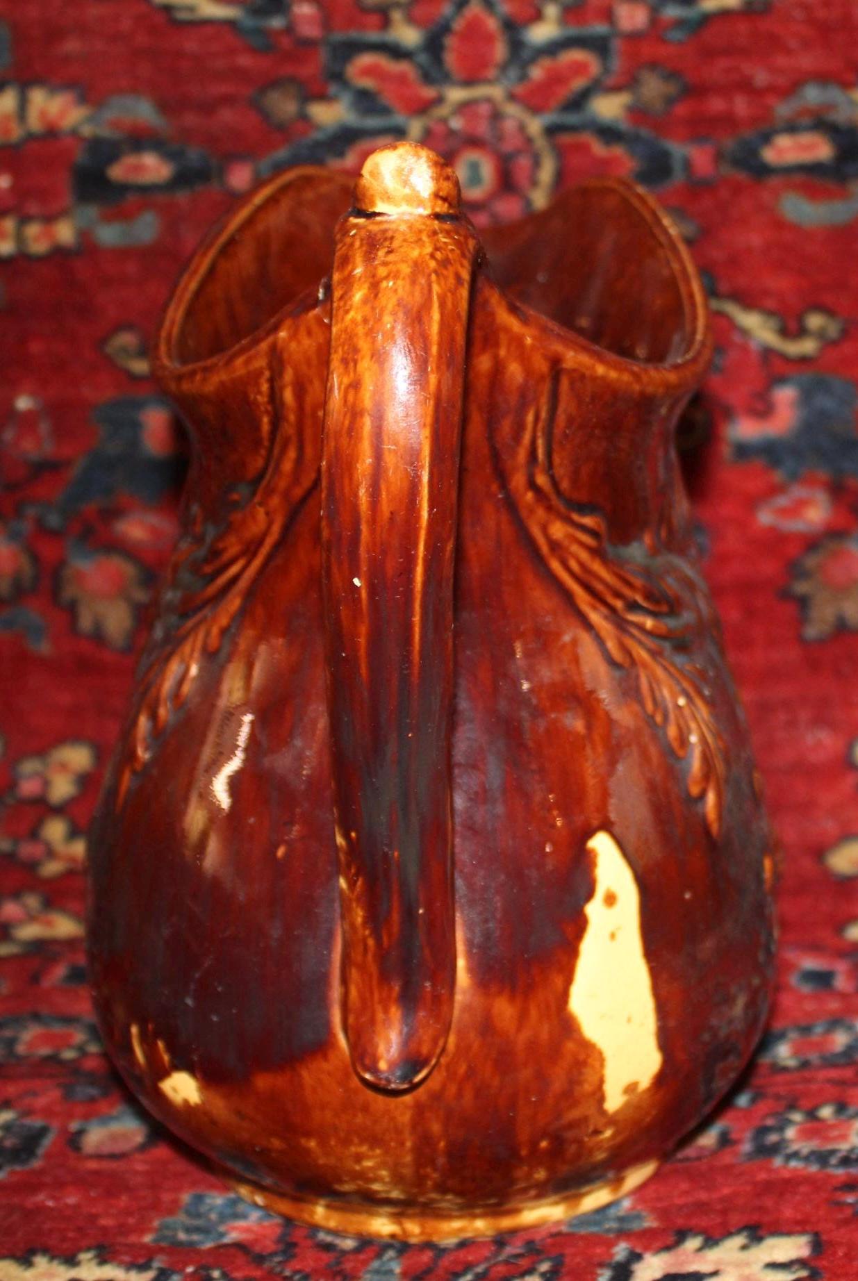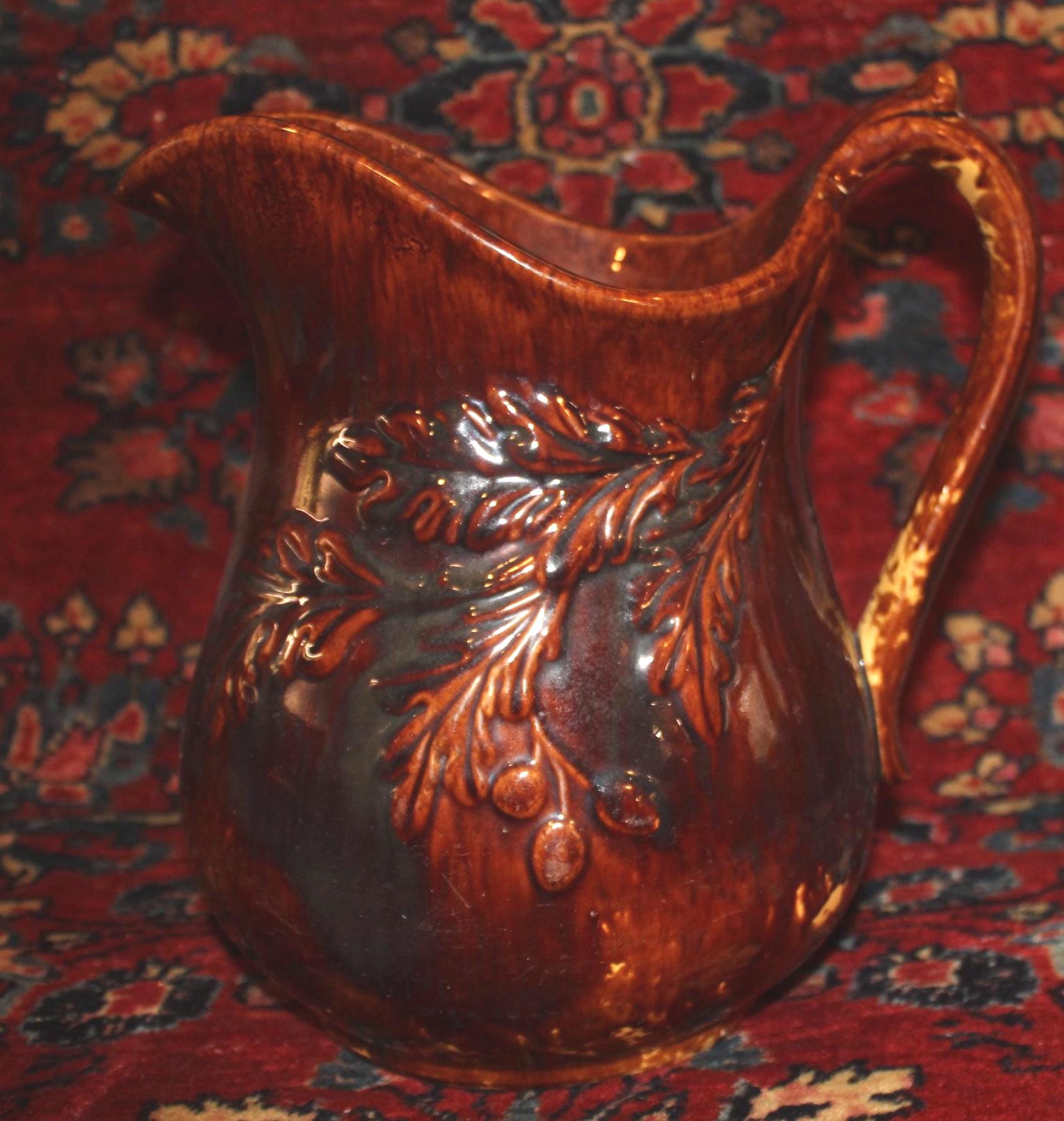 Gorgeous 19th Century Rockingham Acorn Tree Pitcher- Country/Farmhouse