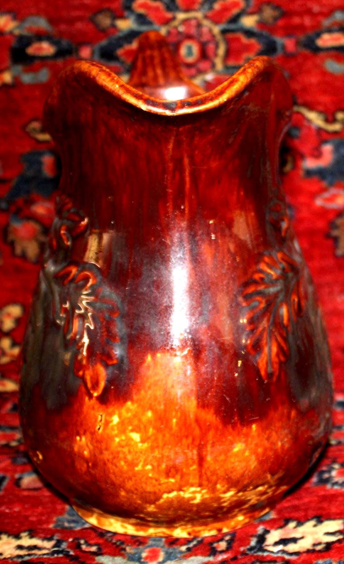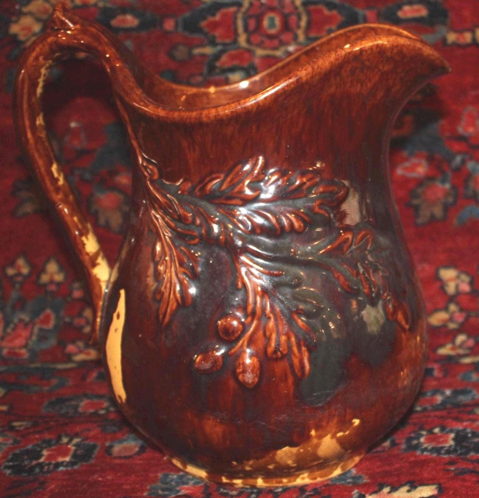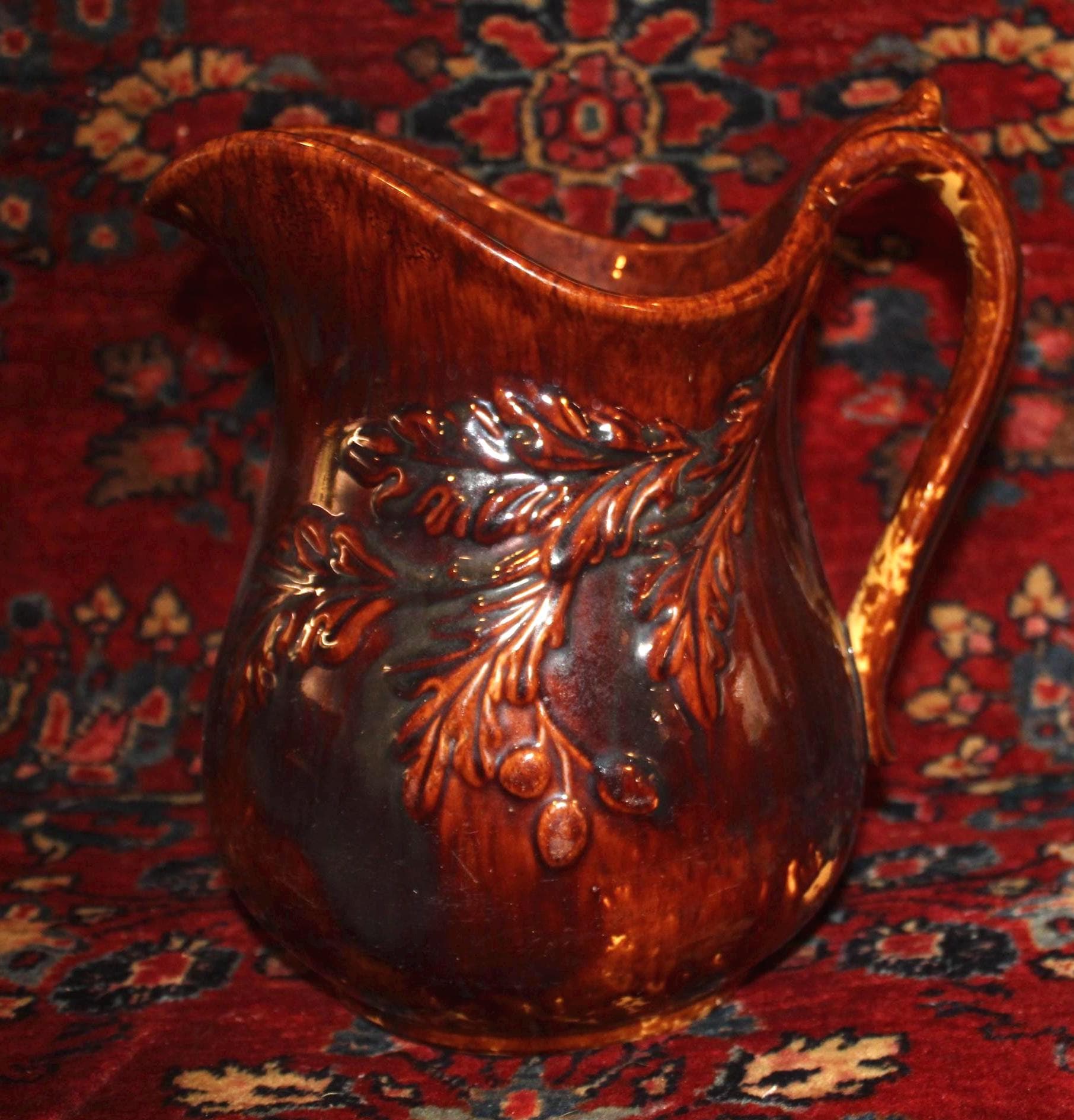 Gorgeous 19th Century Rockingham Acorn Tree Pitcher- Country/Farmhouse