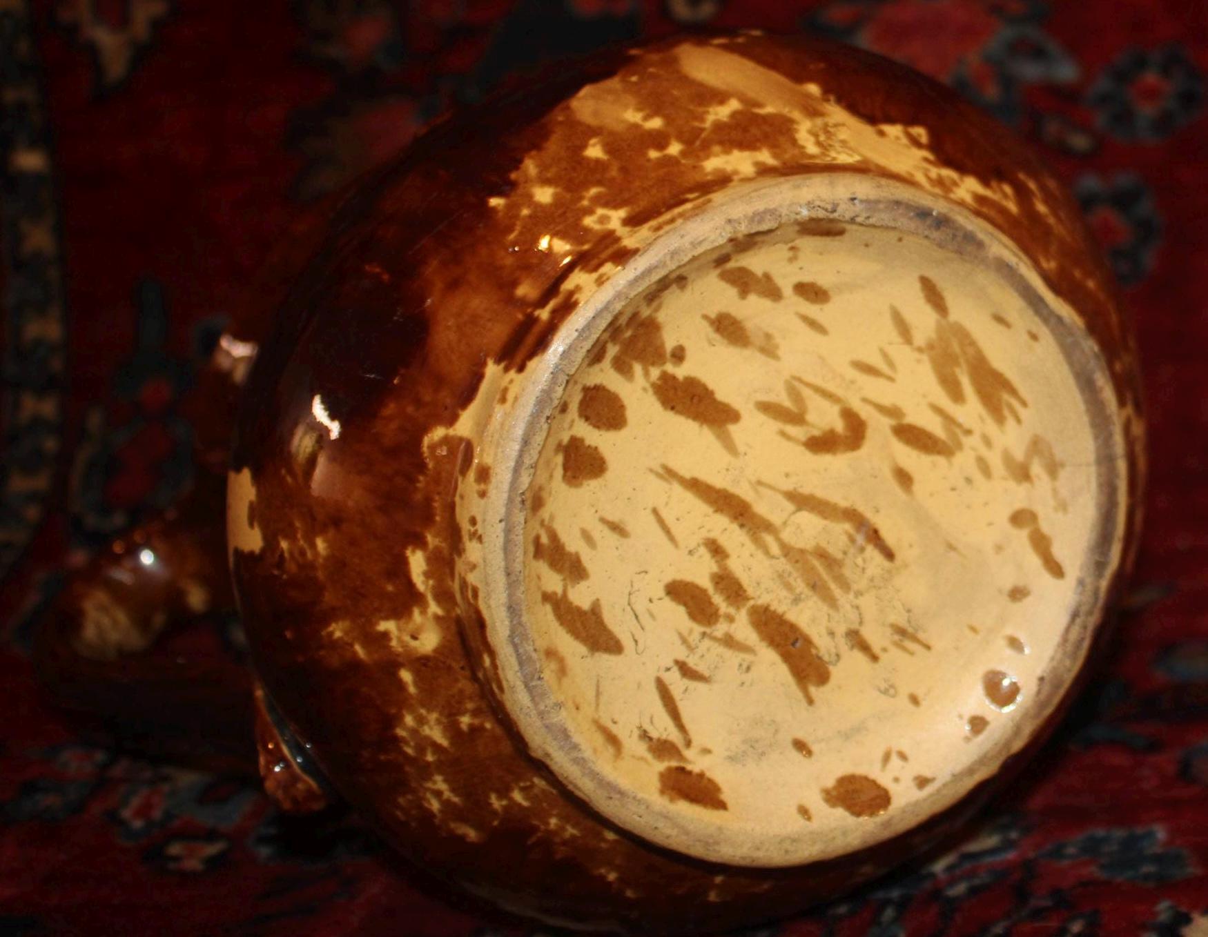 This Gorgeous 19th Century Rockingham Pitcher with an acorn branch is in such great condition for its age! A detailed oak tree branch with hanging acorns graces the front and back sides of the pitcher. It measures 9" tall x 9" from spout to handle and holds 6 cups. What is fabulous about this pitcher is that, when it was made, the glaze did not cover a portion of the pitcher (2.5" x 1")- a WONDERFUL imperfection in the making (please see our photos)! There are no chips, cracks, or hairlines. Please message us if you have any questions- Thanks for looking!