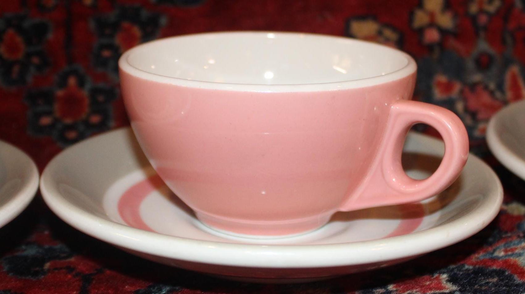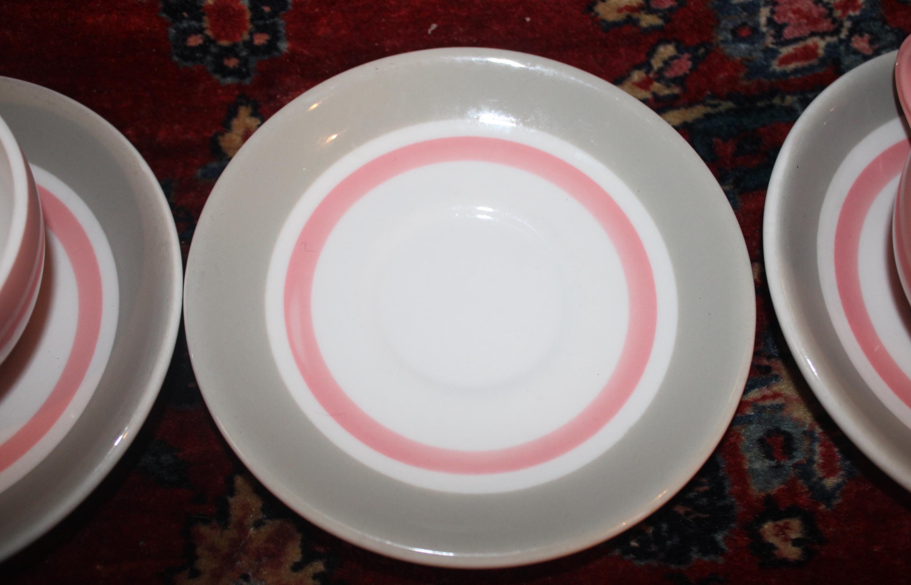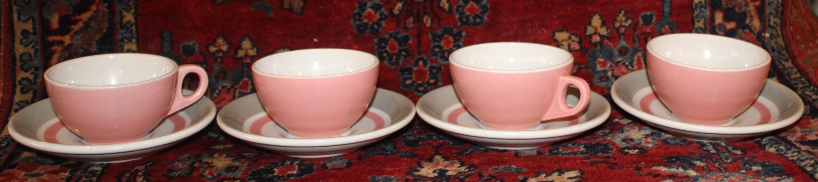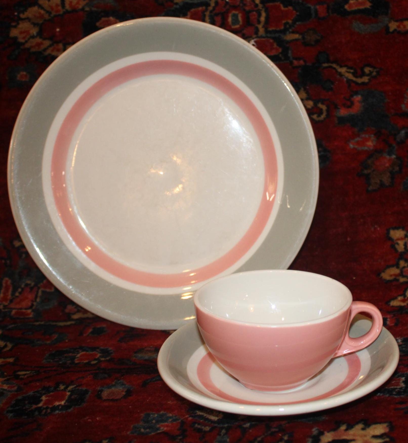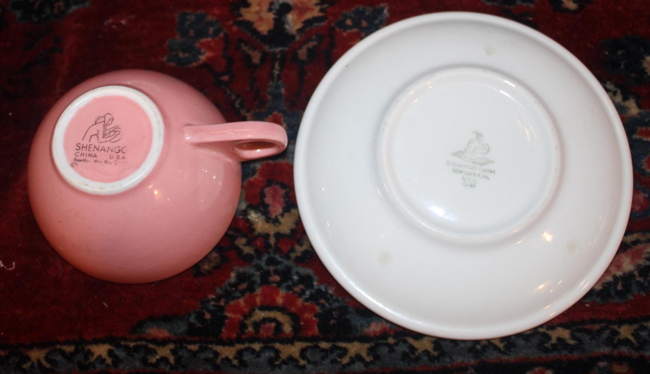 This Vintage Shenango Pink Gray and White Restaurant Ware from the 1950's is available to you! Perfect for your morning cup of Jo! The tea cup is 1.75" tall and the saucer is 6" in diameter; we have 13 cups and saucers available. We also have one 9" luncheon plate. They are in wonderful condition with no chips or cracks. Please use the drop down menu to make your selection. Thanks for looking!