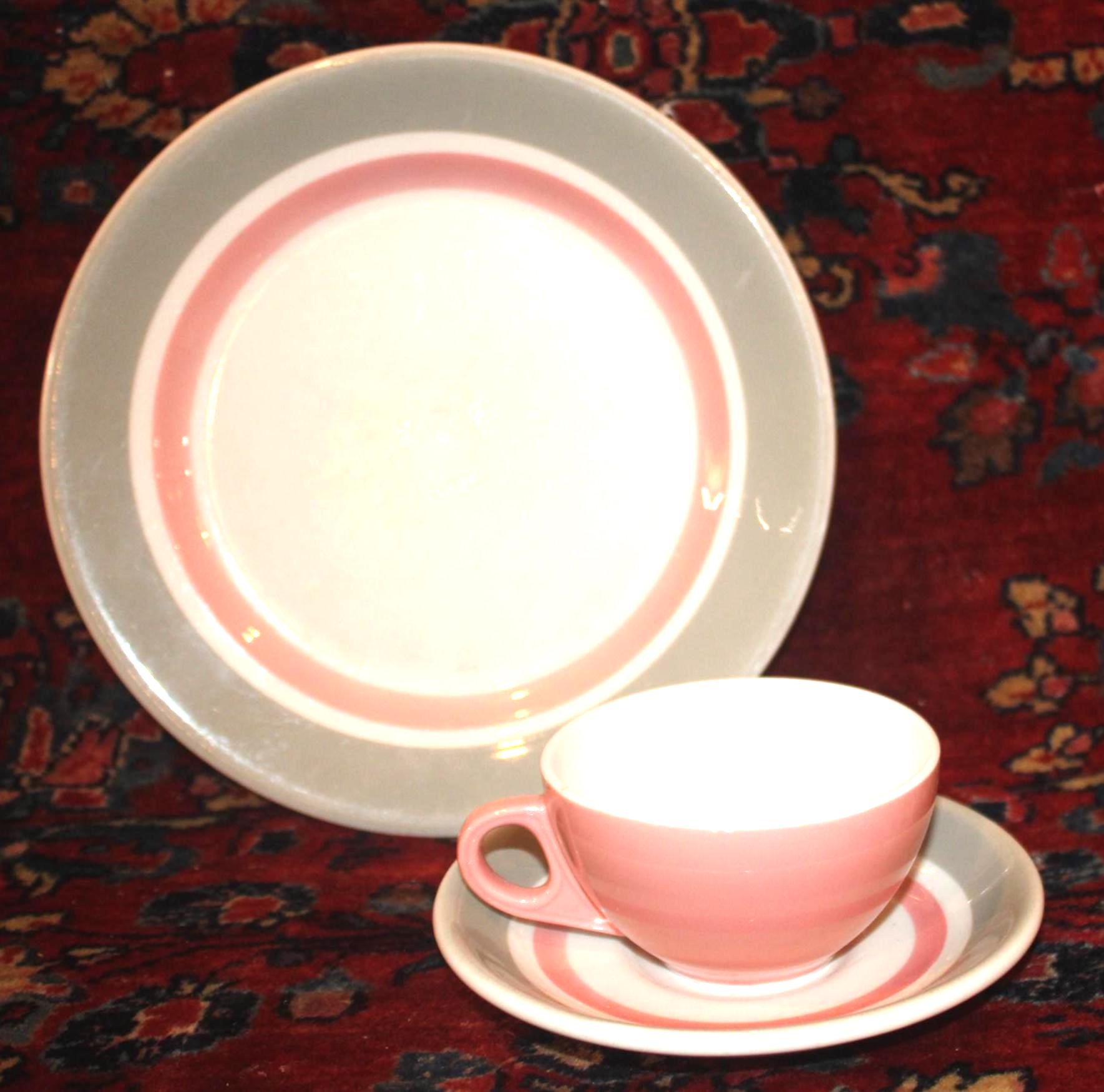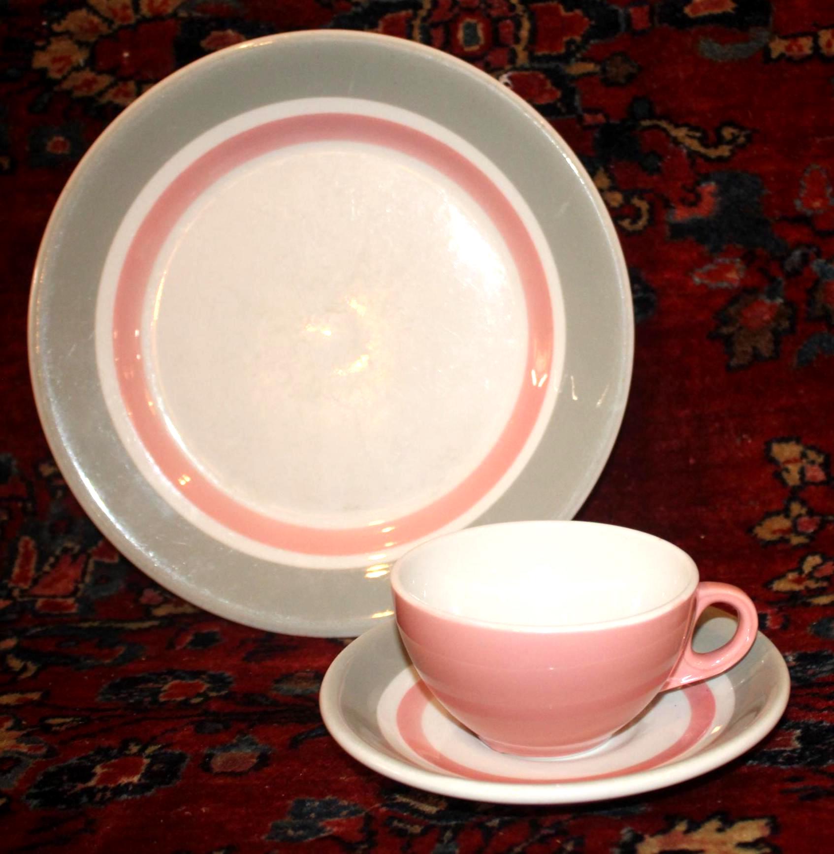 Midcentury Shenango Pink Gray and White Restaurant Ware China Cup and Saucer from the 1950's- Coffee/Tea