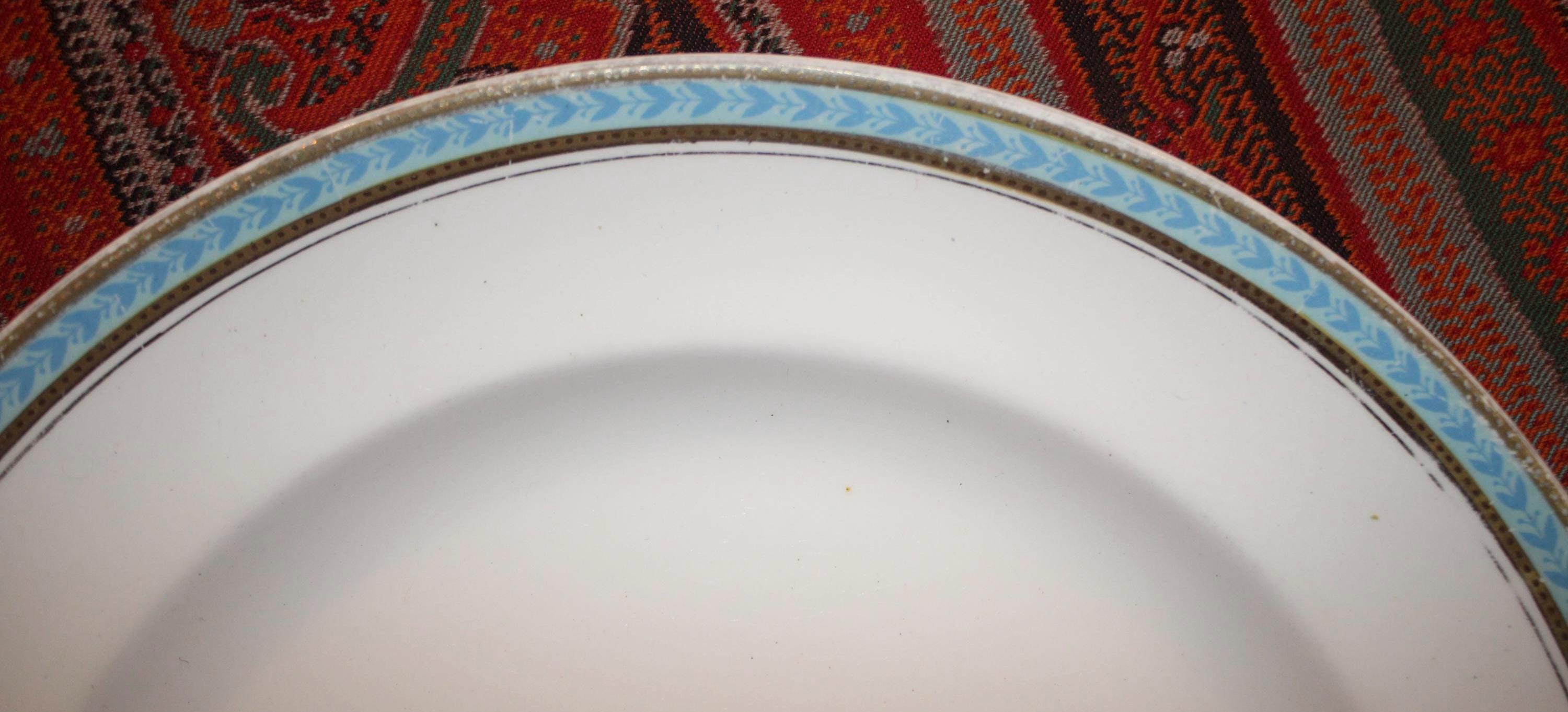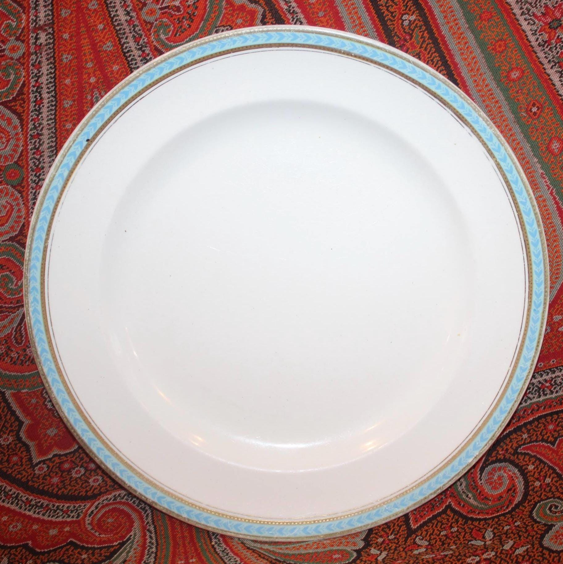 John Maddock and Sons Royal Vitreous China Turquoise and Gold Gilt Banded 9" Luncheon Plate