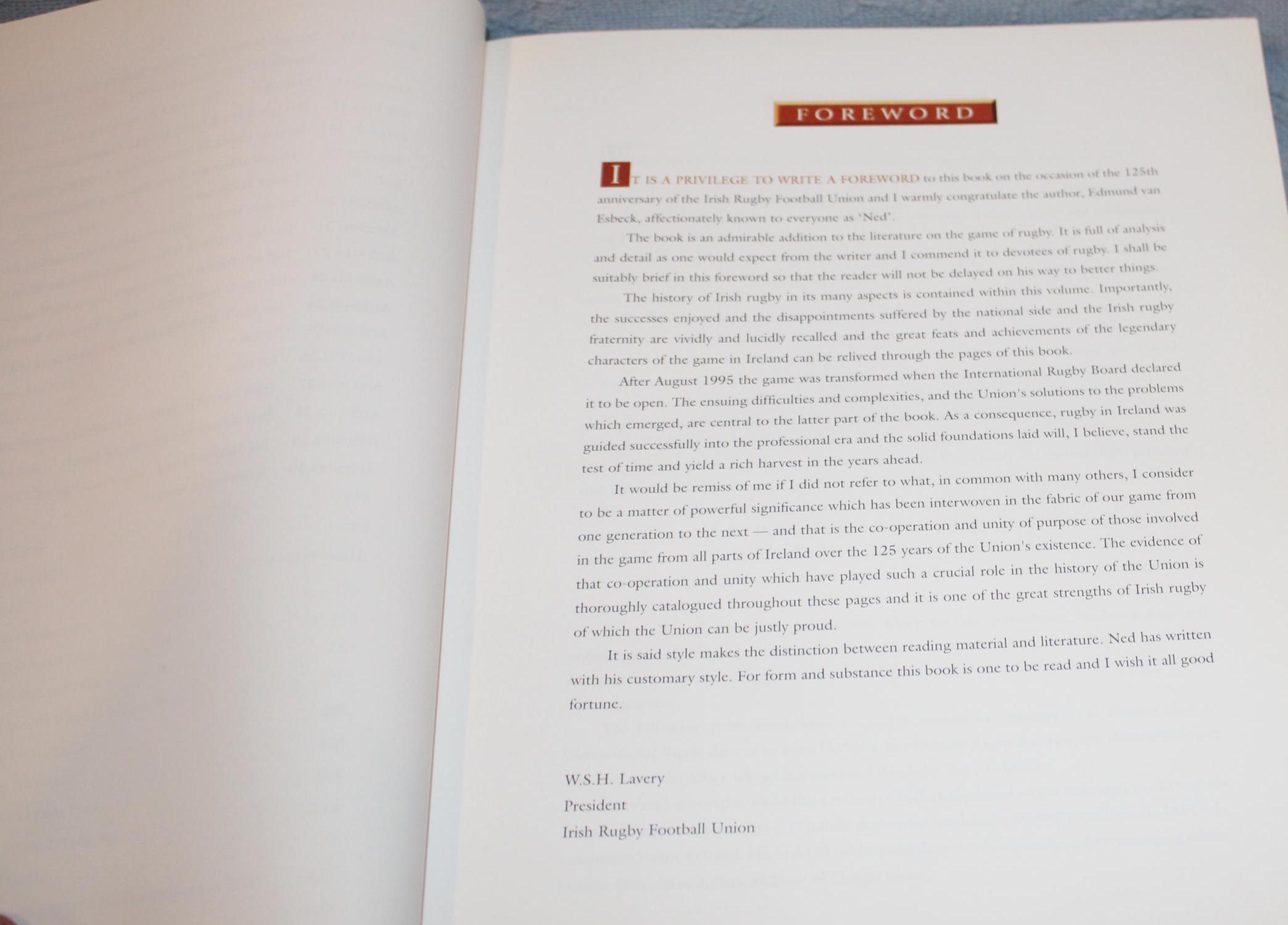 Irish Rugby 1874-1999 A History by Edmund Van Esbeck FIRST EDITION- Hardcover 1999