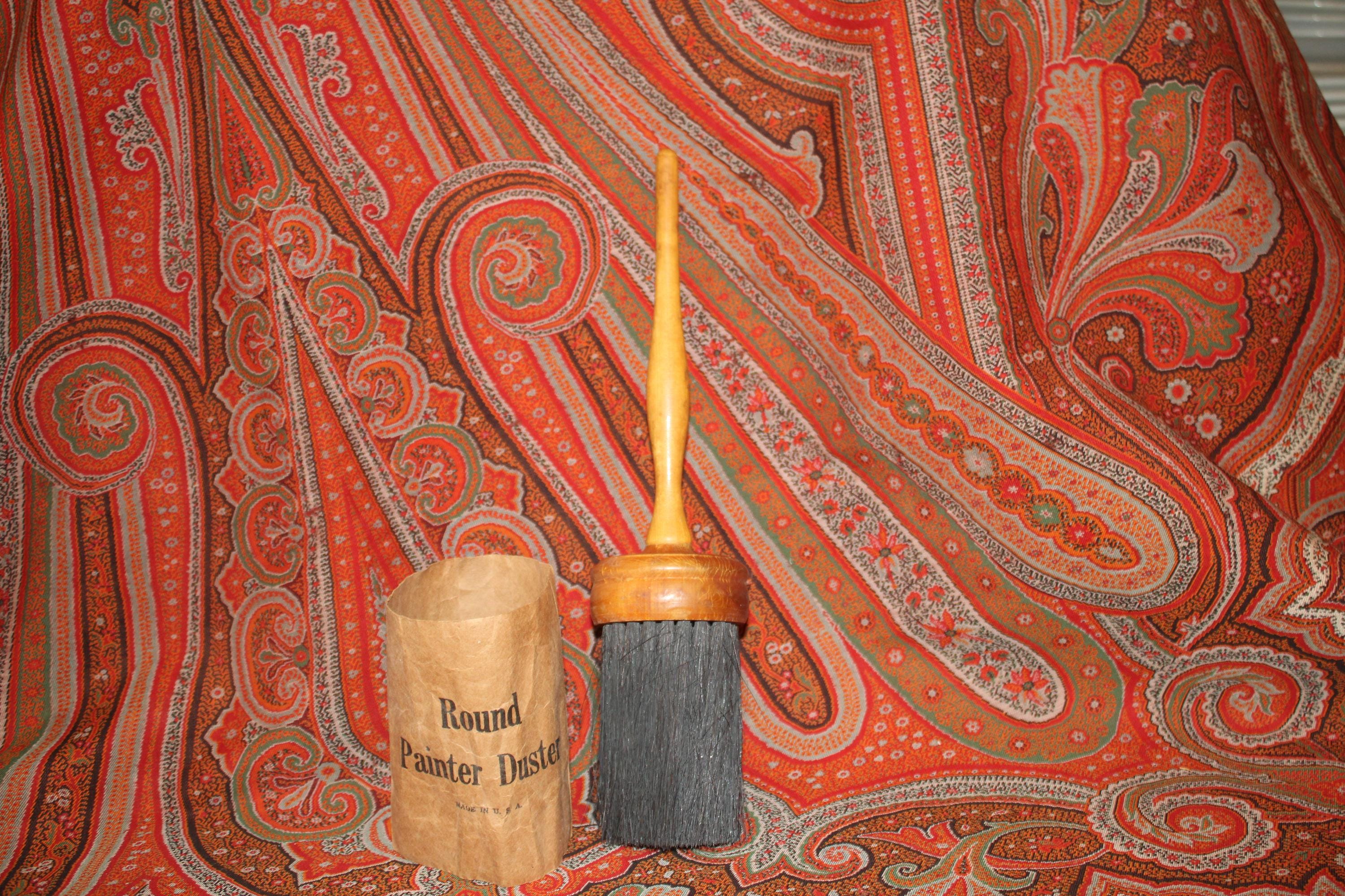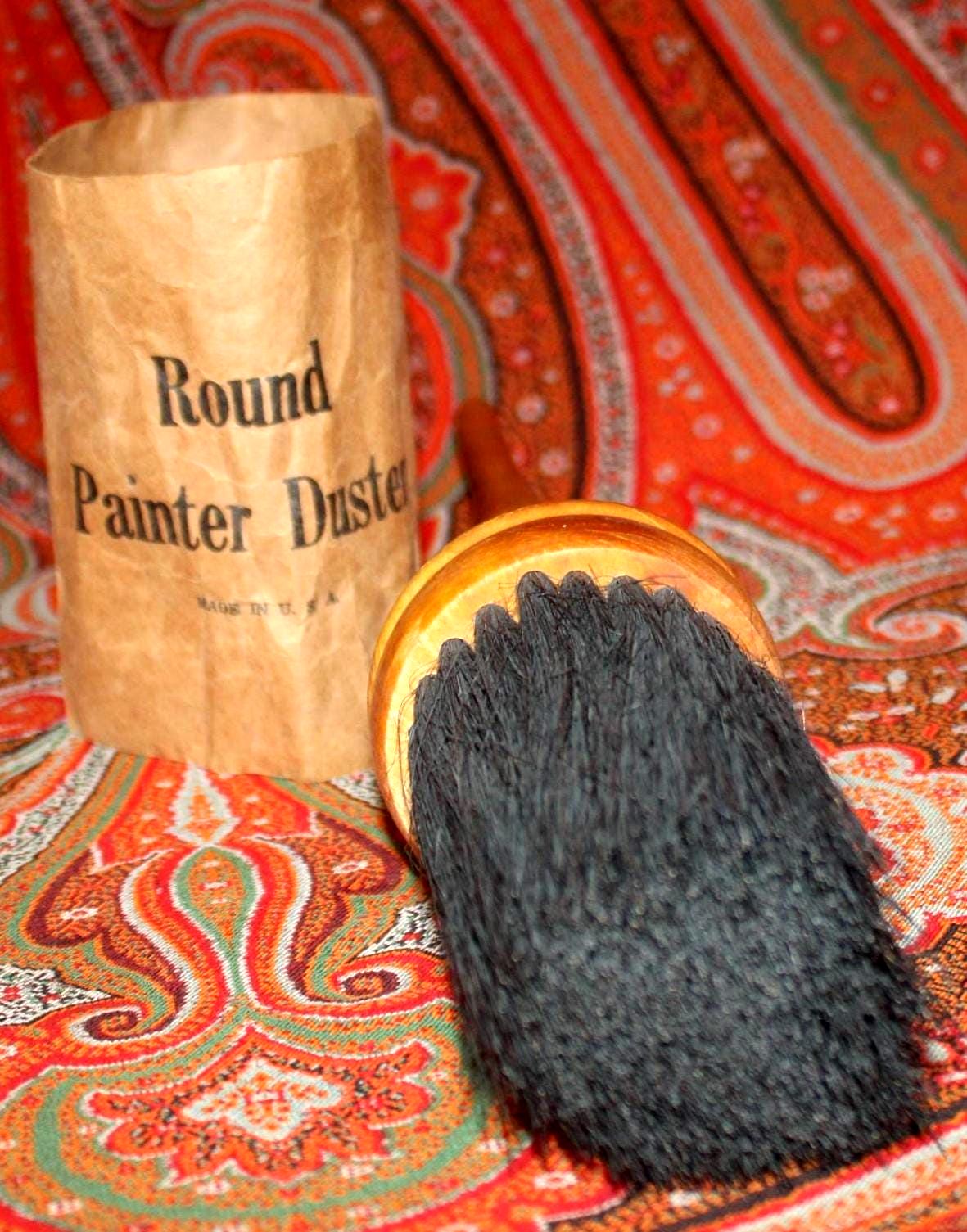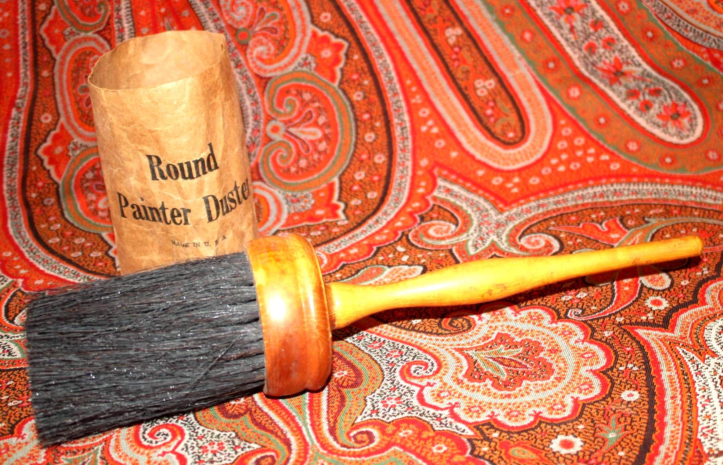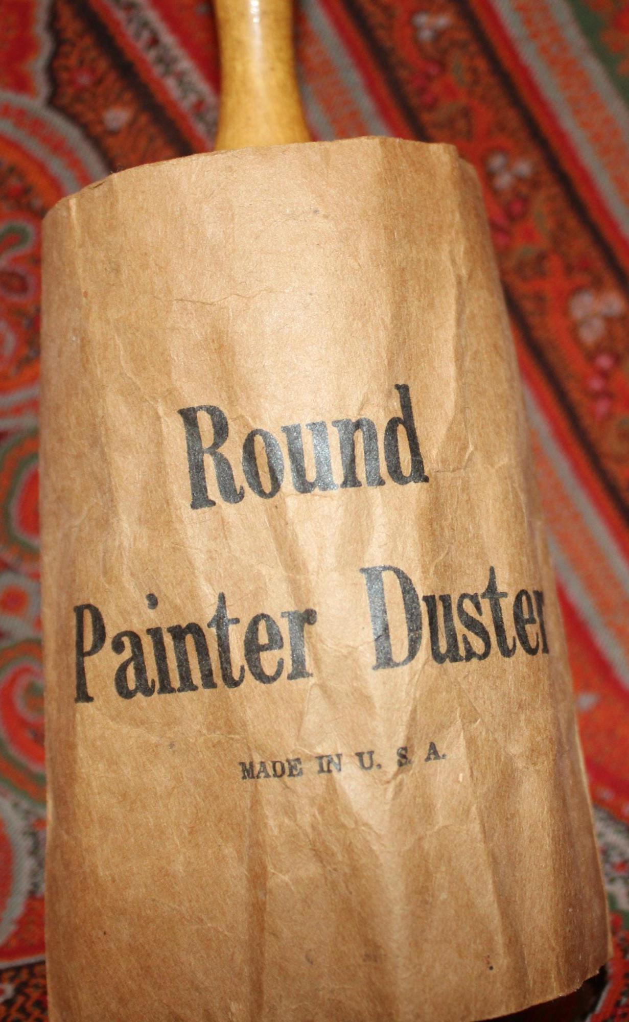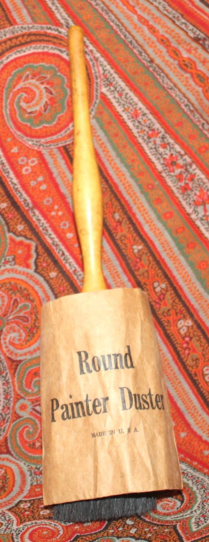 Wonderful Antique Shaker Wooden Round Painter Duster Horse Hair Brush in Original Paper