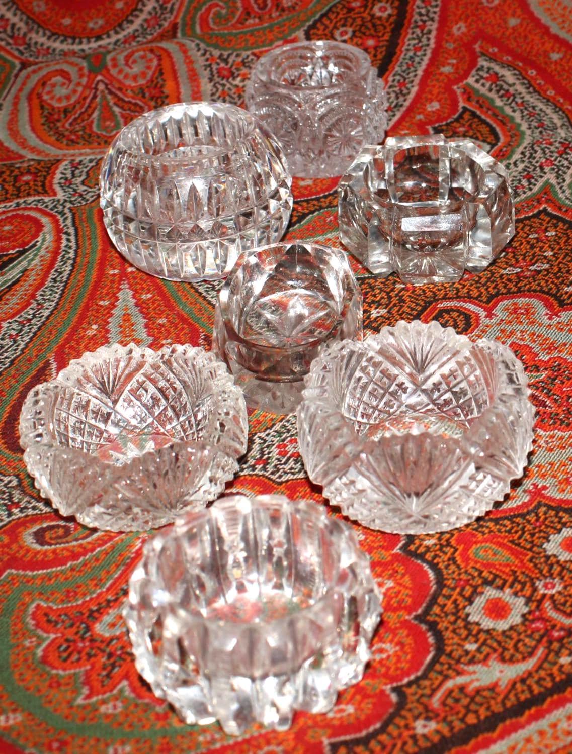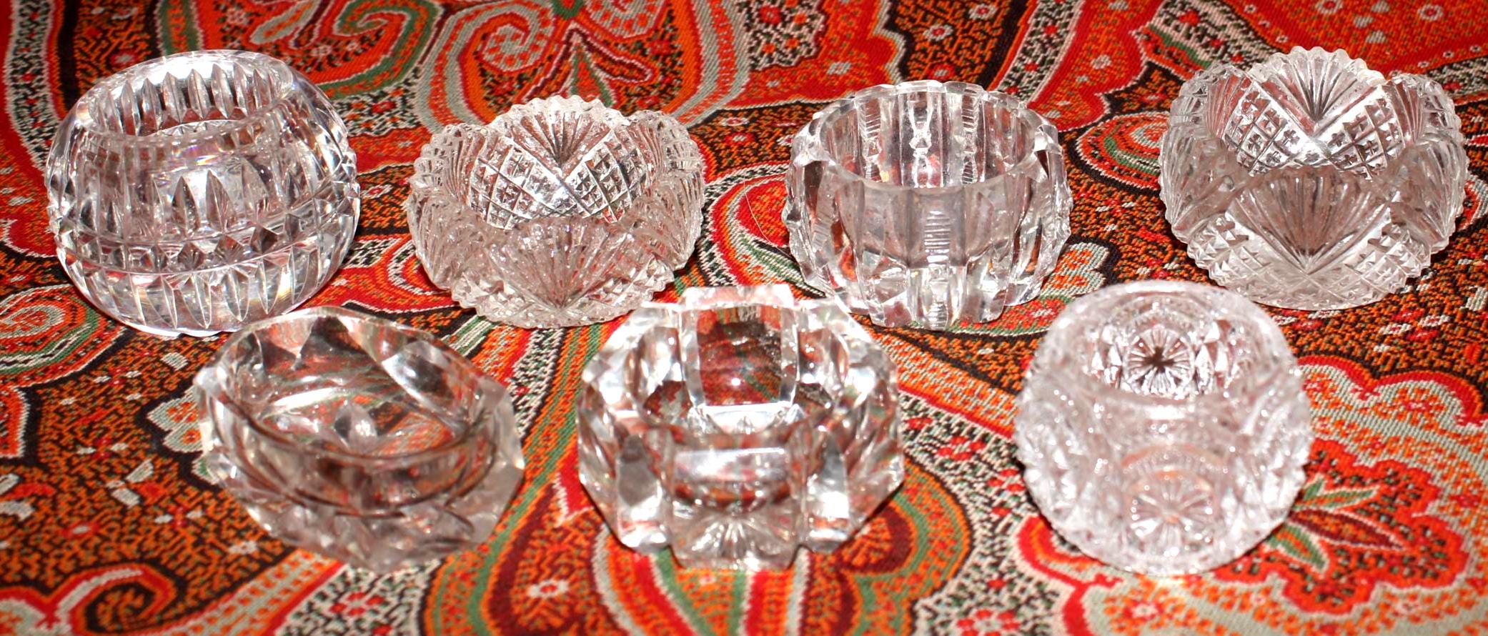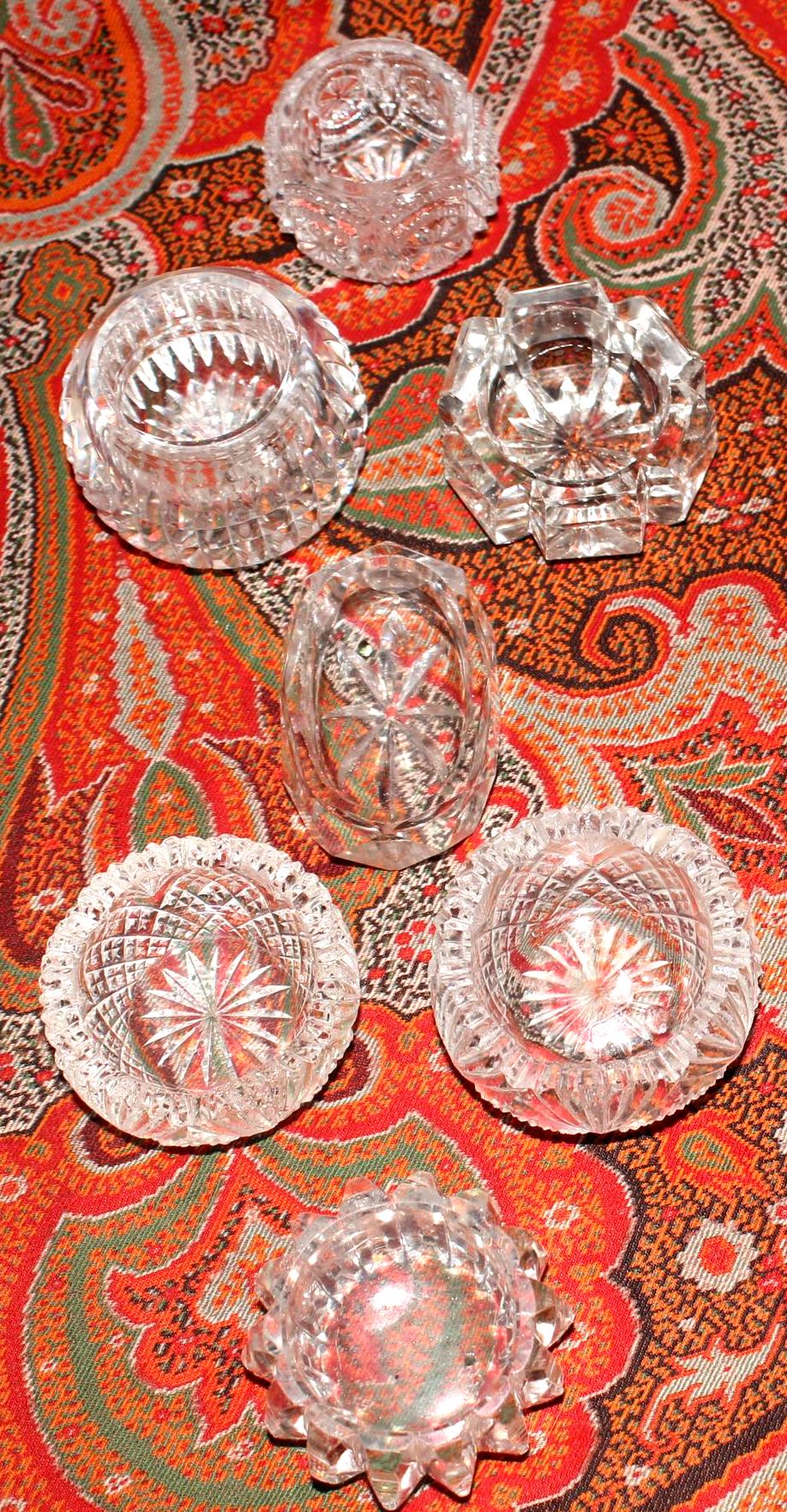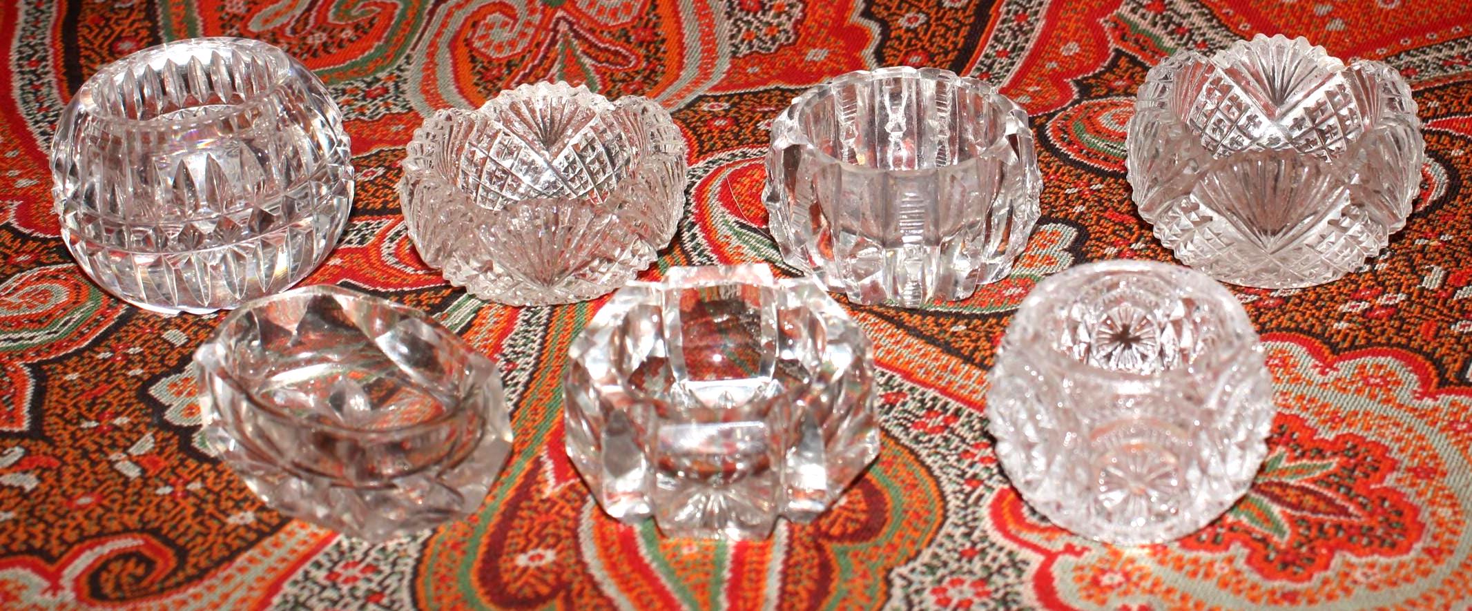 Stunning Set of 7 Mismatched Cut Crystal Salt/Caviar Cellars