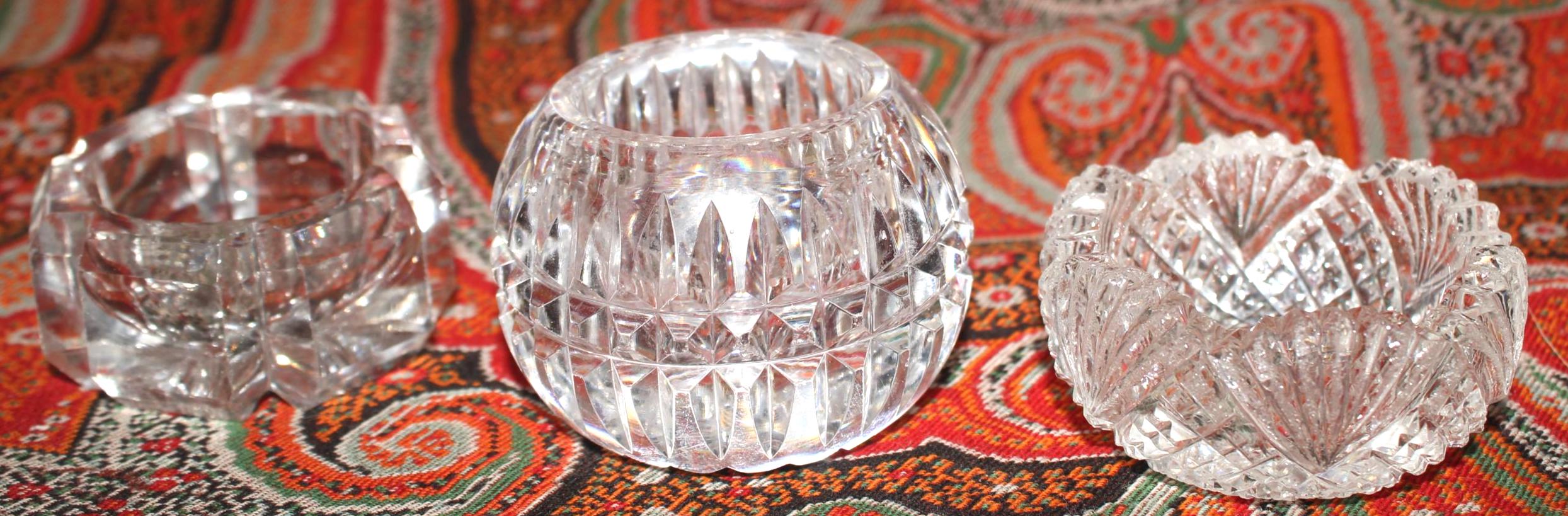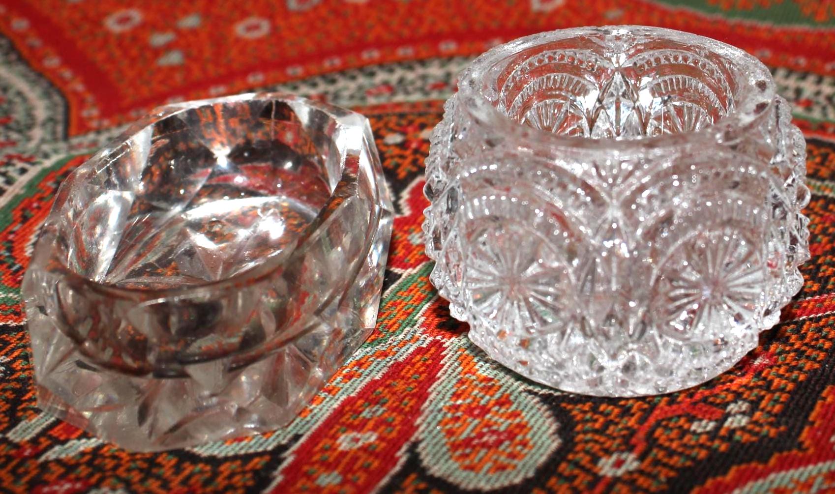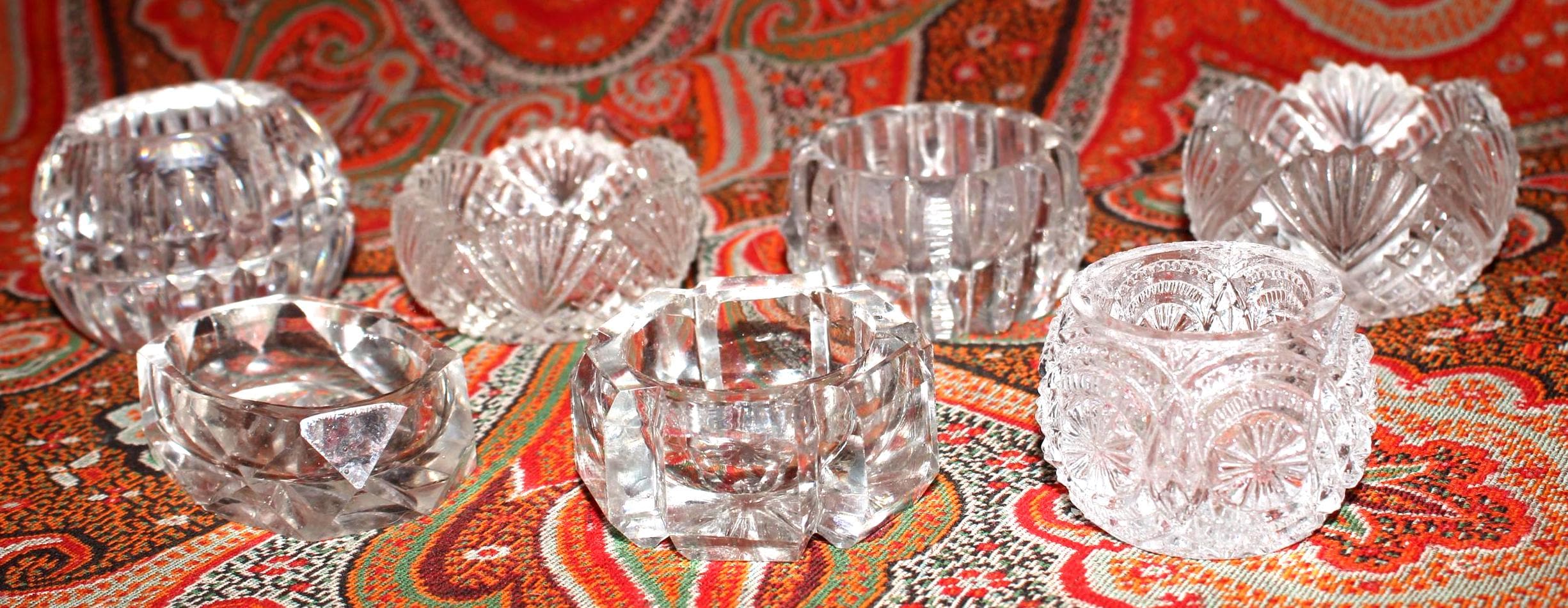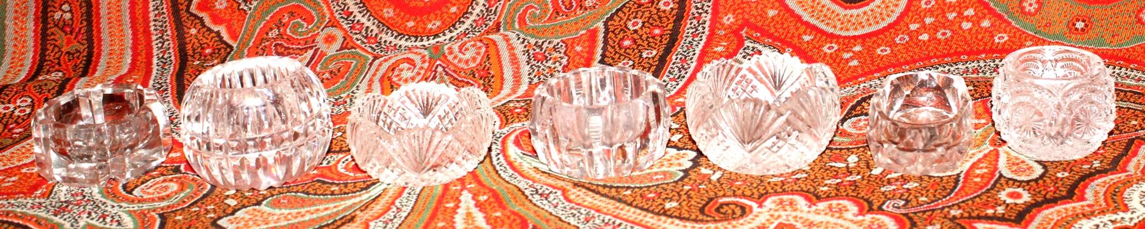 Stunning Set of 7 Mismatched Cut Crystal Salt/Caviar Cellars