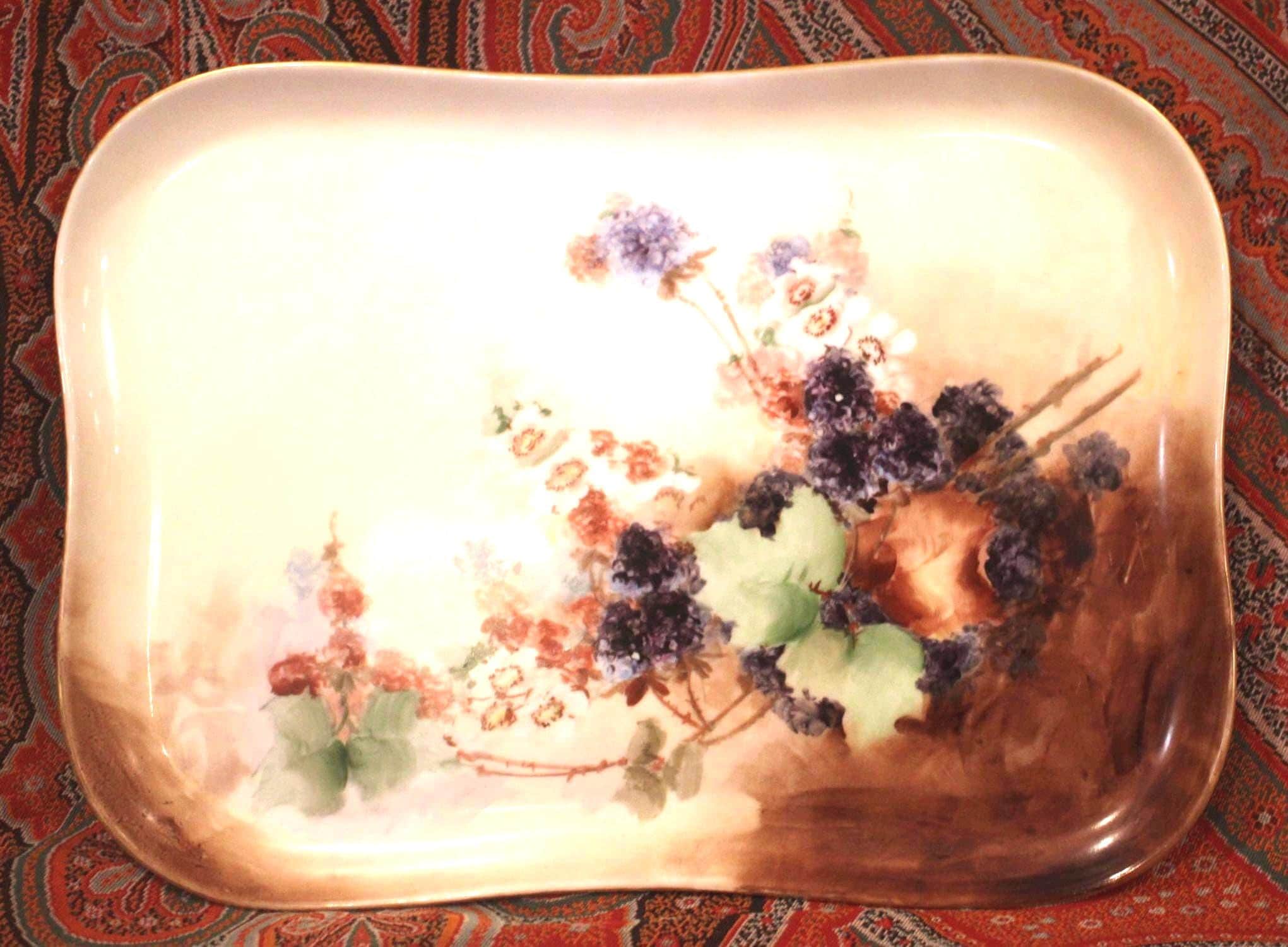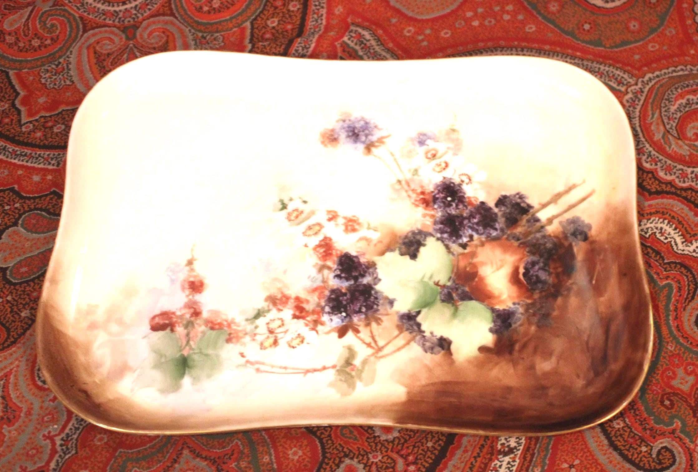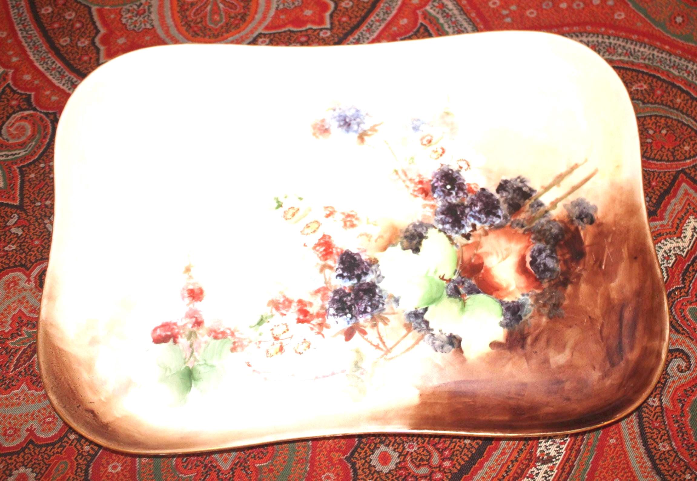 Gorgeous Vintage Limoges Handpainted Fruit, Grapevines, and Floral Tray- France/Farmhouse Decor