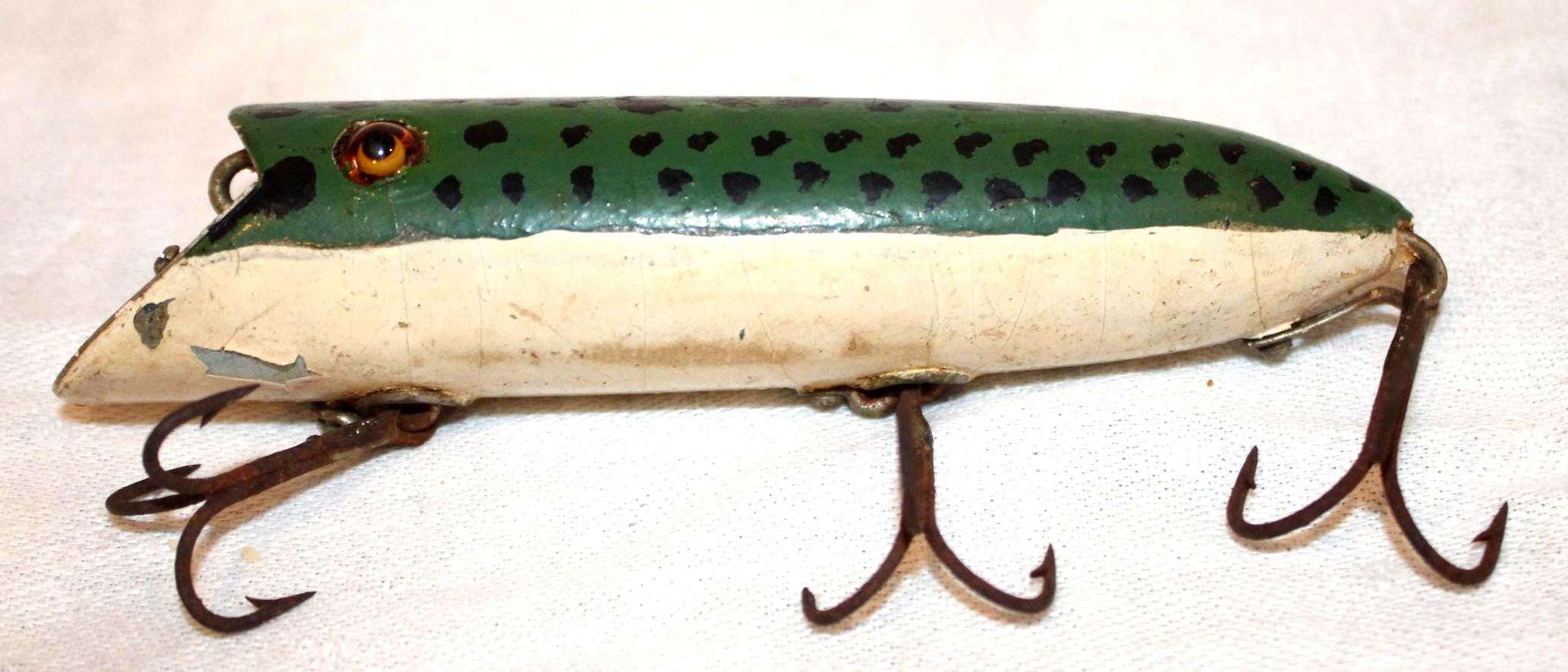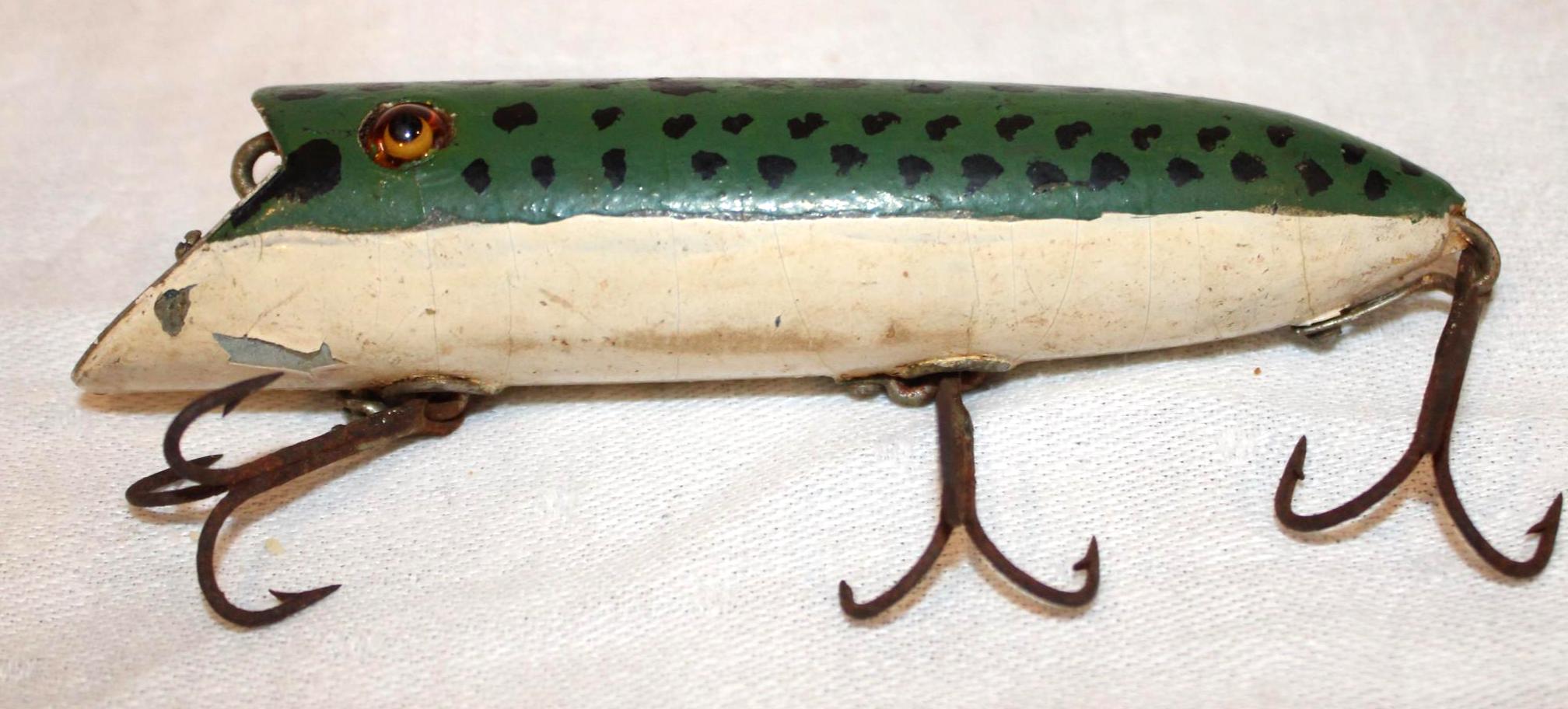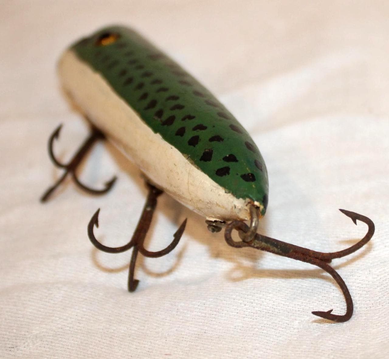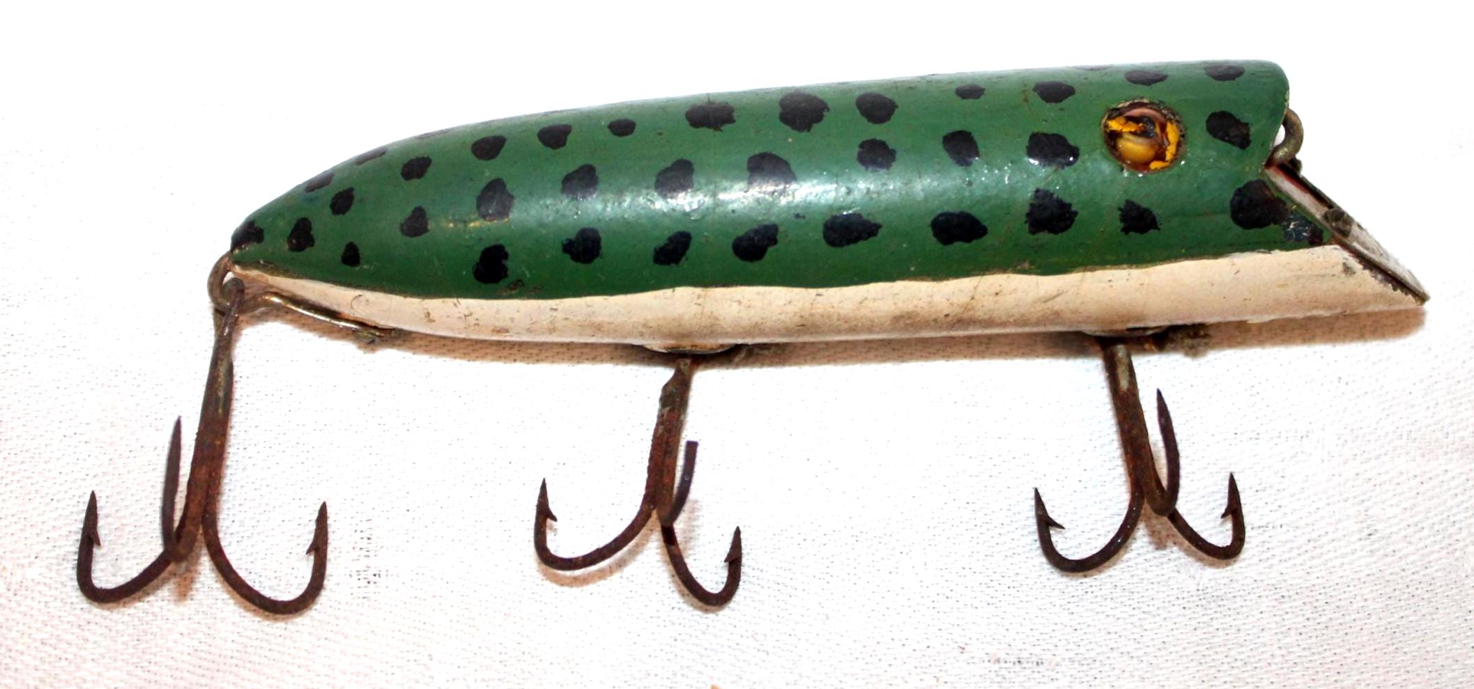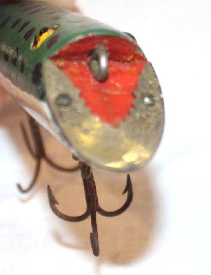 Very Cool Vintage 1920's Hand painted wooden Heddon Head-On Basser Fishing Lure with Glass Eyes- Fishing/Antique/Sporting/USA