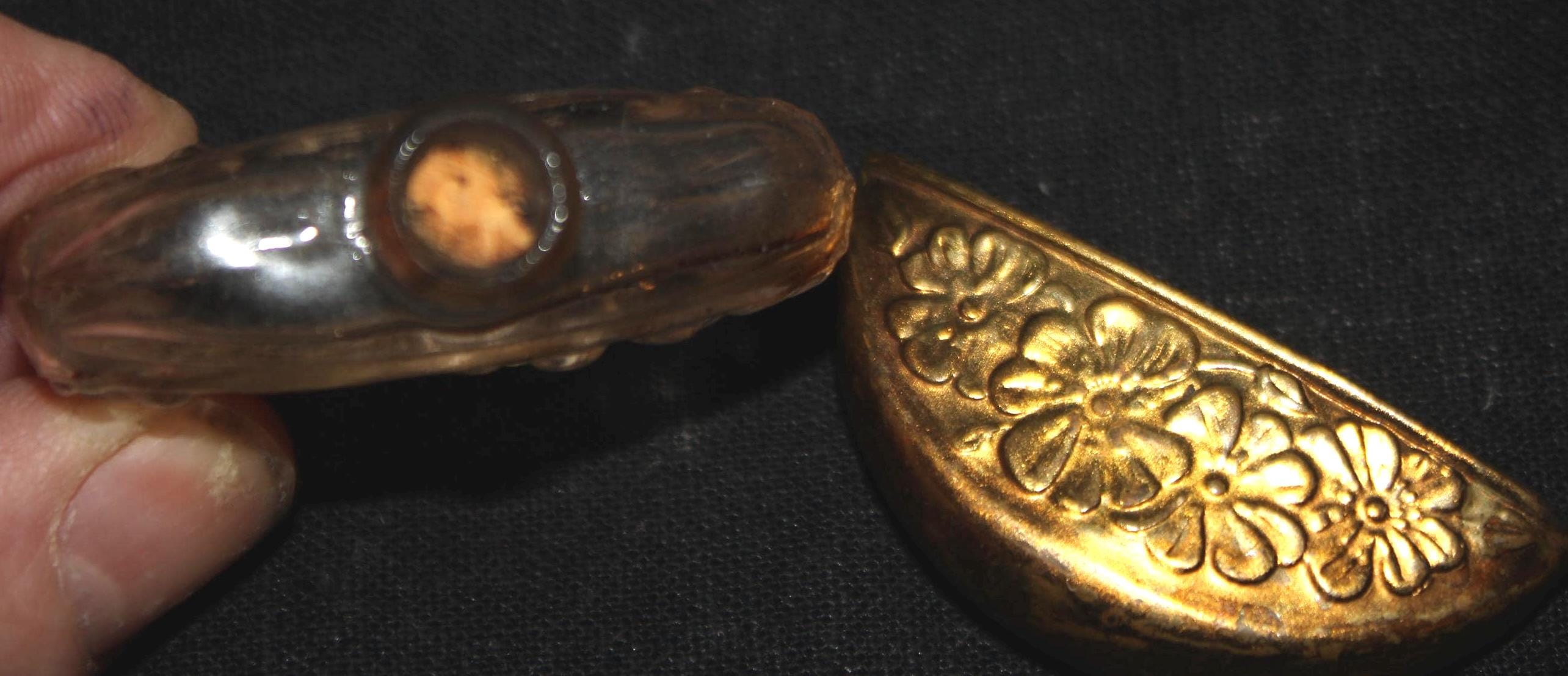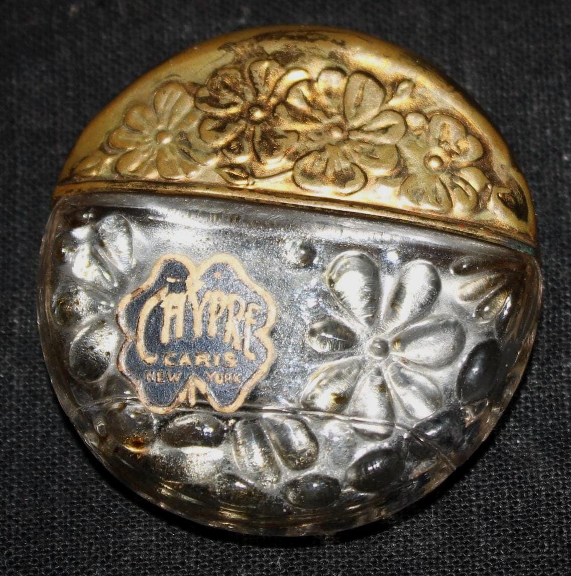 The iconic perfume Chypre was created by François Coty in 1917. While "Chypre" means Cyprus in French, the scent was inspired by Mediterranean ingredients, specifically blending bergamot, labdanum, and oakmoss to create a distinct, long-lasting aroma that defined a whole new fragrance family. Our bottle measures 1.75" in diameter x .5" wide- it is empty but has traces of the fabulous scent (the original cork is present- which we did not try to remove). There are no chips or cracks. Please message us if you have any questions- Thanks for looking!