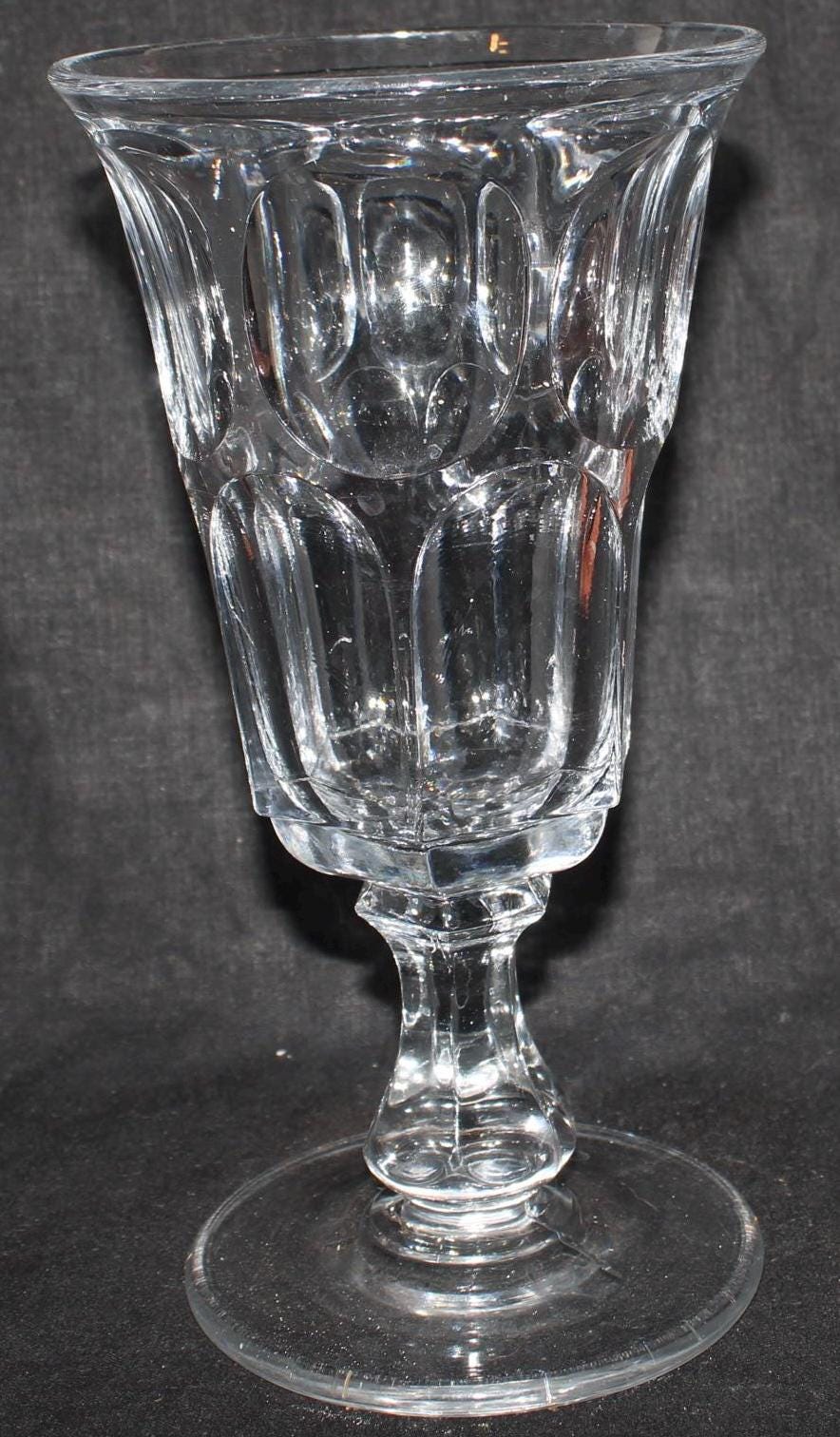 This 19th century American EAPG Flint Glass Crystal Celery Vase would be such a great addition to your collection! It measures 9" tall x 4.75” in diameter and is very clear with nice signs of age (wear marks to the foot). There are no chips or cracks: Please message us if you have any questions- thanks for looking!