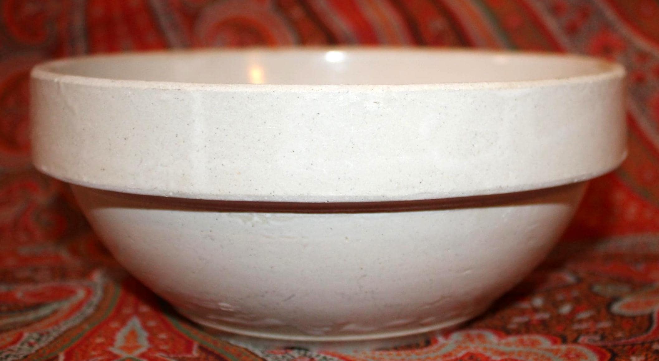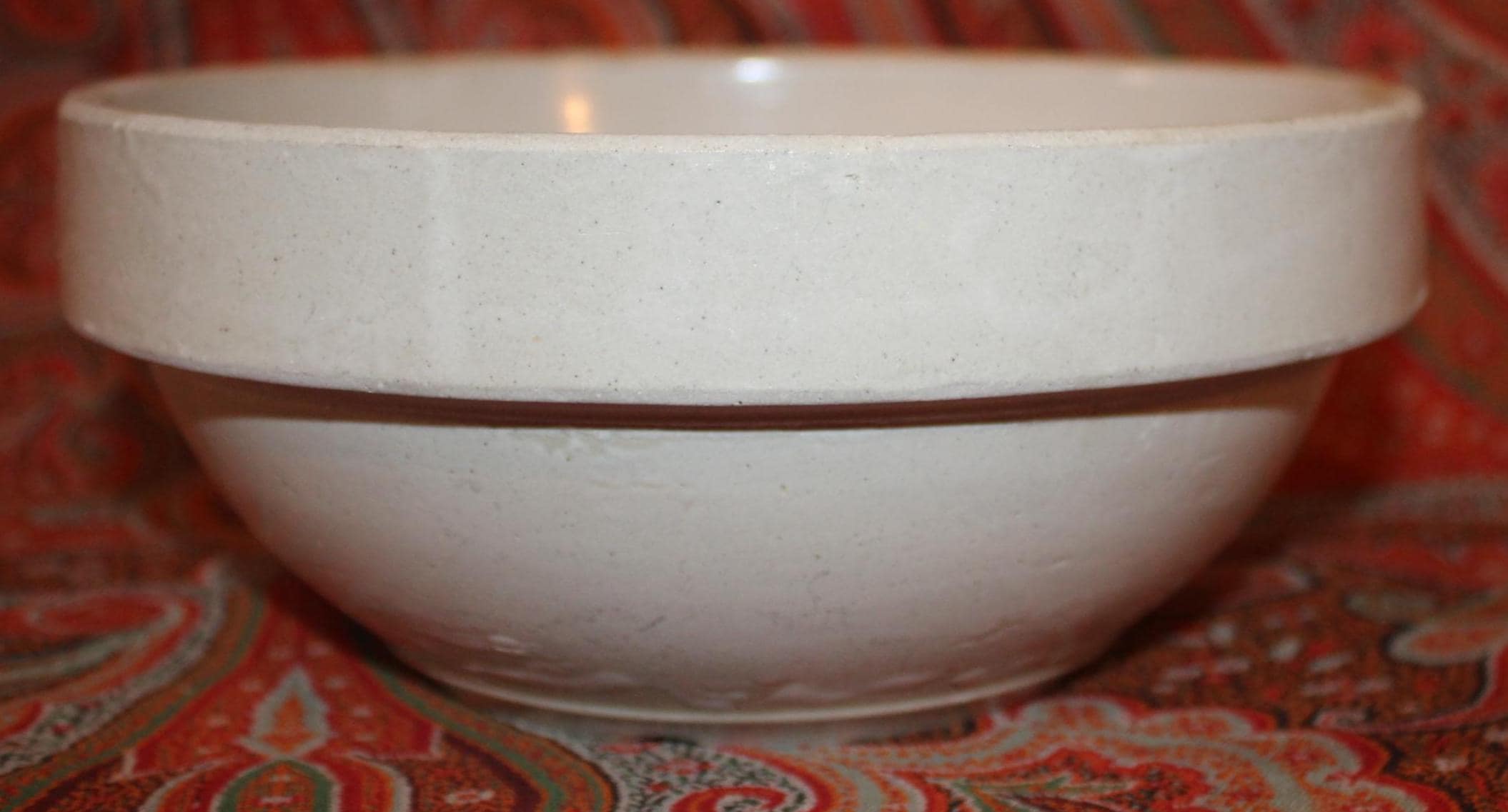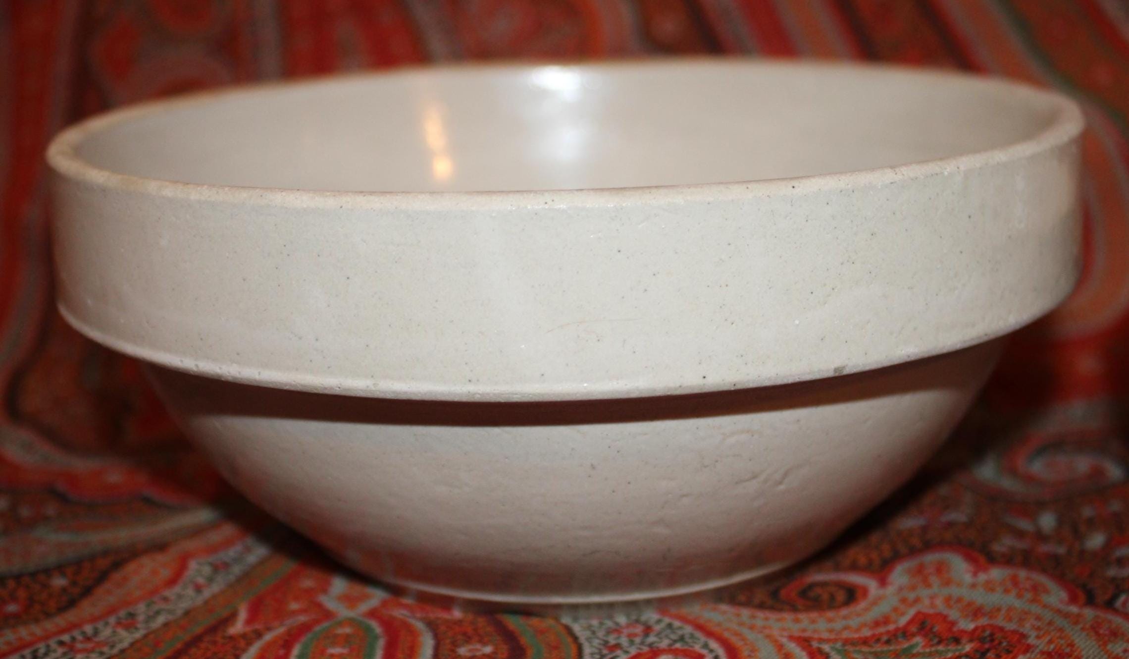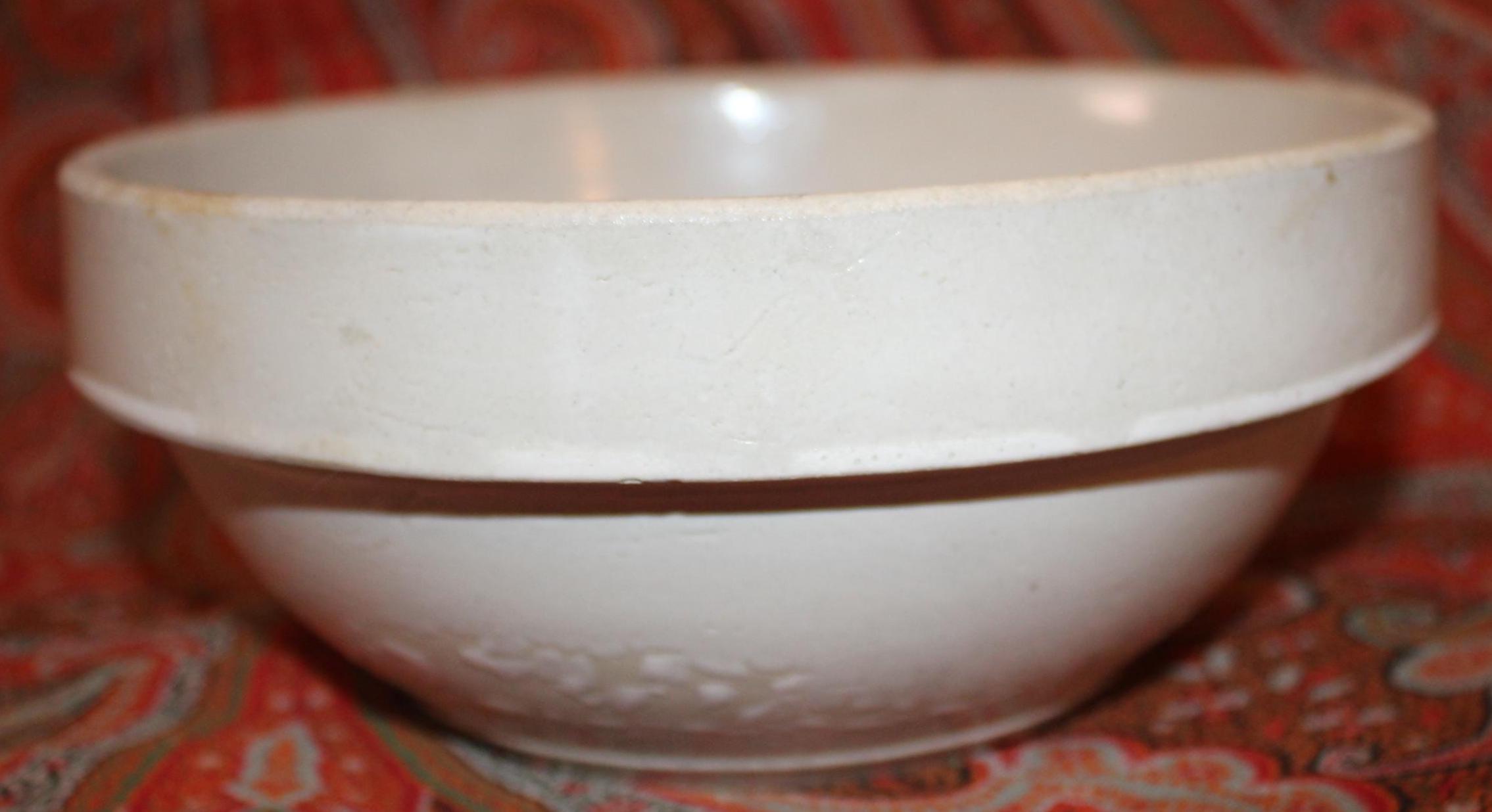 These bowls display so nicely together- we decided to sell them as a set! The larger stoneware crock mixing bowl measures 7.25" in diameter x 3" tall and holds 4 cups. The spongeware mixing bowl with gorgeous cobalt blue spatterware measures 5.25" in diameter x 2.75" tall and holds 1 cup. Both bowls are in great condition with no chips or cracks. These bowls would look great in a cottage or farmhouse kitchen- They also would look phenomenal in an industrial home! Please message us if you have any questions- Thanks for looking!